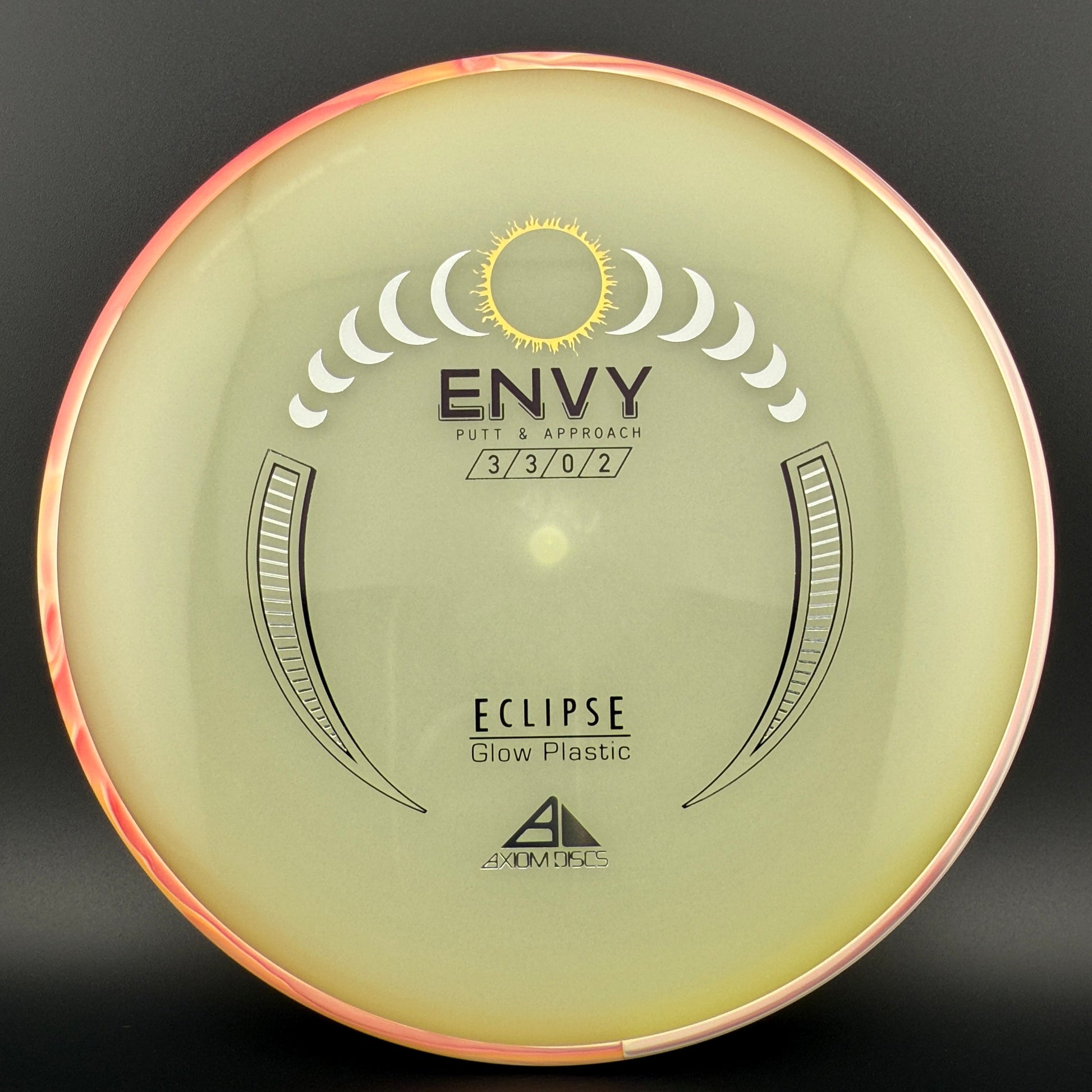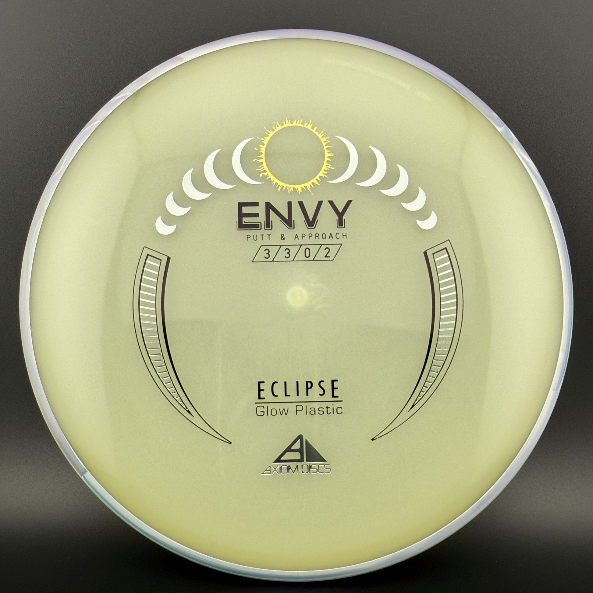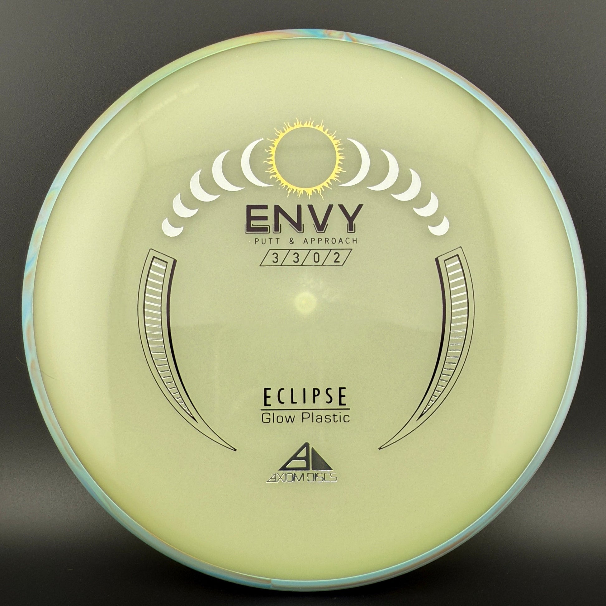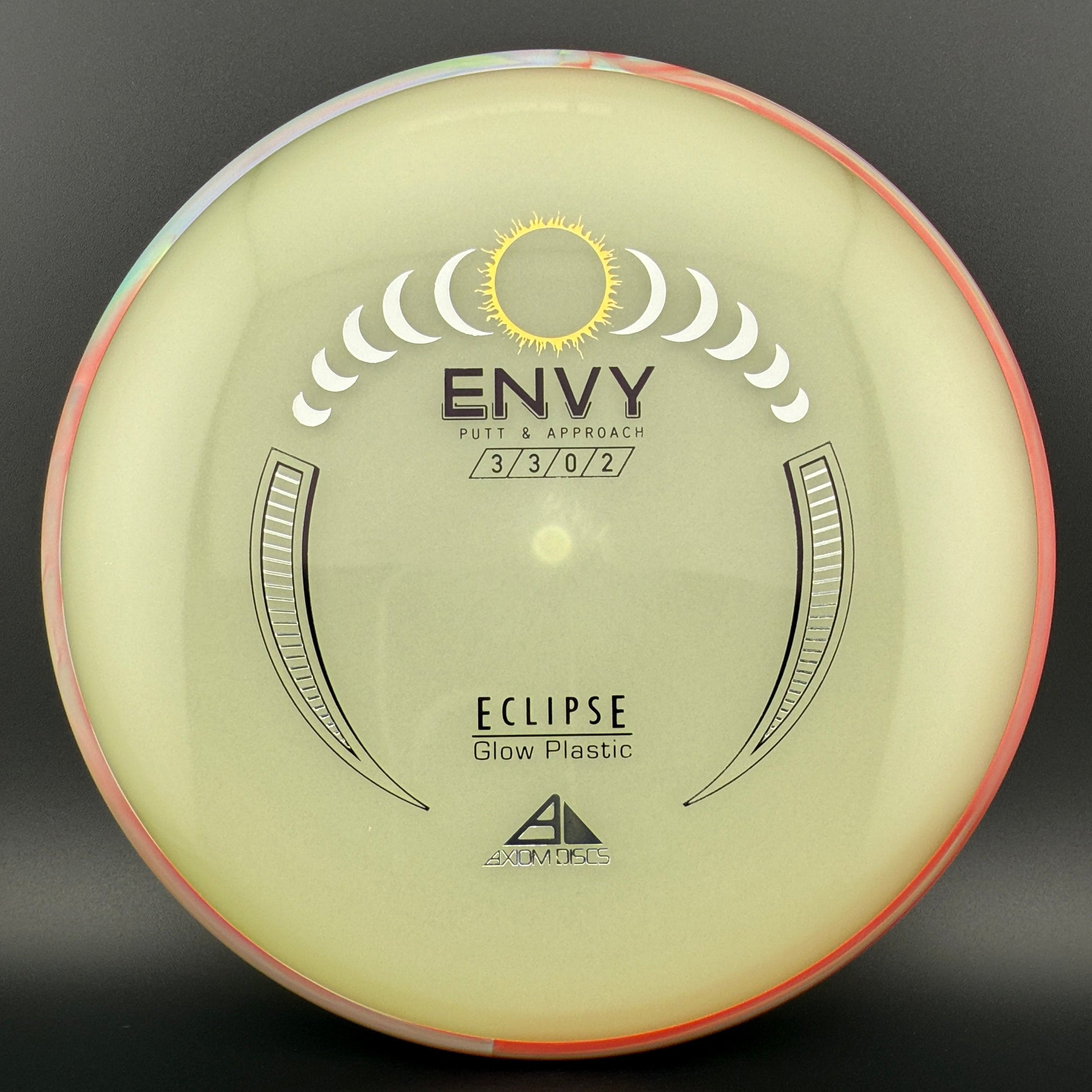 Eclipse plastic is Axiom’s premium glow-in-the-dark blend, renowned for its bright, long-lasting luminescence and exceptional durability. It maintains the grip and feel of traditional premium plastics while offering unmatched visibility for night rounds or low-light conditions. Its overstable flight characteristics make it reliable in various weather situations, especially when paired with molds like the Envy or Reactor. Eclipse plastic isn't just a novelty — it’s a high-performance option that brings utility and fun to your glow rounds.