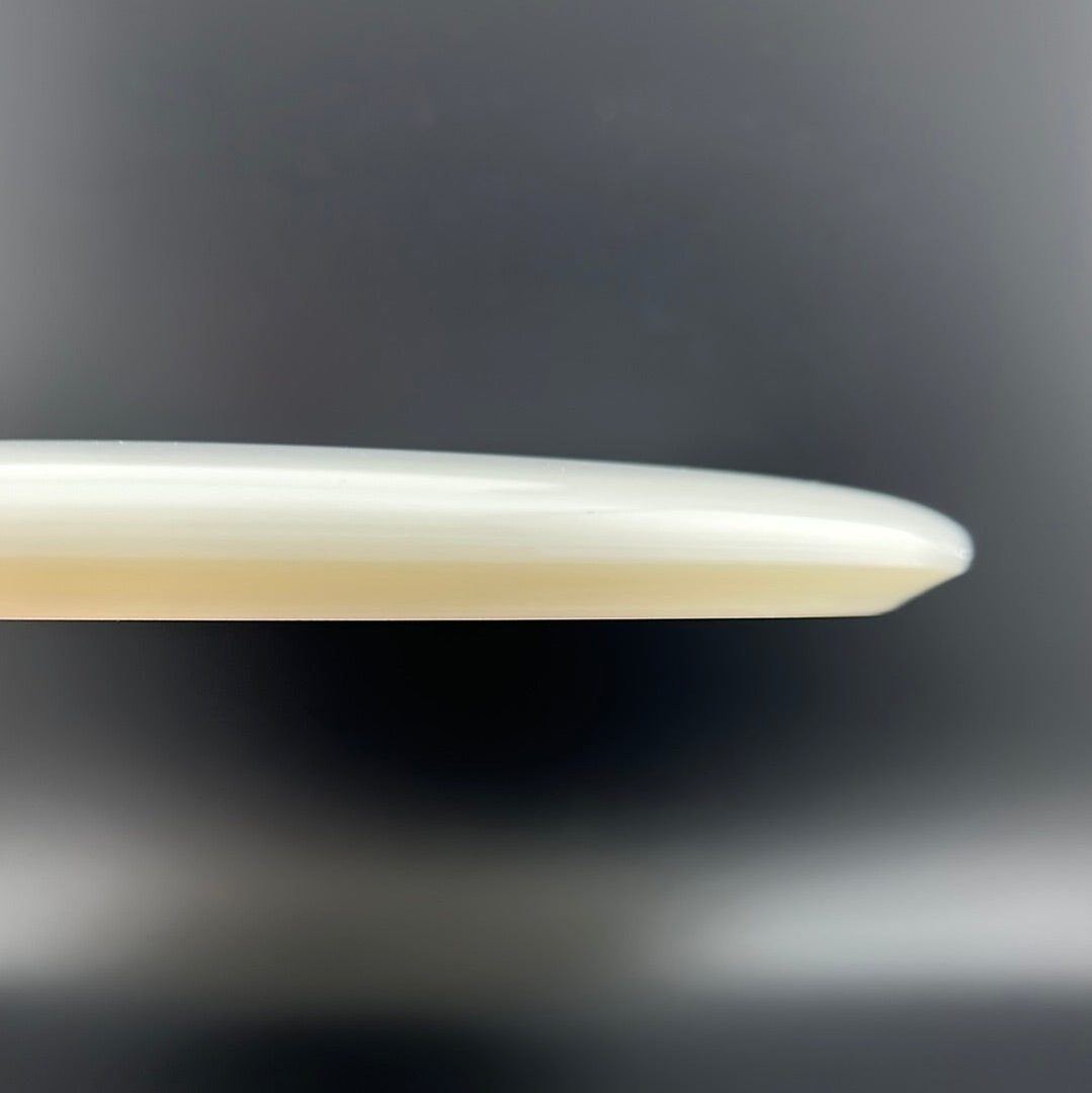 Discmania Evolution Neo plastic is manufactured by Latitude 64. It is a mix of opto and gold line plastic, resulting in a creamy, not quite opaque plastic blend. It feels great in the hand, like all Latitude plastics do!