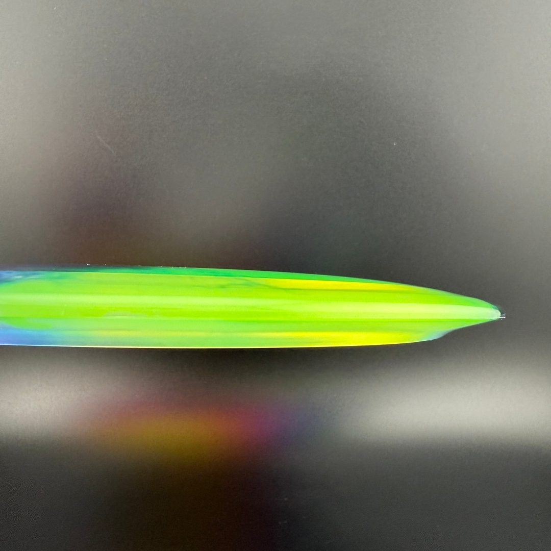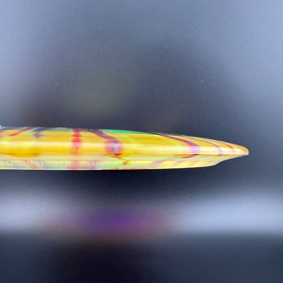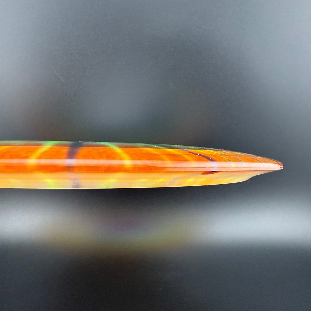 The Fly Dye Z Vulture is a less stable version of the Predator but generally has more glide. The Vulture is a fairway driver that is great for straight to stable throws.