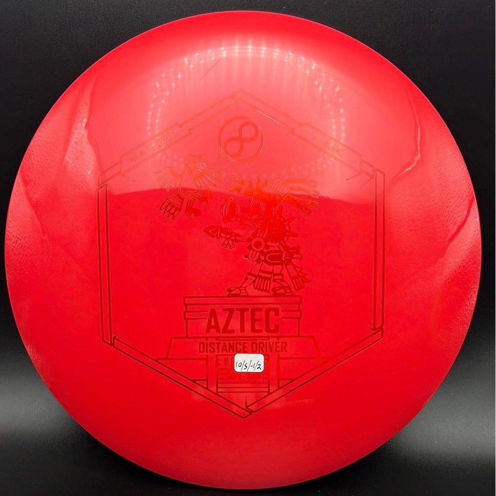 The Aztec is a speed 10 driver, flying straight with a little bit of fade at the end. Don't let the speed 10 fool you, the Aztec will bring unexpected distance and accuracy to your game. This disc has a skinnier rim than the big distance drivers, making it more comfortable for most disc golfers. The Aztec is said to be a longer Exodus or Sphinx.