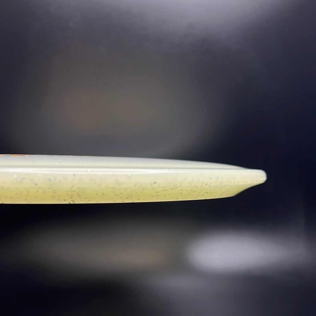 The Metal Flake Glow C-Blend plastic is a mixture of Glow C-Blend (with or without color) and metal flakes. It has been said that the Metal Flake Glow C-blend plastic contributes to a more stable flight.