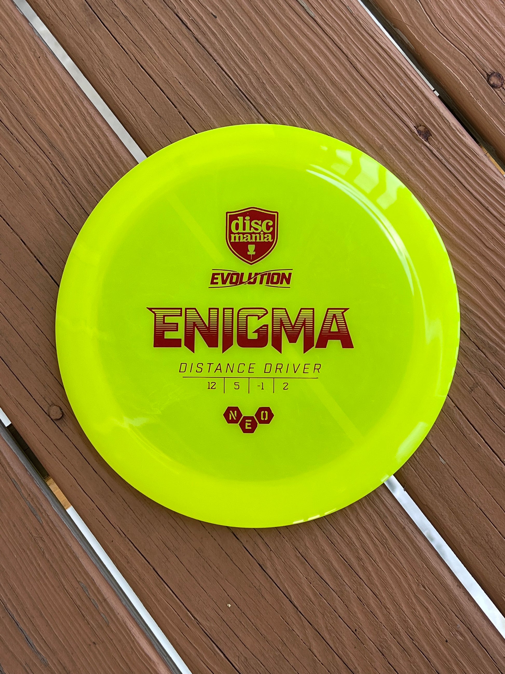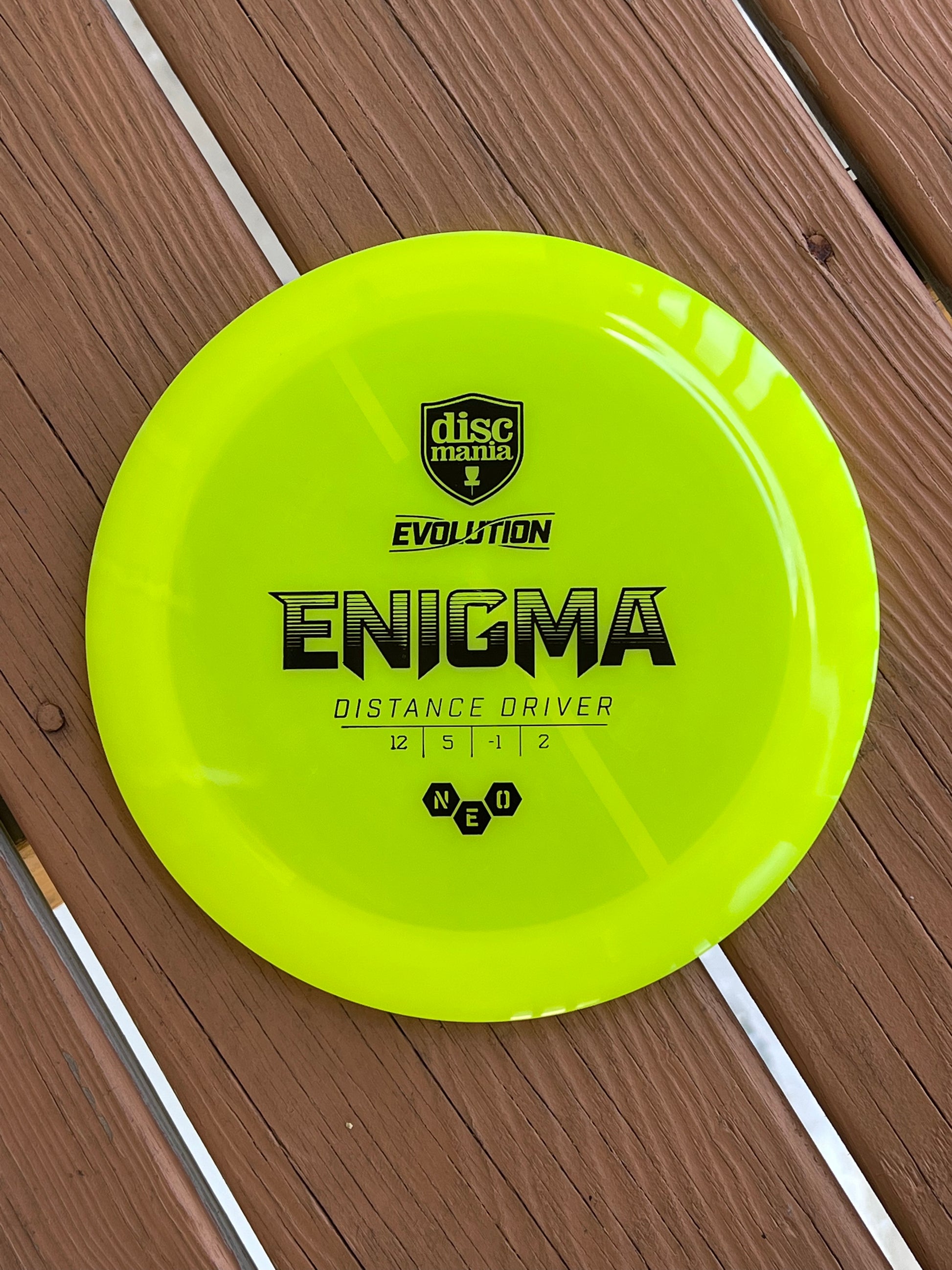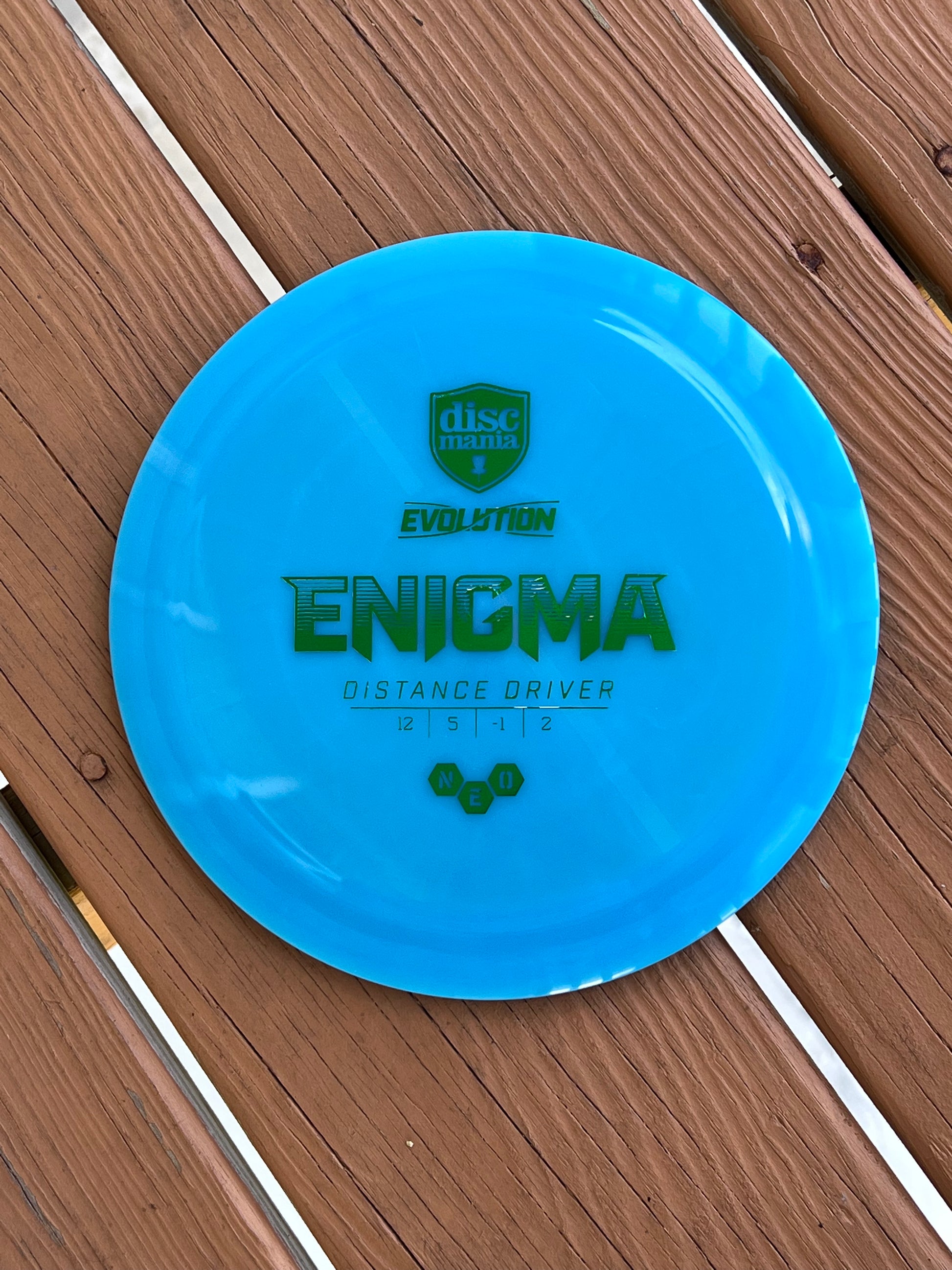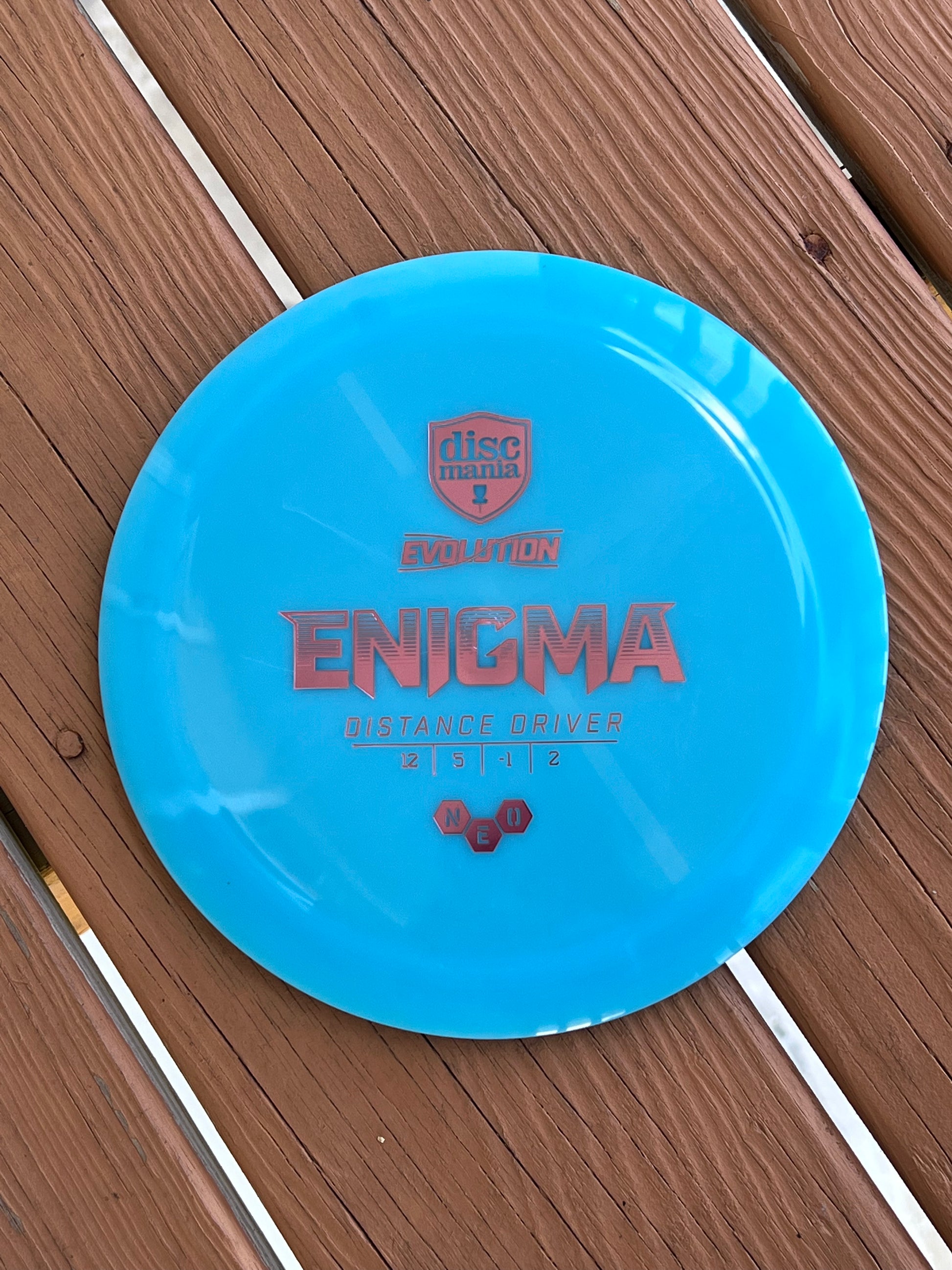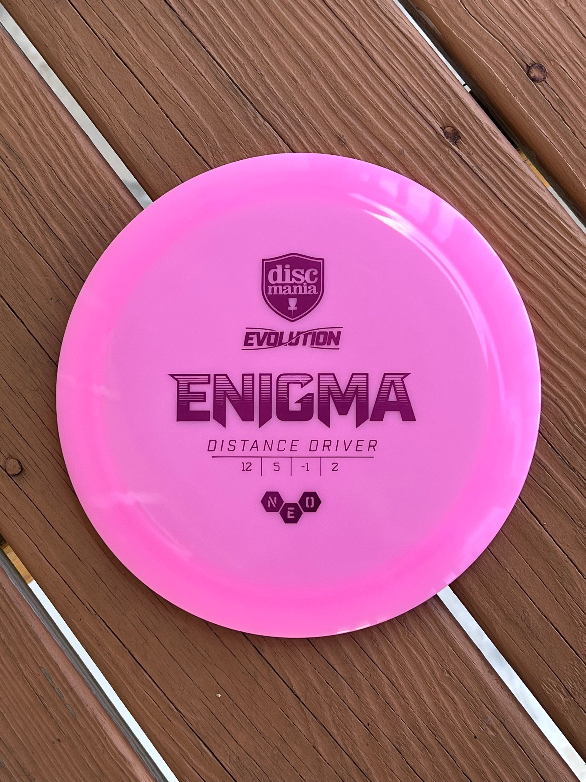 While pondering the potential of massive drives and easily controllable distance two key flight components came to mind, 1) enough turn to maximize distance and 2) enough stability to grant control. These two components needed for incredible distance have inexplicably combined to create a distance driver that reaches new distances, the Enigma.