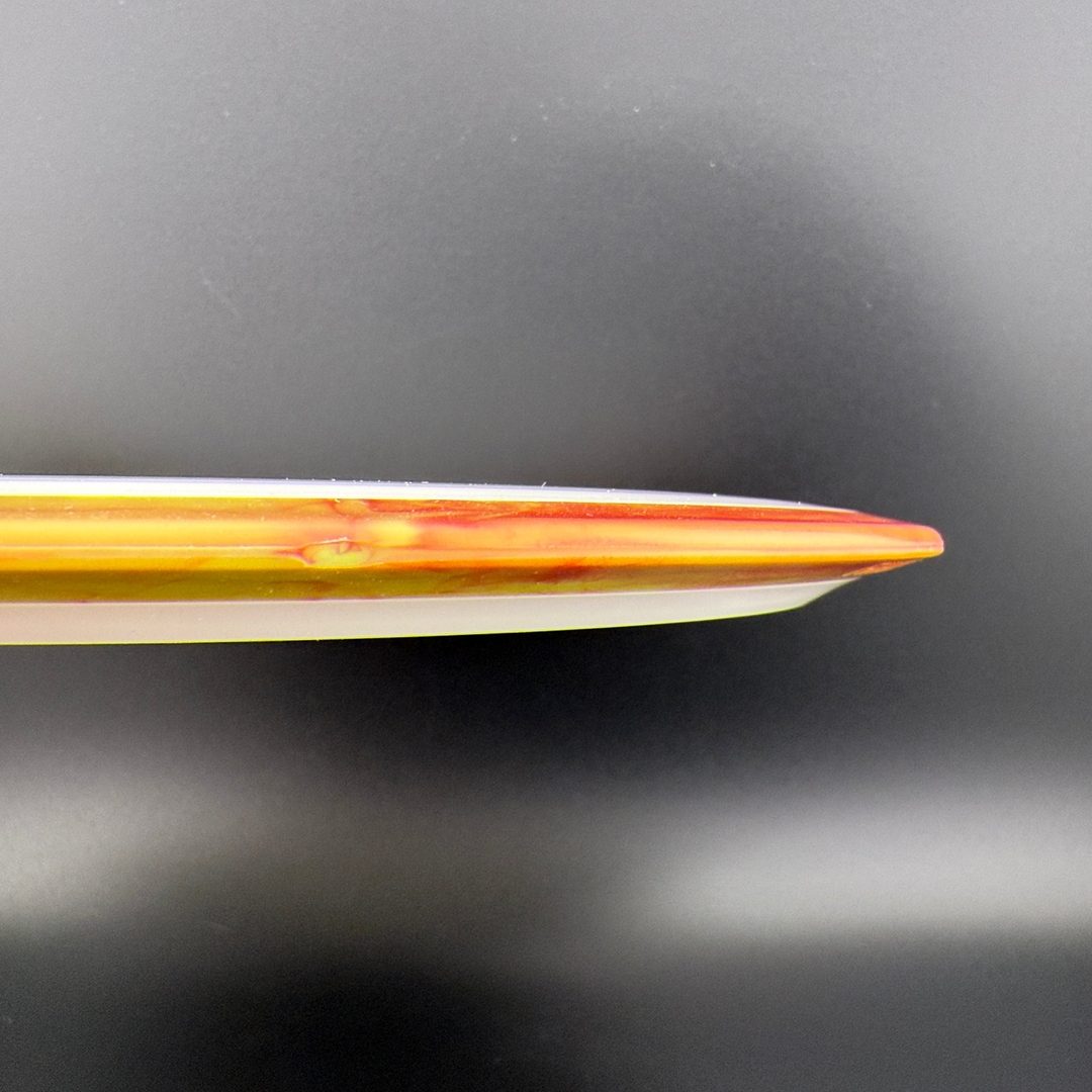 The Axiom Fireball is an overstable driver in the Axiom line. This disc is described as a beat in MVP Motion or more overstable Tesla. Compared with the Motion, this disc will exhibit a longer forward push before fading out at the end of the flight. The Fireball has all the high-speed turn resistance a headwind or forehand thrower desires. This is a great flick and headwind disc.
