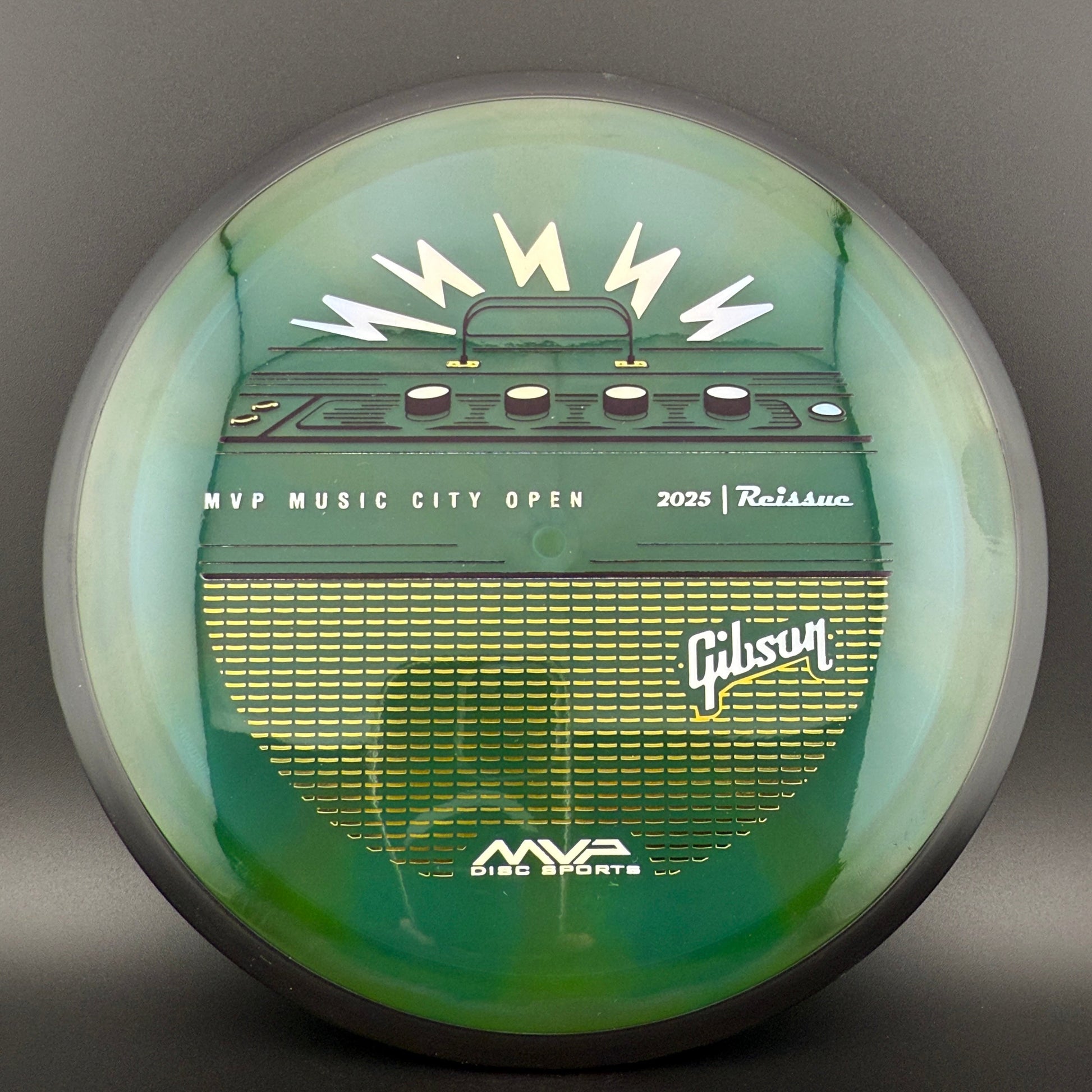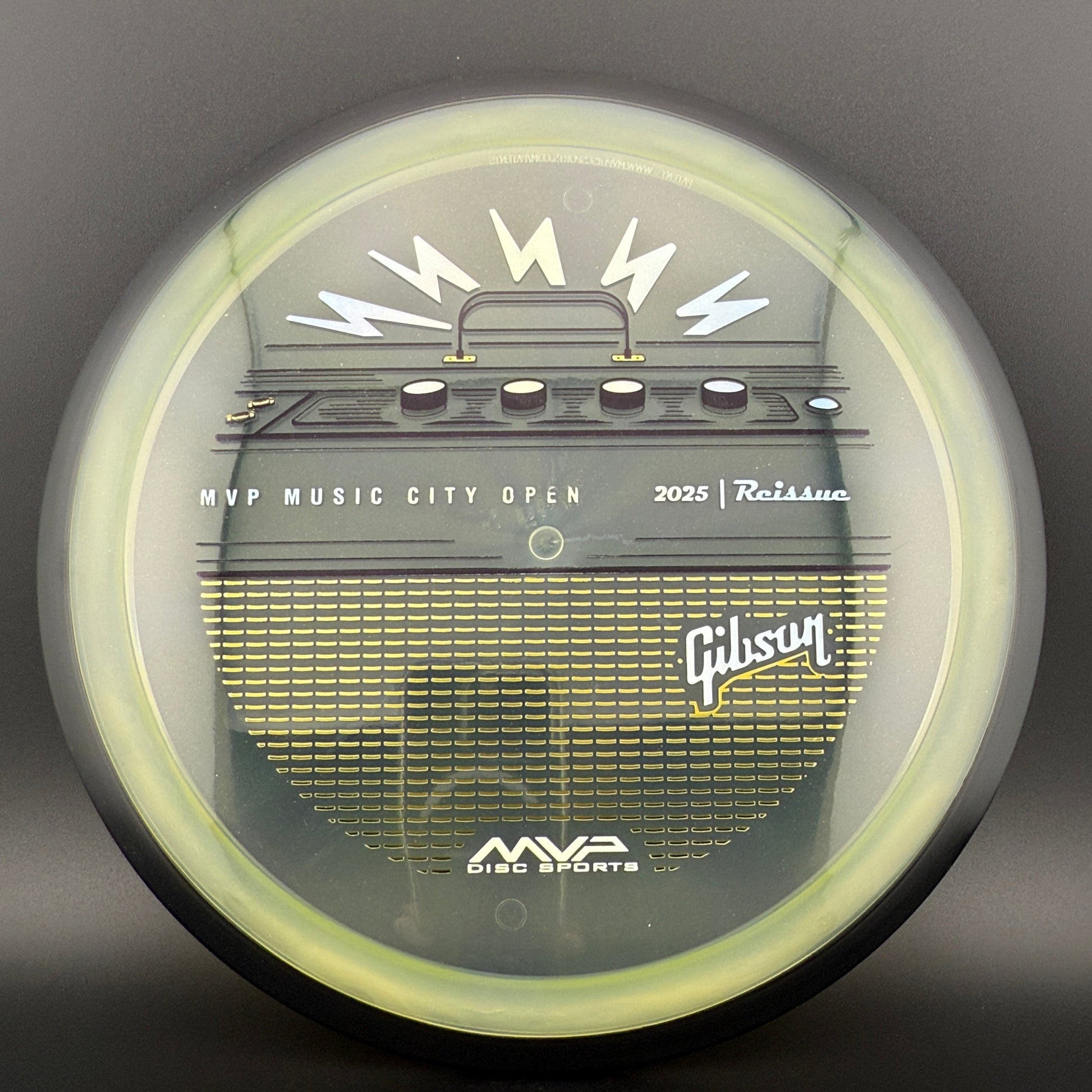 8/5/-0.5/1.5   *Limited reissue for MVP Music City Open!  Staff has been loving these.  Gibson collaboration artwork by Mike Inscho.  Discs have either Maroon, Matte Gold and Gold Glitter Holo foils or Gold Holo Black and Metallic Gold Foils.  Minor storage wear possible due to plastic type.