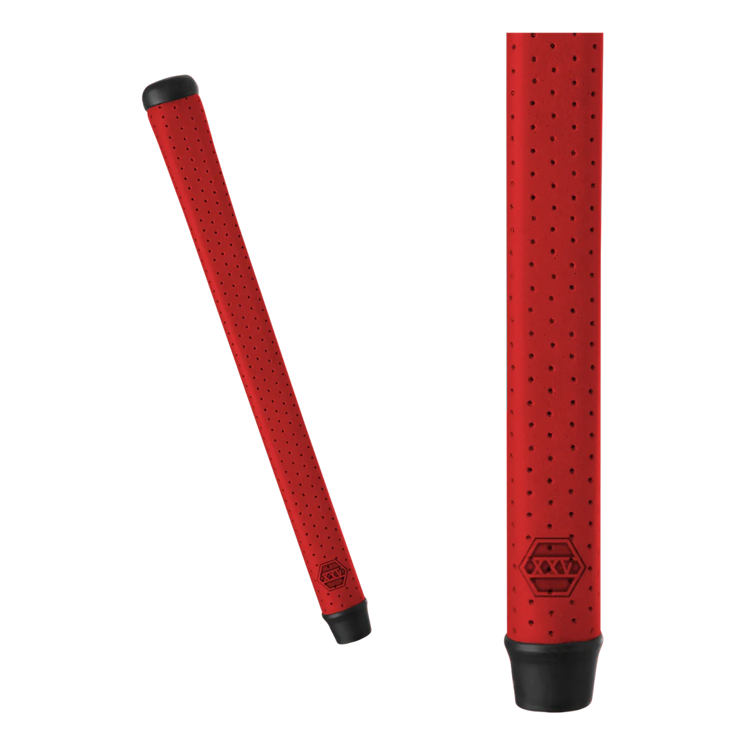 Introducing the fourth Limited Run putter of the 25th Anniversary Commemorative line, the MC-10. This 360-gram MC-10 Limited Run was inspired by the putter used to solidify Bettinardi Golf’s first win on Tour in 1999 and was modified to feature a magnificent Gold Flame finish and a one-piece milled Plumber’s neck. The Plumber’s neck features seven intricately placed Copper plugs on the Tour Blasted side of the neck, while the Gold Flame back includes a “1/250” engraving to mark its limited quantity. This stunning putter features a red Hex milling with Roman numerals “XXV” on the face, while the sole includes an open hex pattern and the pocket features a classic Bettinardi wordmark. This traditional blade putter features a royal paint scheme of red and white and comes paired with a stunning red leather 25th Anniversary headcover with crimson accents and a red perforated leather 25th Anniversary Gripmaster grip with white stitchback.