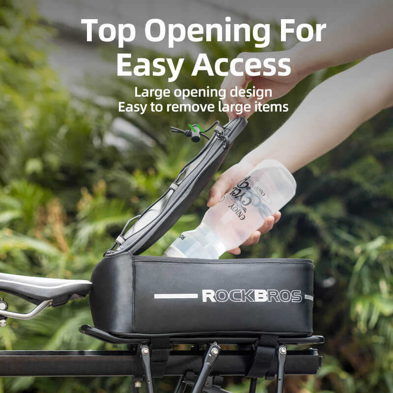 The ROCKBROS Bike Rear Rack Bag is built to keep your essentials safe, dry, and organized on every ride. Made from waterproof materials and featuring reflective stripes for enhanced visibility, it’s perfect for both day and night cycling. The bag mounts securely to your rear rack, offering stable and comfortable carrying without affecting your balance. Its spacious yet compact design makes it ideal for commuting, touring, or running daily errands—providing reliable storage that combines durability, practicality, and everyday convenience.