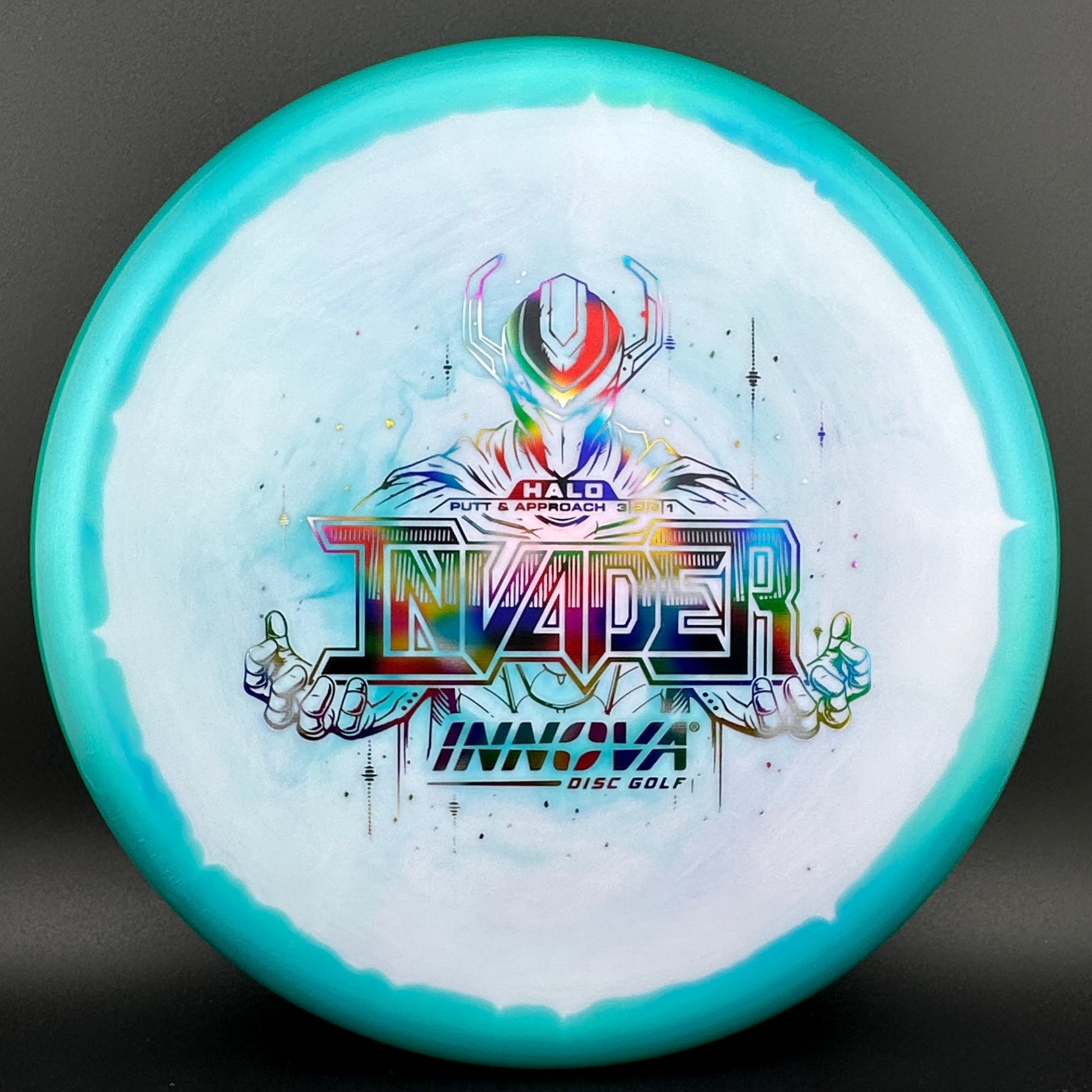 The Invader should be your approach workhorse. It is the ideal Putt & Approach disc for full powered throws both backhand and sidearm. It features a flat-top and small bead that creates a comfortable in hand feel. The flatter top profile also reduces errant glide, allowing the player to power the disc to the correct distance for more control. Invade the circle from the fairway or the tee.