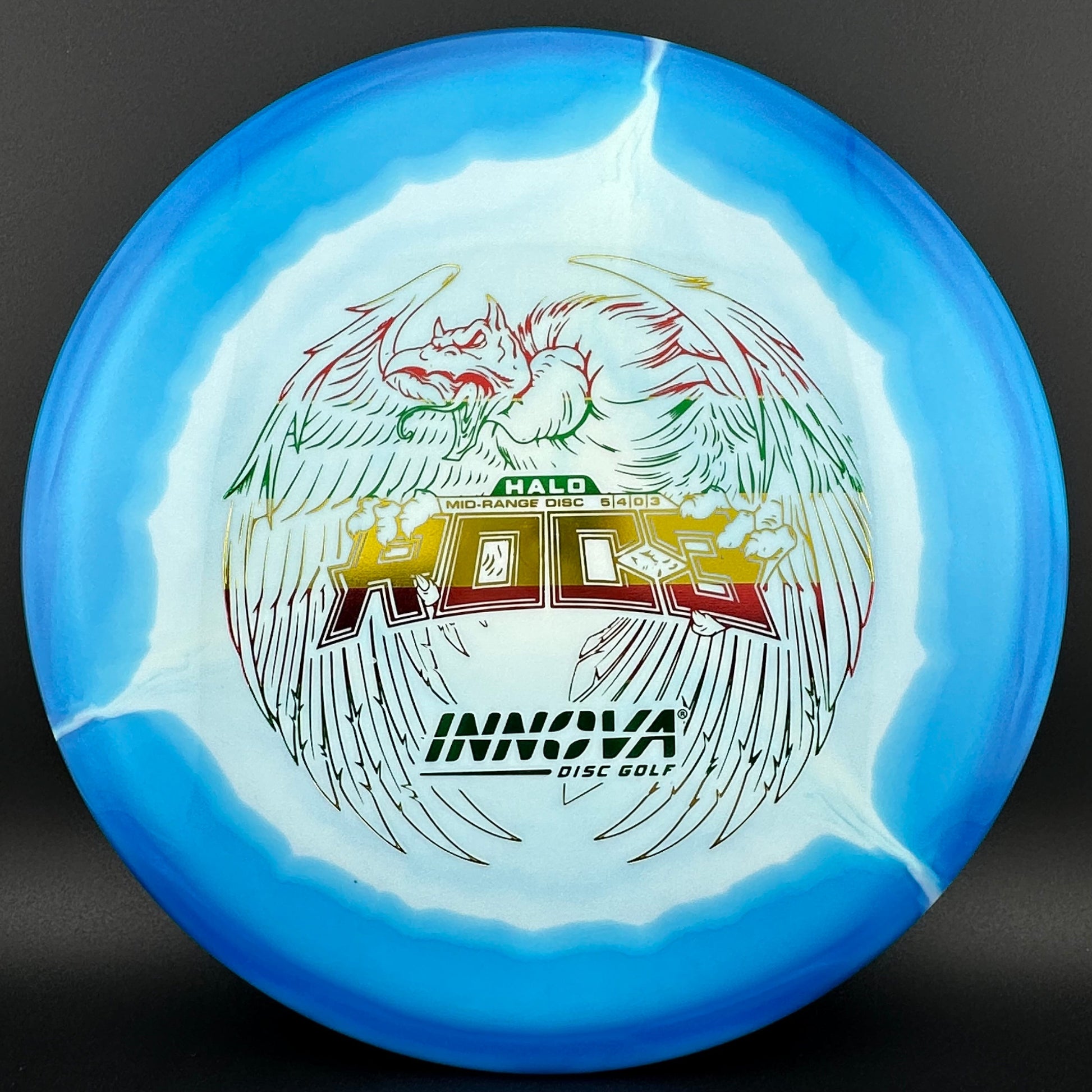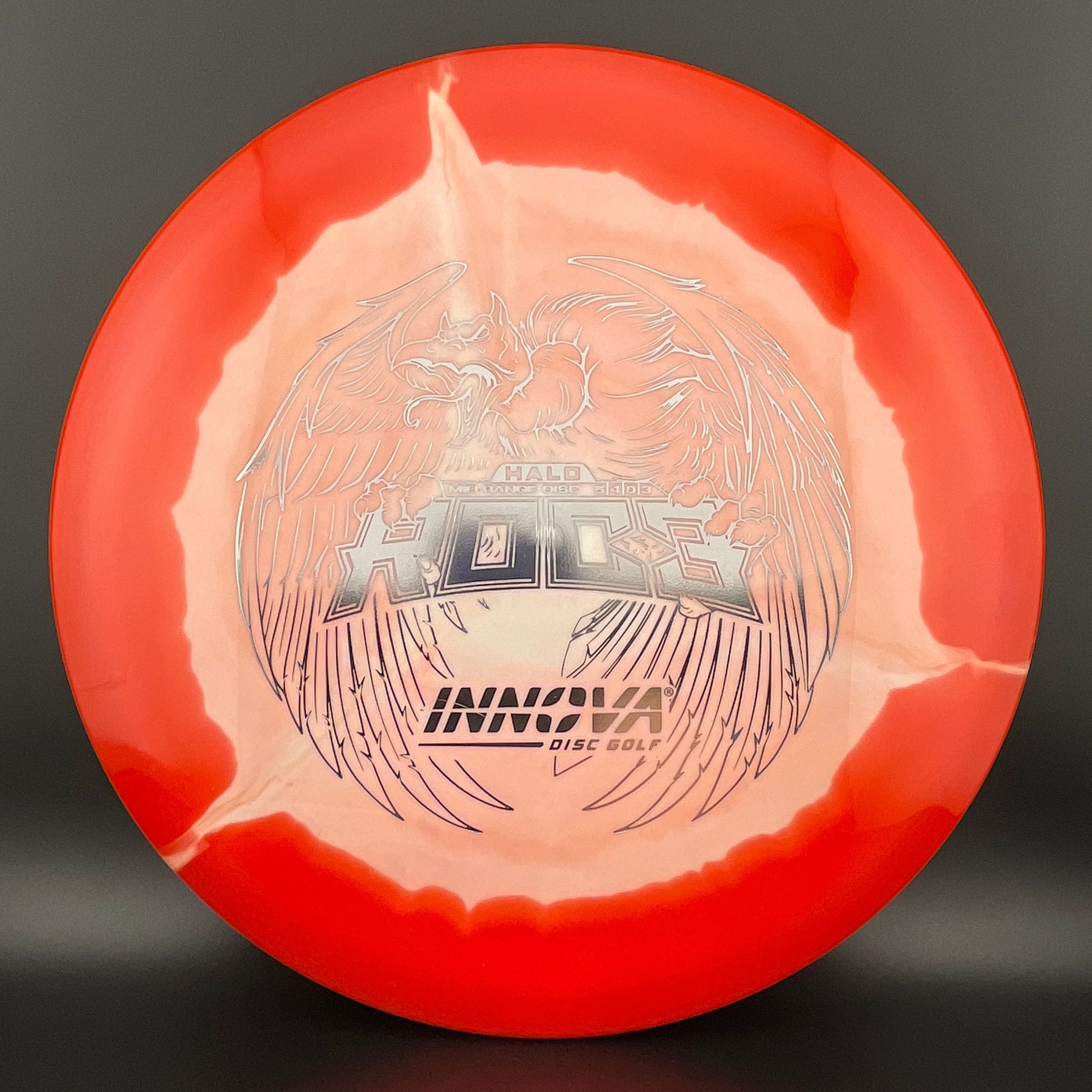 Halo Star is a decorative blend of Star plastic featuring a colorful halo design where the rim is a distinctly different color than the center plate of the disc. Halo plastic rims provide more strength and less flex than Star plastic, giving the disc more stability and consistency for years of flight.