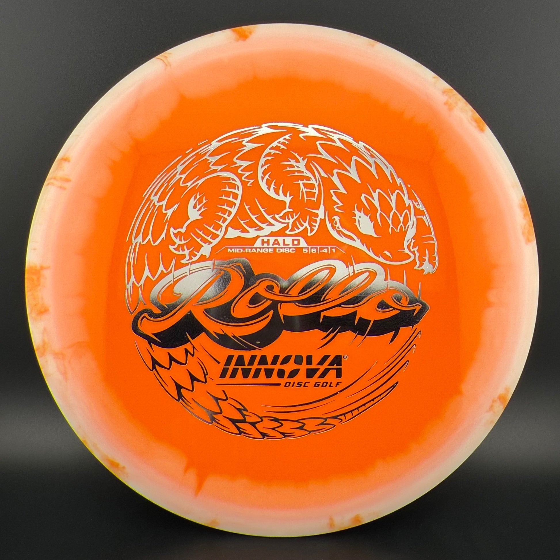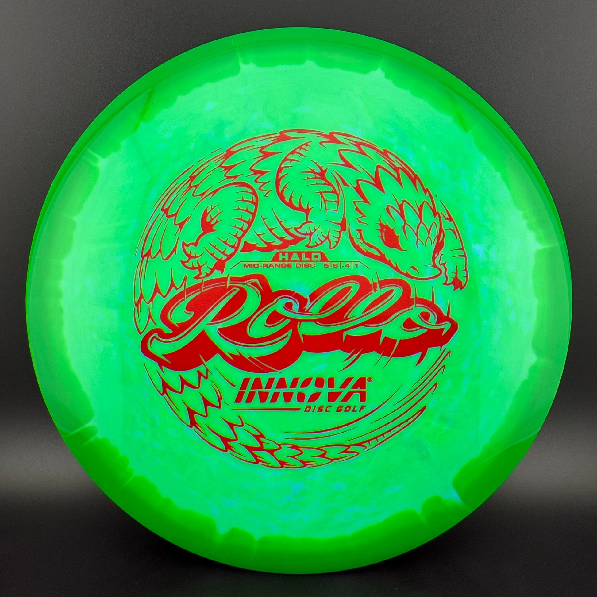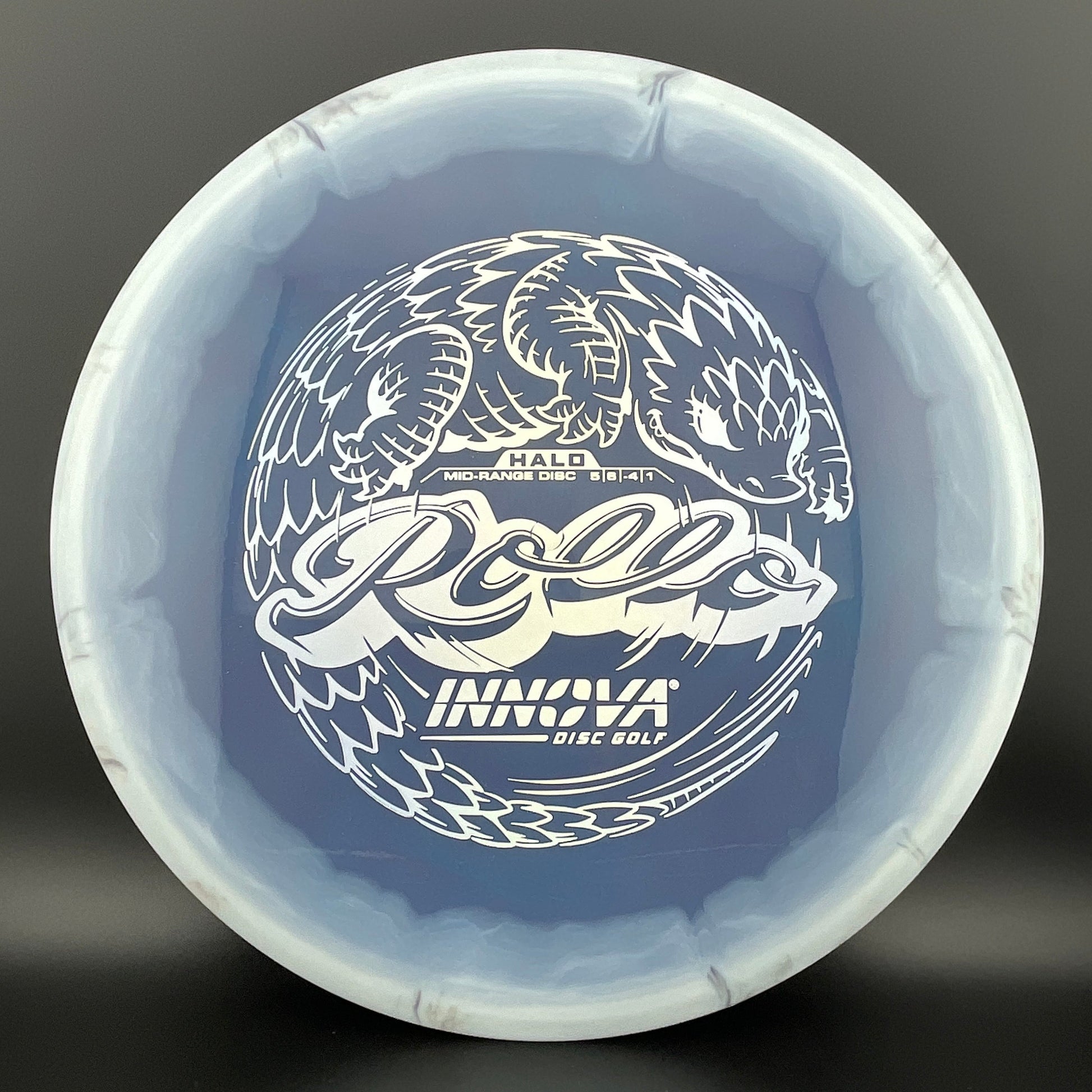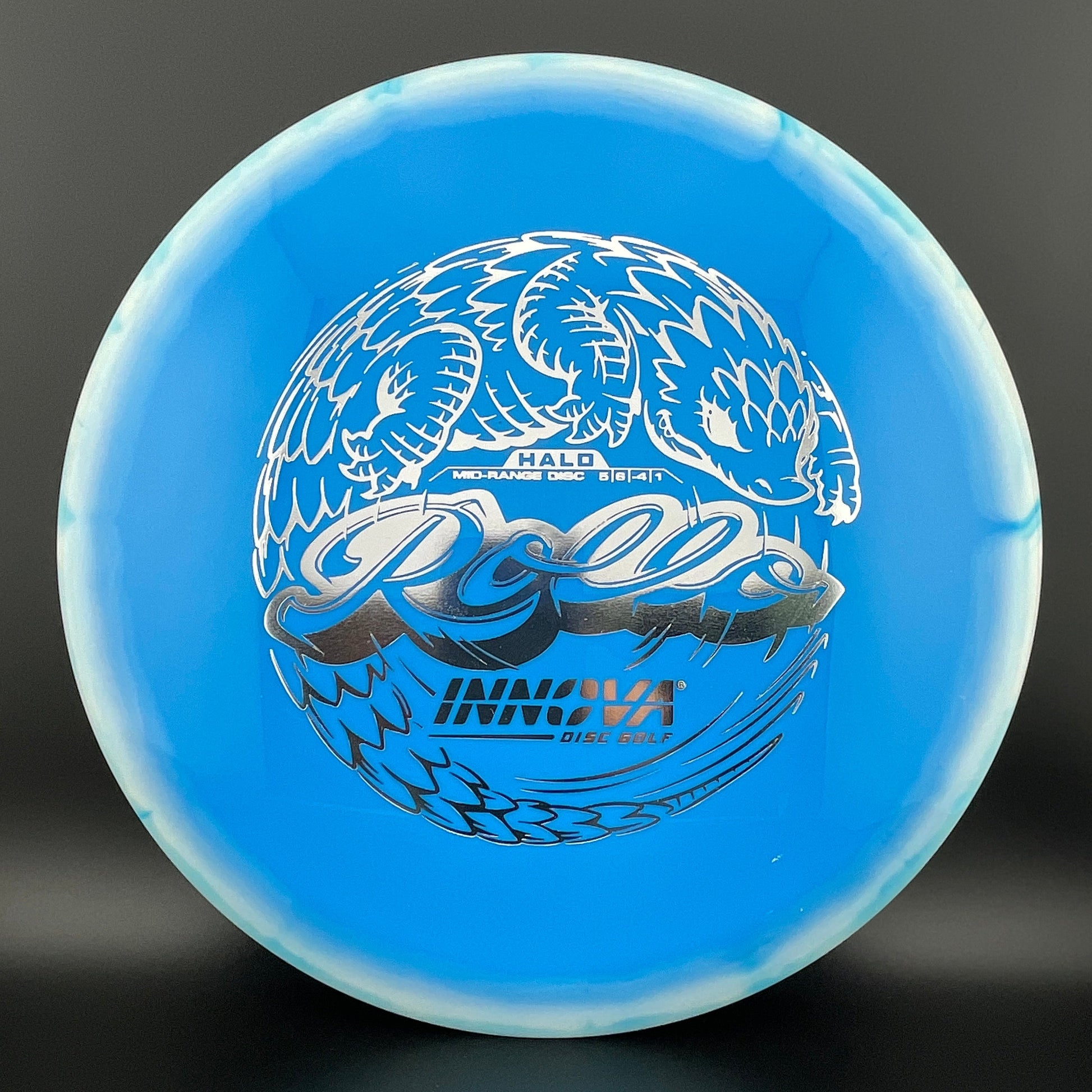 Halo Star is a decorative blend of Star plastic featuring a colorful halo design where the rim is a distinctly different color than the center plate of the disc. Halo discs are slightly more overstable to start than Star counterparts. The pearly rim is noticeably firmer than the Star flight plate - providing the disc with additional durability for a long lifetime of flight