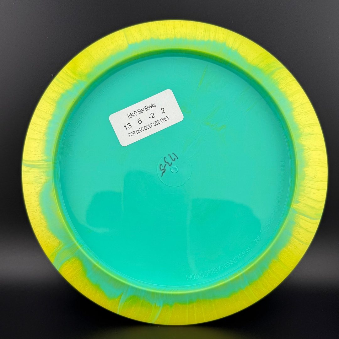 Halo: With a circular burst of color, the Halo Shryke is a sight to behold. Halo discs feature a vibrant, pearly colored edge that blends into a brighter center and are molded in Innova’s premium Star plastic.