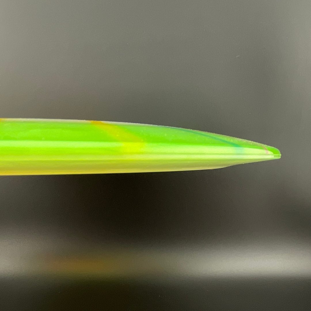The Shryke is an easy to throw, very long range driver for a wide variety of players. A mild high speed turn puts the Shryke in glide mode, which along with its high aerodynamic speed, give it incredible distance. The low speed fade is also mild, which makes it easy to keep on the fairway. The Shryke is similar to our popular Tern but faster and slightly more high speed stable.