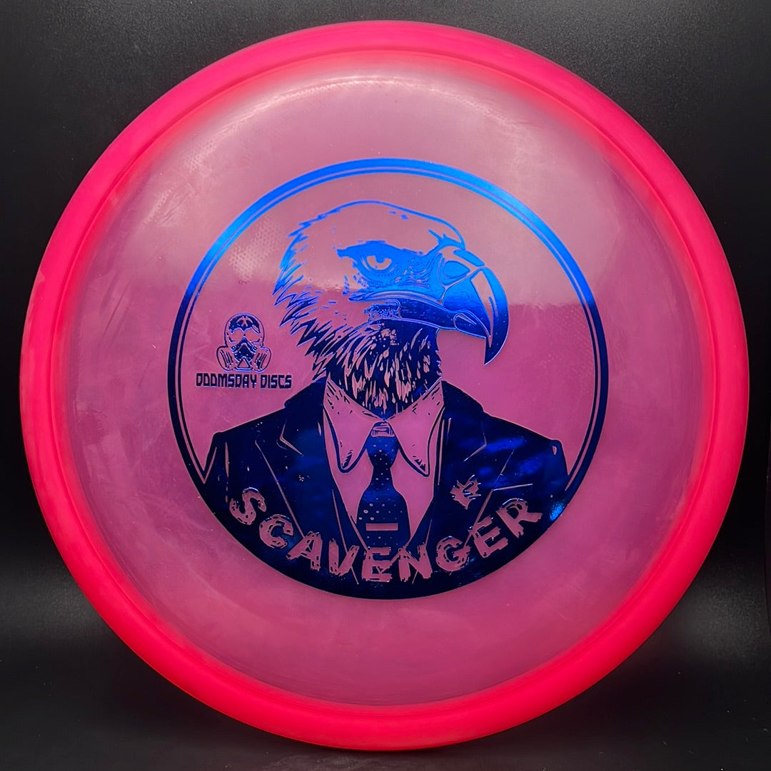 The Scavenger by Doomsday Discs is an easy-to-throw, understable mid-range with a slightly more shallow profile than the Despair. It's a good choice for players who prefer gripping a low-profile midrange. It was officially approved by the PDGA on 8/7/23.