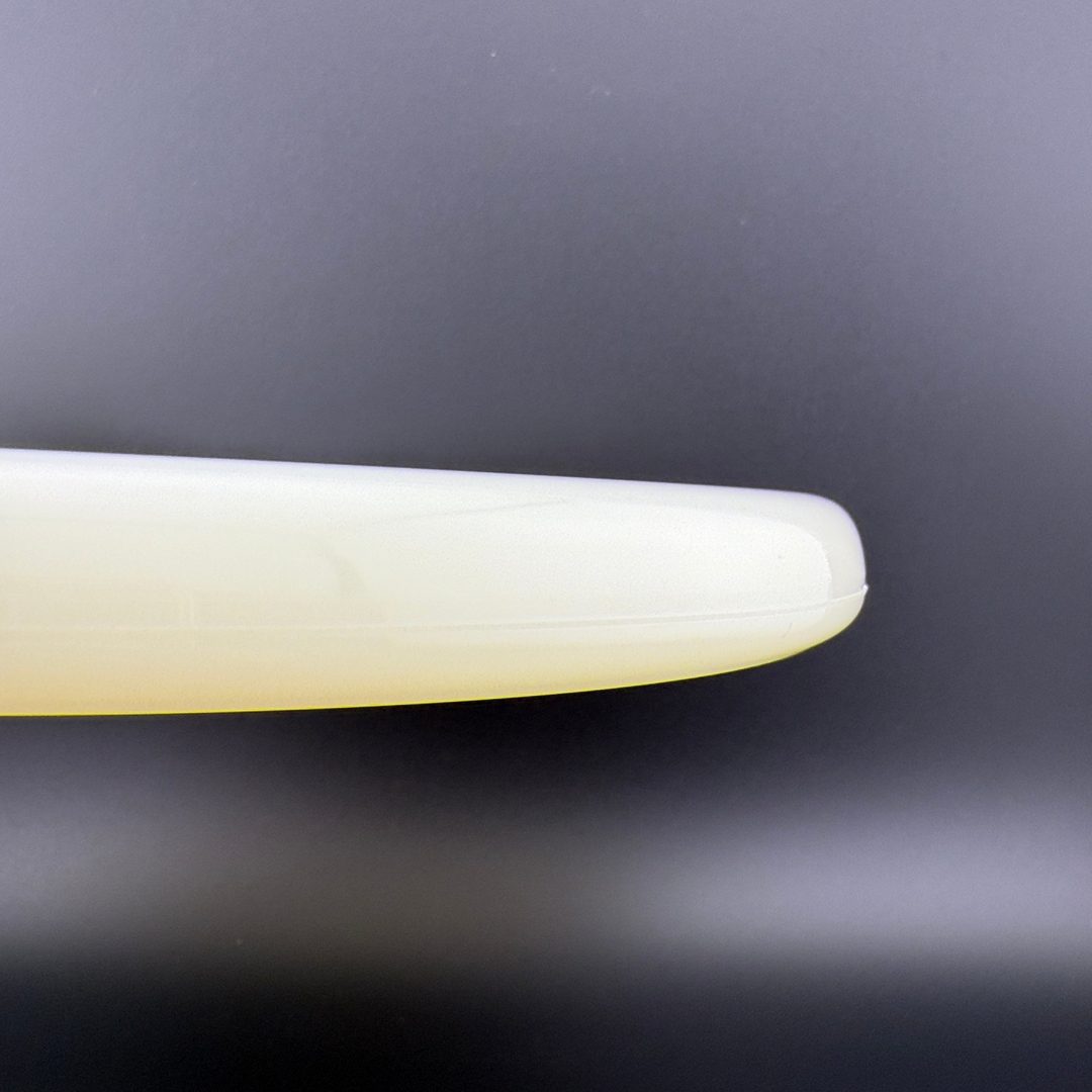 This is the glow-in-the-dark version of Kastaplast's K1 plastic. K1 Glow has an excellent feel. It is moderately grippy, but not too sticky. This plastic is extremely durable, making it perfect for regular day time rounds as well as night rounds.