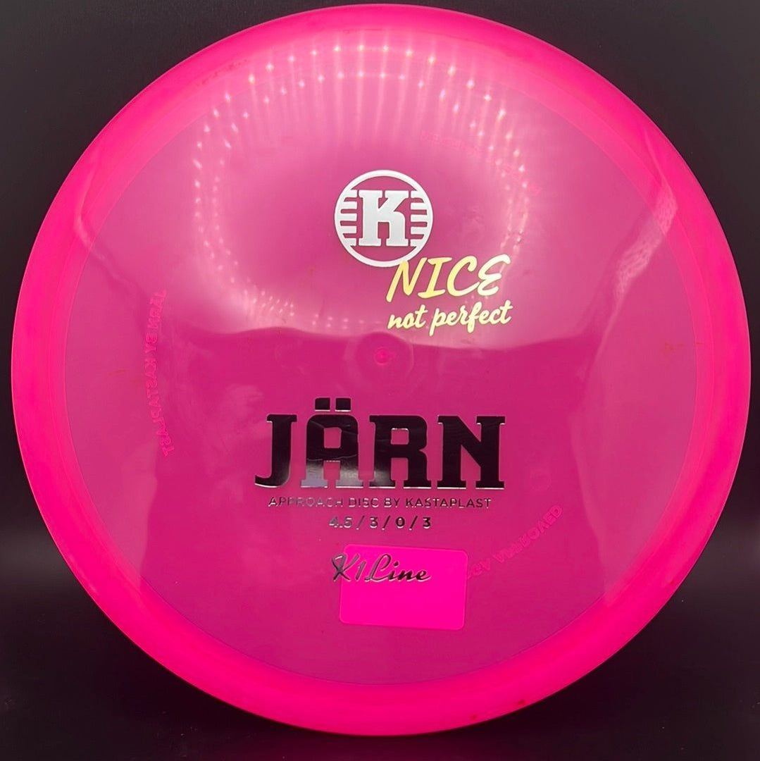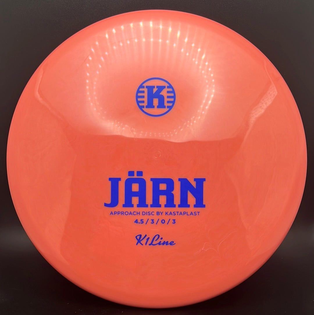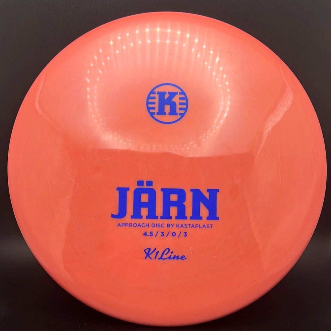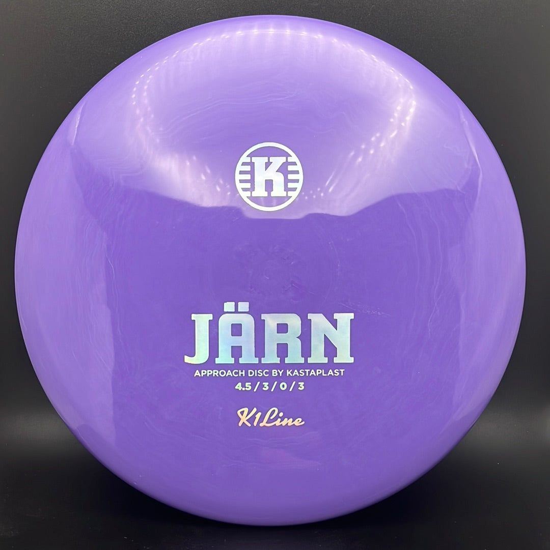 The Kastaplast K1 Jarn is an overstable mid range driver and approach disc. It is the first overstable approach disc by Kastaplast. This flat top disc golf disc has predictable fade and is great in headwinds. Players of all skill levels need the Jarn in their bag!