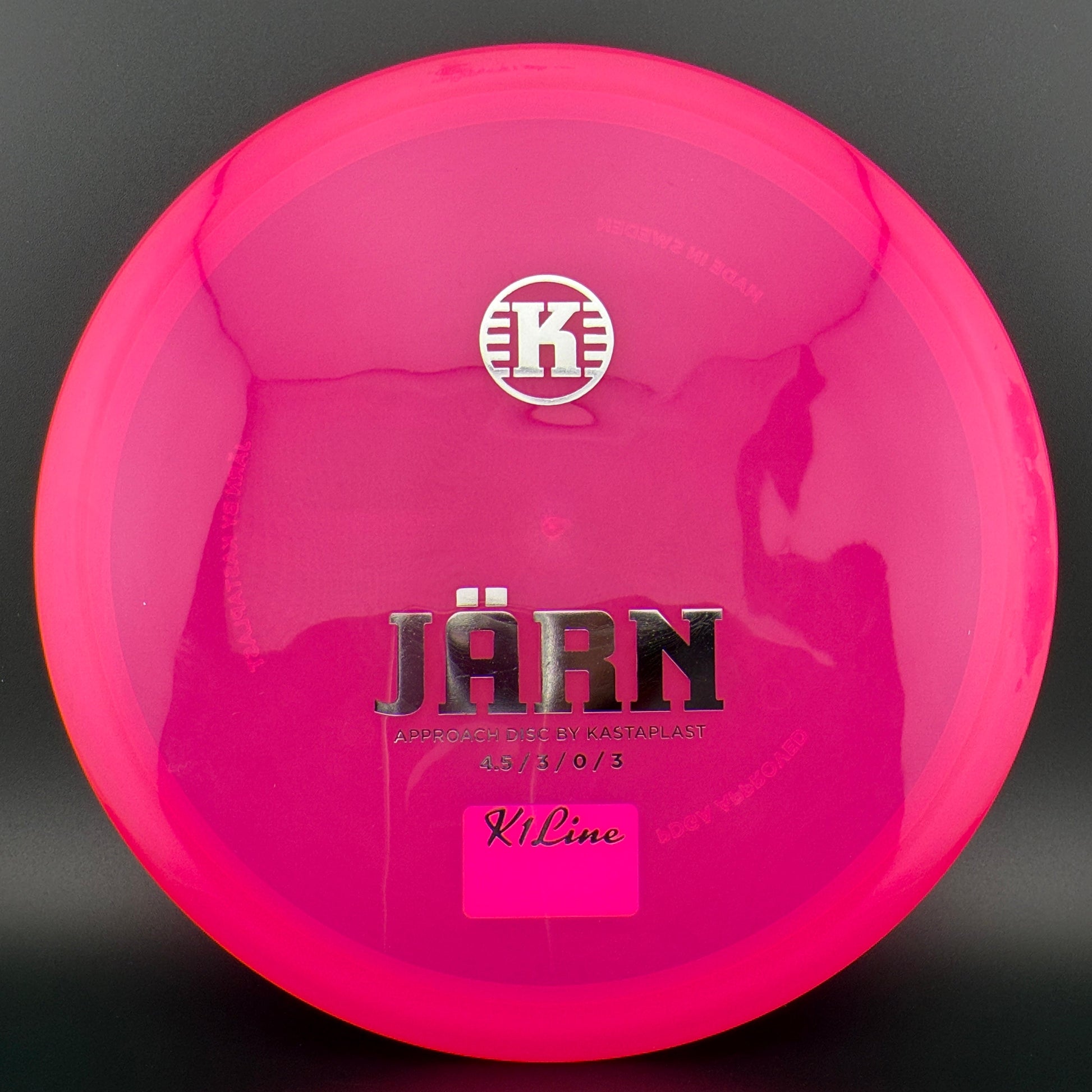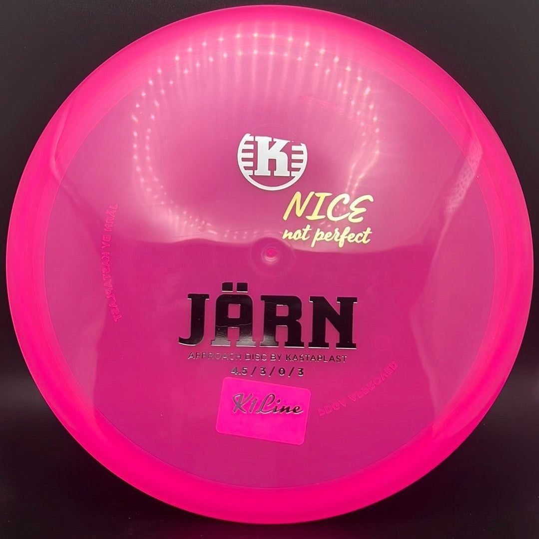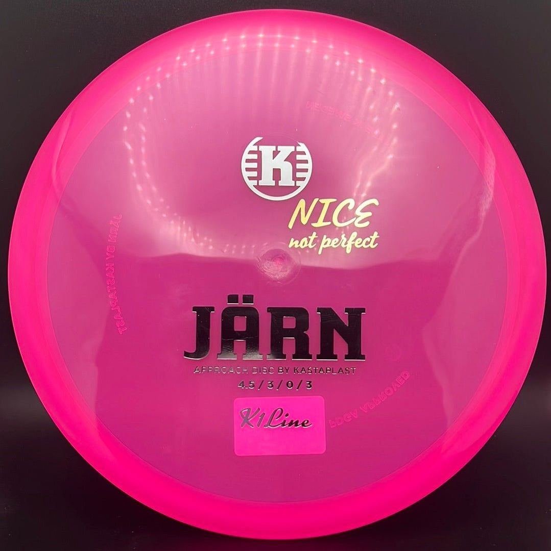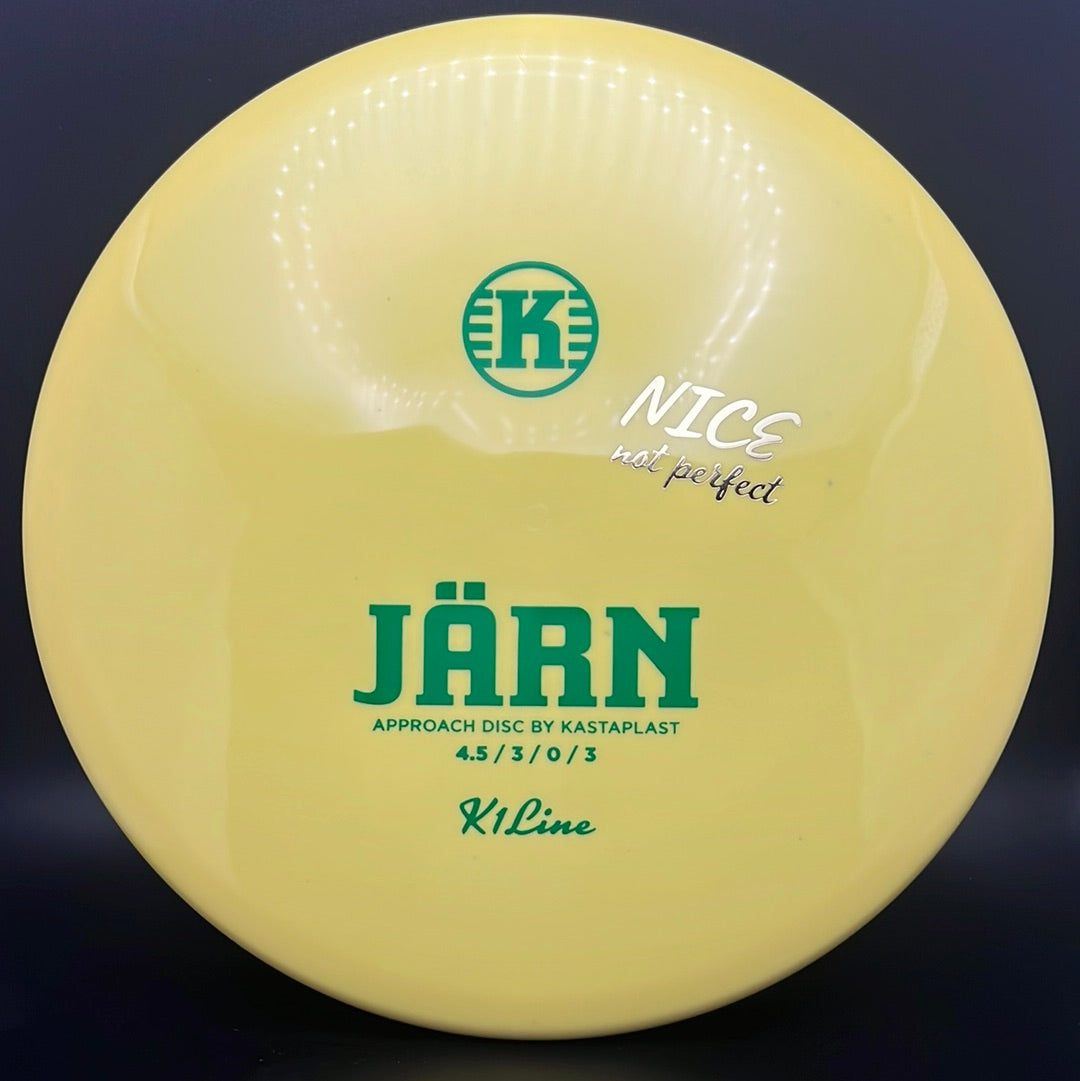 The Kastaplast K1 Jarn is an overstable mid range driver and approach disc. It is the first overstable approach disc by Kastaplast. This flat top disc golf disc has predictable fade and is great in headwinds. Players of all skill levels need the Jarn in their bag!