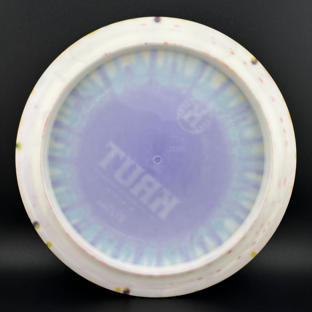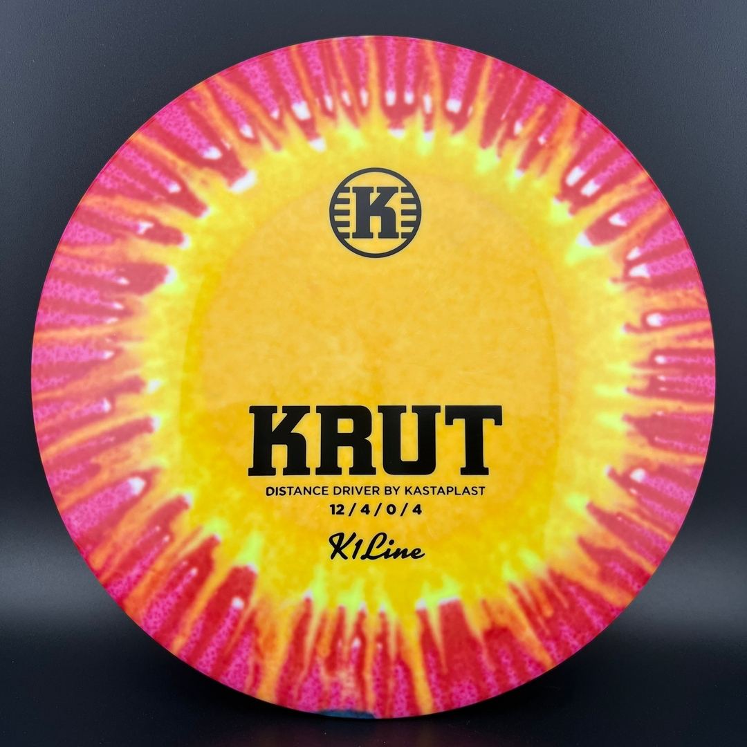 Kastaplast's newest release after the Stig is the Krut, described as the Guld’s explosive brother with less glide and a more predictable fade. The Krut is a super overstable distance driver that is reliable in all wind conditions, holding straight in a headwind without turning over, and will always end in a strong, dependable fade. It will have a consistent flight whether you use it for backhand or forehand spike hyzers or flex shots.