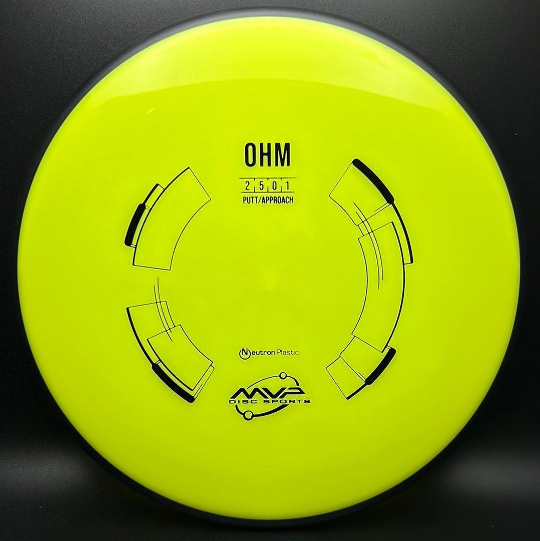 Laser straight drives and confident putts are the best ways to describe the brand new Ohm from MVP. Debuting in Neutron plastic, the Ohm is inspired by the Streamline fan-favorite Pilot, but with enhanced GYRO® effect. The results are incredible! The tried and true shape provides both a reliable grip and loads of glide for some truly impressive drives and putts. The Ohm is sure to find a place in every disc golfer’s bag.