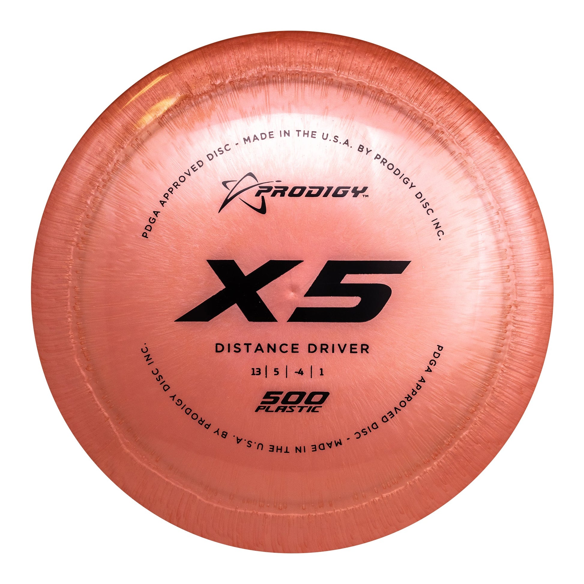 The Prodigy Disc X5 is an understable, low profile, high-speed distance driver. It is great for all players. Players with lower arm speed will get a lot more glide and distance. Players with moderate arm speed will be able to get a long flight out of this disc by throwing a slight hyzer flip. (Left edge down about 20% from flat at release). For players with faster arm speed, the X5 will flip early in its flight path and will turn right, with a soft finish to the left making it useful for wooded holes that require shaping the shot. It will also be great for long controlled rollers. The X5 performs very well at low heights and in tunnel shots.