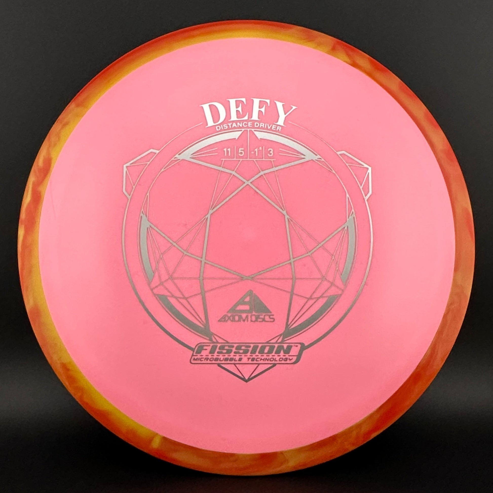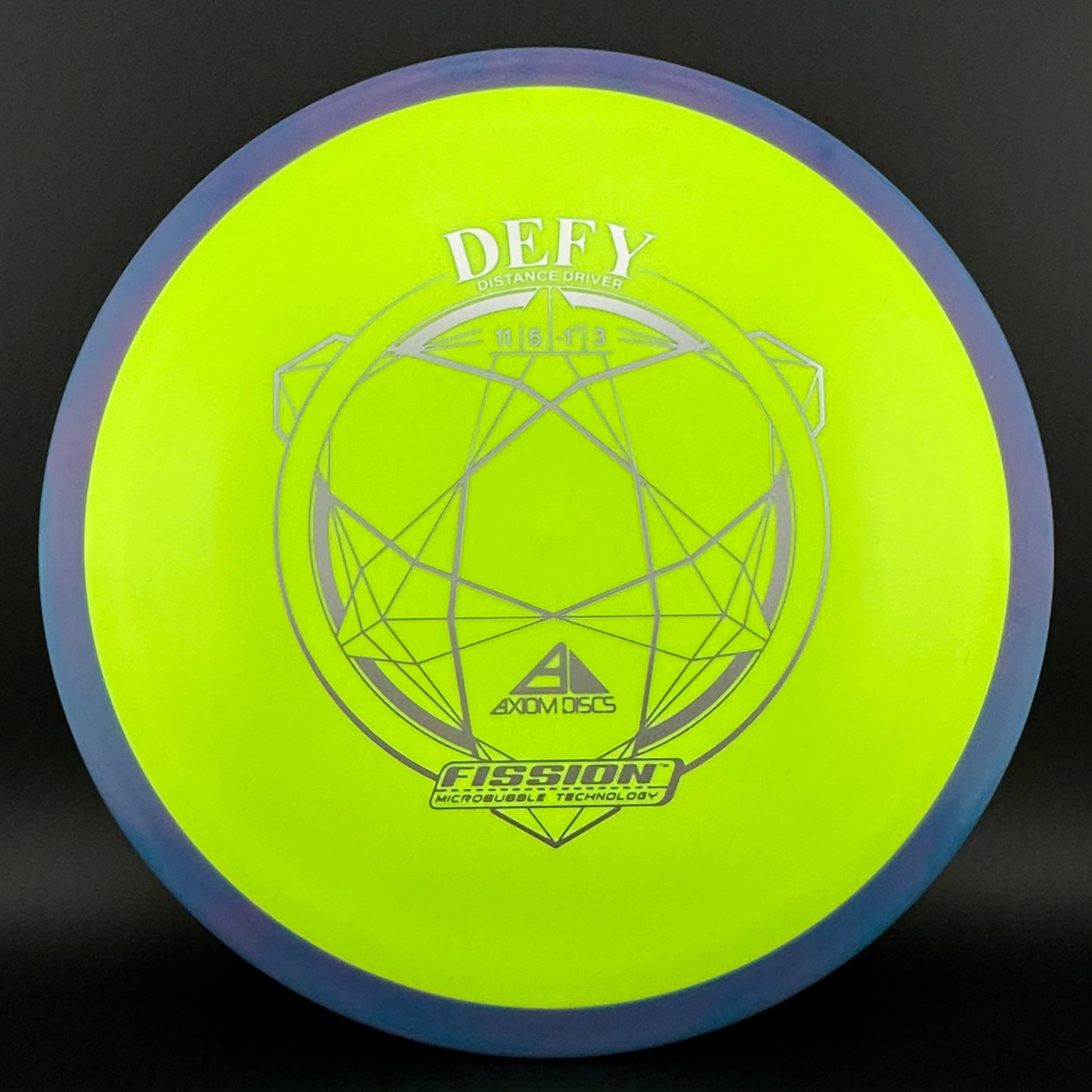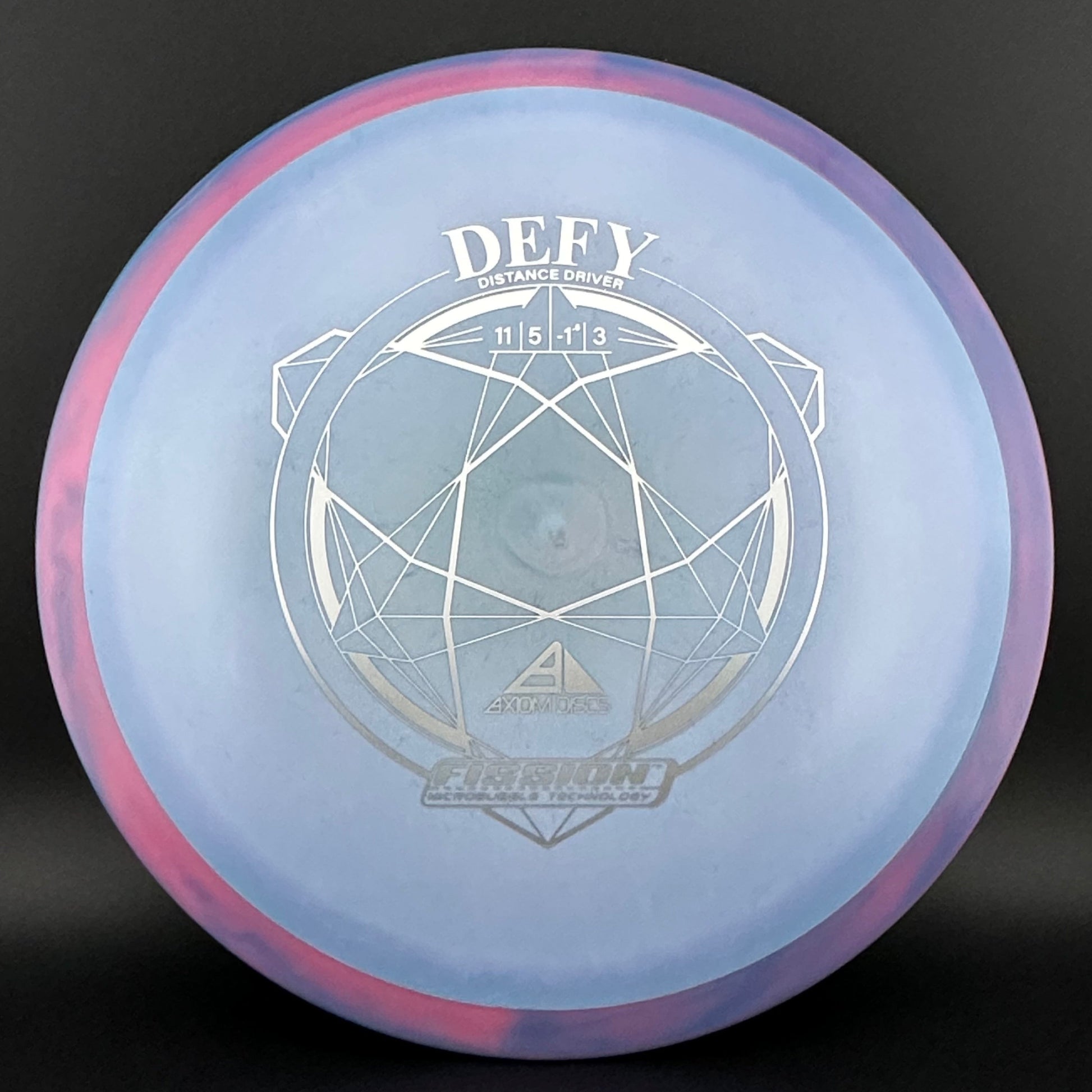 A new introduction to the Fission plastic family is here - the Fission Defy! Debuting as a stable-overstable distance driver, the Defy continues to be a driver you can depend on to not turn away from its flight path. With flight numbers of 11 | 5 | -1.5 | 3, the Defy in Fission plastic is slightly less stable, making it a great choice for easy but reliable distance for all arm speeds. The Fission Defy will still remain the line-locking, forward-finishing driver it’s expected to be, but now - thanks to it being available in lighter weights - more players can enjoy it! Experience the benefits of Fission technology for yourself, and try the Fission Defy today!