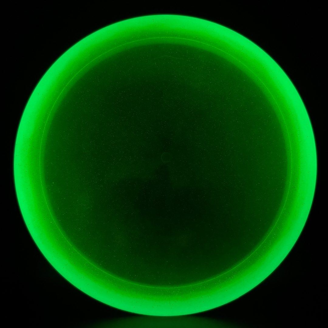 9/4/0/3 *Limited run of Glow Metal Flake Horizon C-Line FD3! The Solar Flare, for Alden Harris' Signature Series - Stamp designed by Art of Empty aka Manny Trujillo. These are nice and grippy (slightly flexible too!) with the rim glowing green. Very minor variation possible, multiple available.