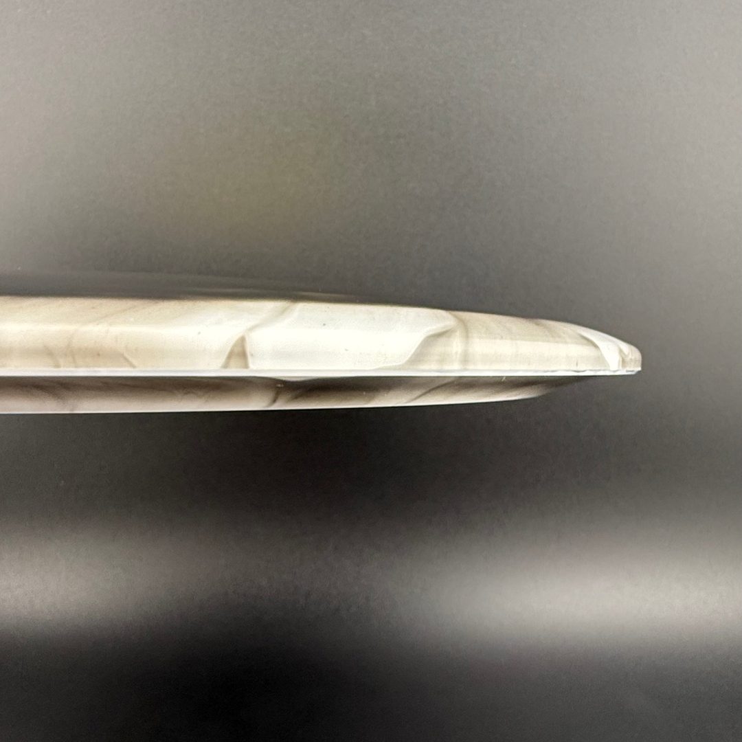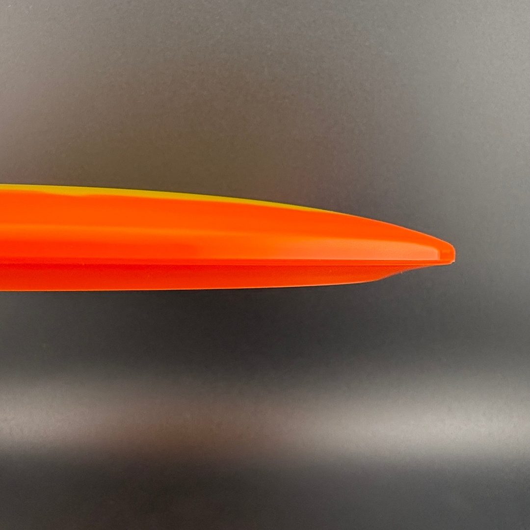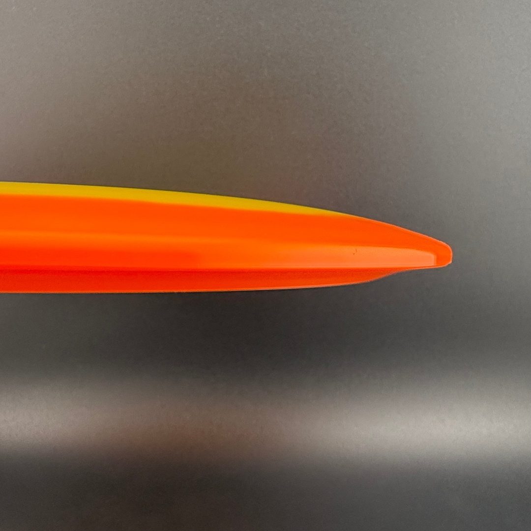 Gold Orbit plastic by Latitude 64 combines the durability and grip of Gold Line plastic with a striking two-tone "halo" effect around the rim. This aesthetic enhancement does not alter the disc's flight characteristics, ensuring consistent performance. The plastic maintains a slightly softer feel, offering enhanced grip in various conditions. Gold Orbit is favored by players who desire both top-tier performance and standout appearance in their discs.
