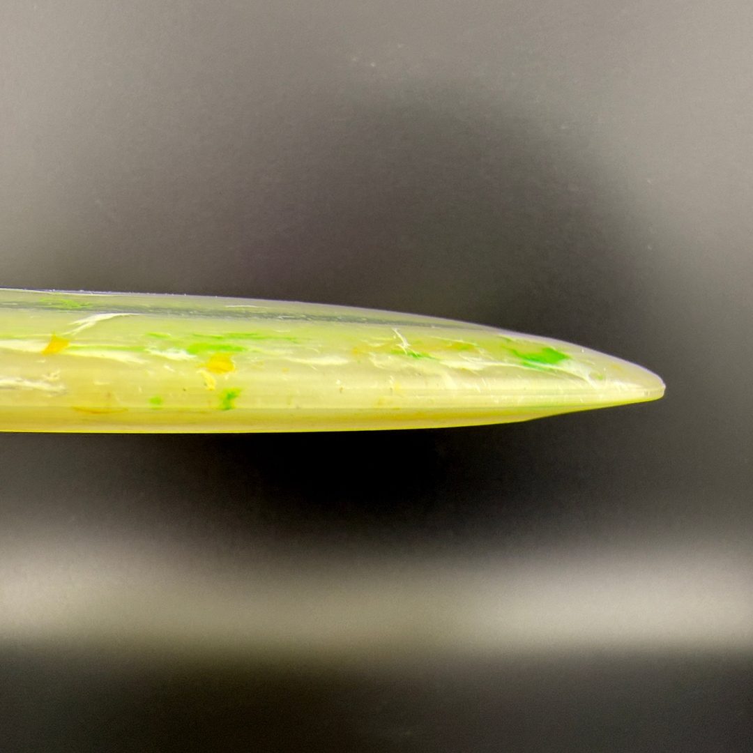 Granite plastic is DGA’s all-new premium blend, designed specifically for midranges and fairway drivers. Featuring bold, colorful marbled swirls, each disc is one-of-a-kind with a unique visual signature. Similar in feel to Discraft’s Jawbreaker plastic, Granite offers a balanced mix of grip and flex—firm enough for clean, confident releases, with just the right amount of give to handle torque and absorb ground impacts. It performs reliably in all conditions, making it ideal for controlled drives and approach shots. Crafted to meet the standards of DGA’s touring pros, Granite plastic delivers workhorse consistency with standout style.