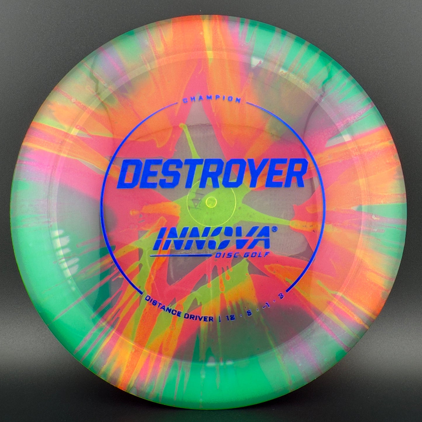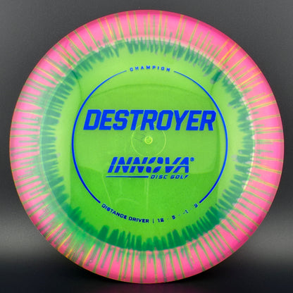 This was the first Speed 12 driver and is one of the primary discs used by many professional disc golfers. For less experienced players, the Destroyer excels for forehand throws. The Destroyer is overstable, but has a degree of turn to help provide incredible glide and distance. Intermediate players will get more distance on forehand throws with the Destroyer than just about any other disc. The Innova Destroyer is a very thin (1.4cm) disc, and has the perfect sized rim (2.2cm) for high speeds, without being uncomfortably thick. As such a popular driver, the Destroyer comes available in all the major plastics.