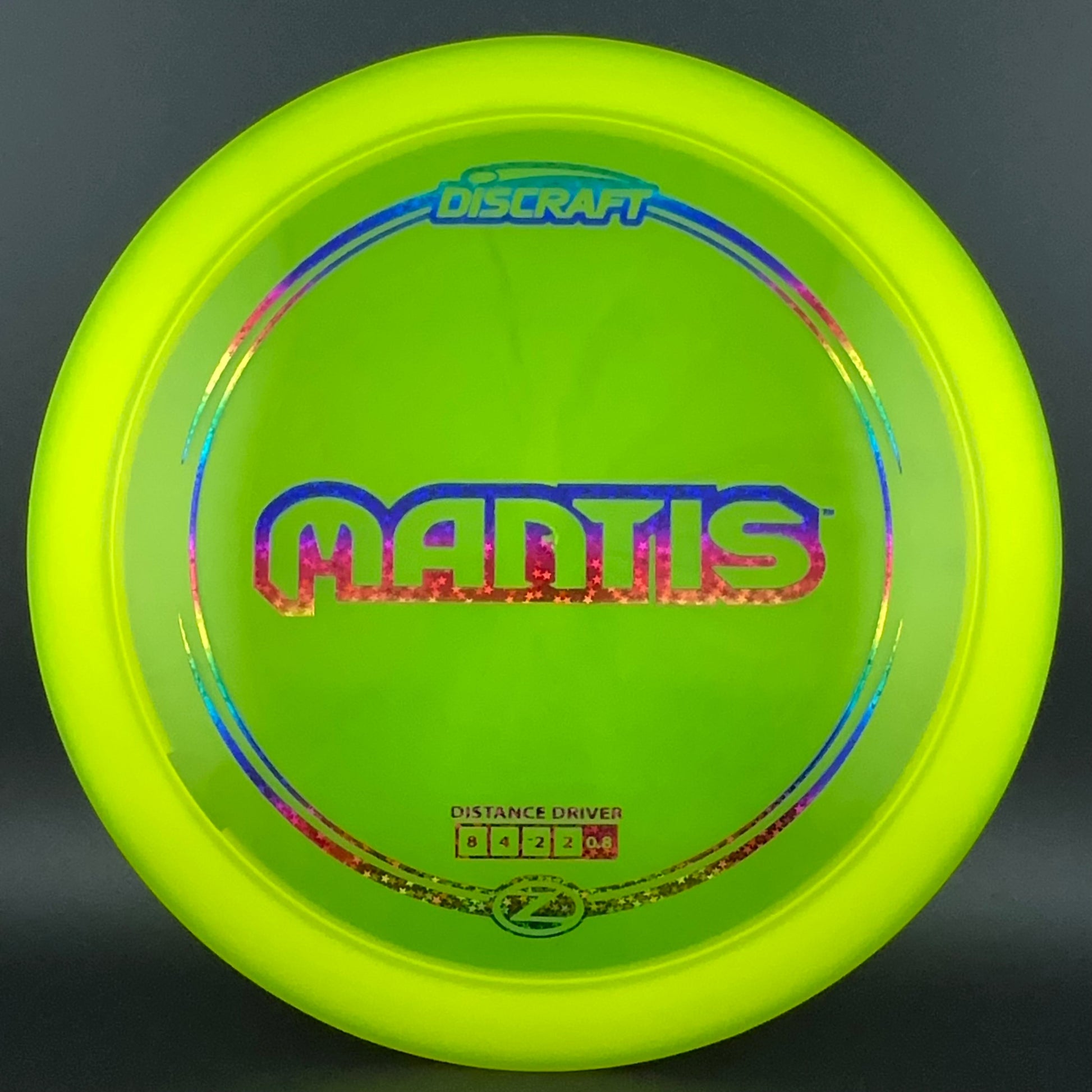 The Mantis is a utility driver for experienced players, and a distance driver for newer players. A touch of overstability enables control at slow or high speeds. Rip it hard for a hyzer flip or "S" distance shot, or hold a straight line at slower speeds. Try Mantis for straight thumber shots too!