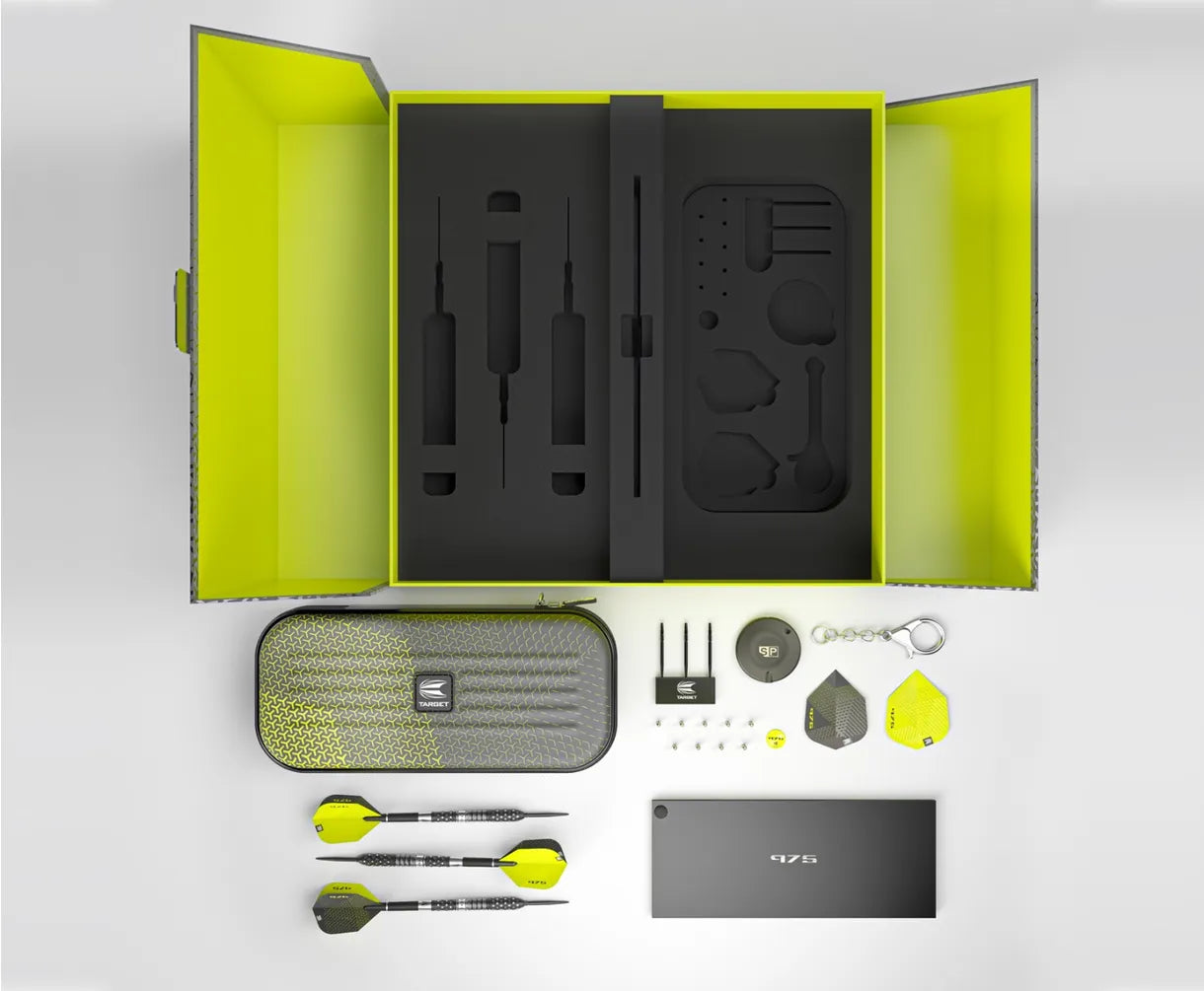 Named after its unique 97.5% tungsten density, the highest in the Target range and Inspired by the Fourth Edition Elysian, the 975 continues to push the boundaries of dart design and performance and is the next chapter in our tireless pursuit of perfection.