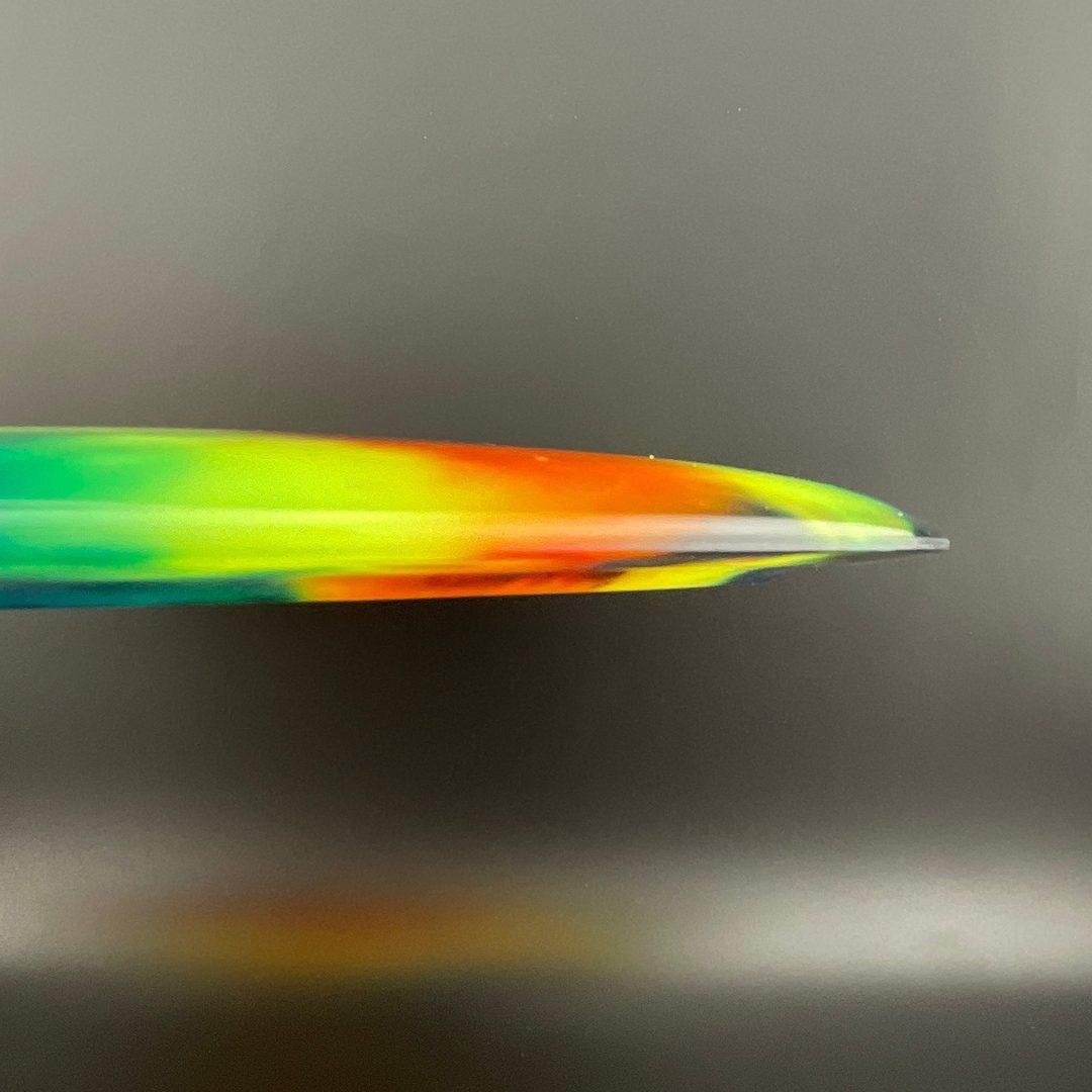 Champion I-Dye plastic takes Innova’s ultra-durable Champion blend and infuses it with bold, tie-dye-style graphics for a truly one-of-a-kind look. Each disc features a unique, colorful pattern while retaining the clear, stiff feel and excellent longevity Champion plastic is known for. Slightly more overstable than softer blends, Champion I-Dye performs reliably in all conditions while adding a vibrant visual element that stands out in the air and on the ground. It’s the perfect blend of style, toughness, and performance.