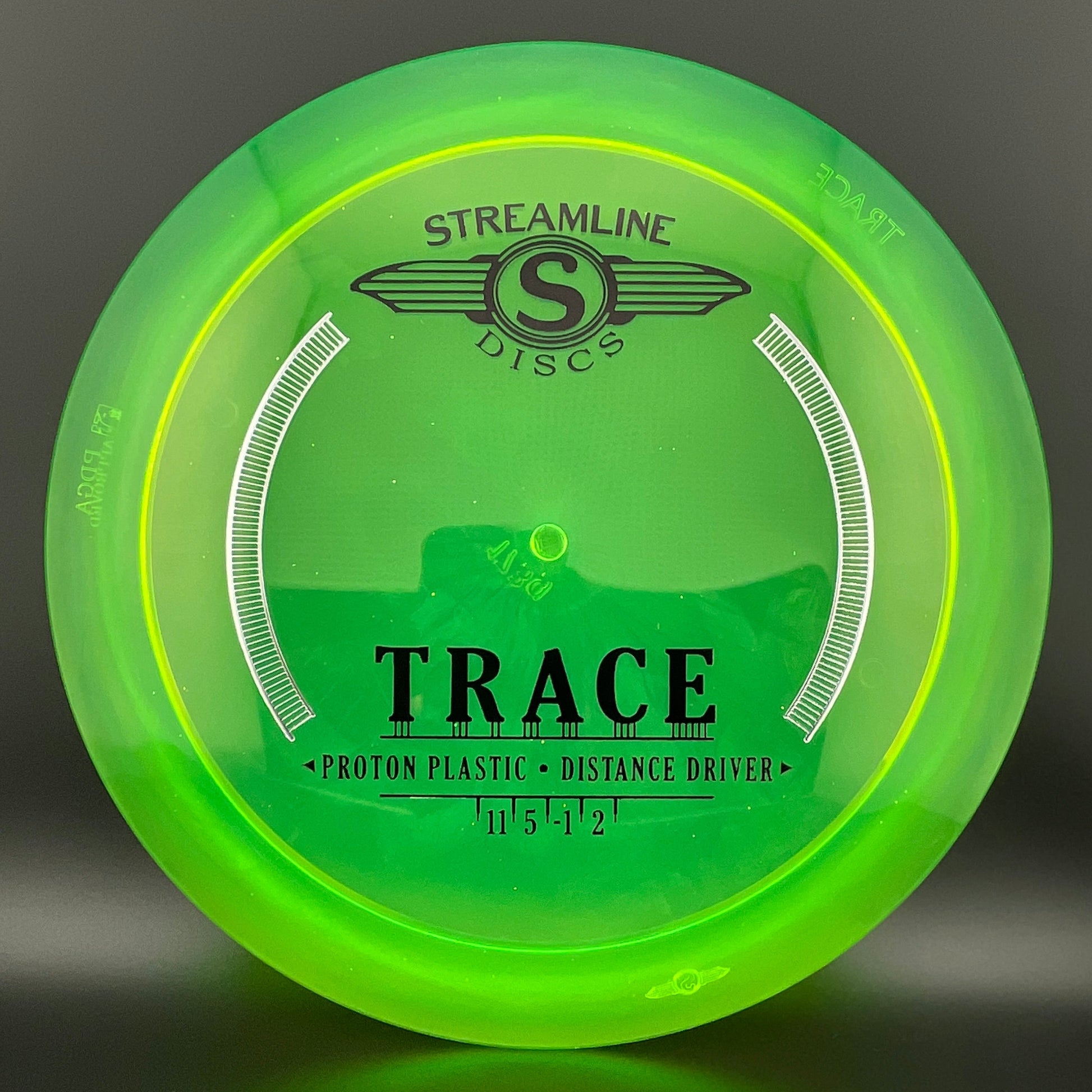The Trace has a manageable 21mm rim width and straight-stable flight that places it squarely in the Speed 11 Power Straight market. The Trace’s moderate dome is smooth and even, with a shoulder and depth that yields excellent glide. Most players will be able to stand the Trace up on a hyzerflip, but the Trace will soak up plenty of power before being pushed off its straight line. Its ending fade is smooth but dependable for easy ranging.