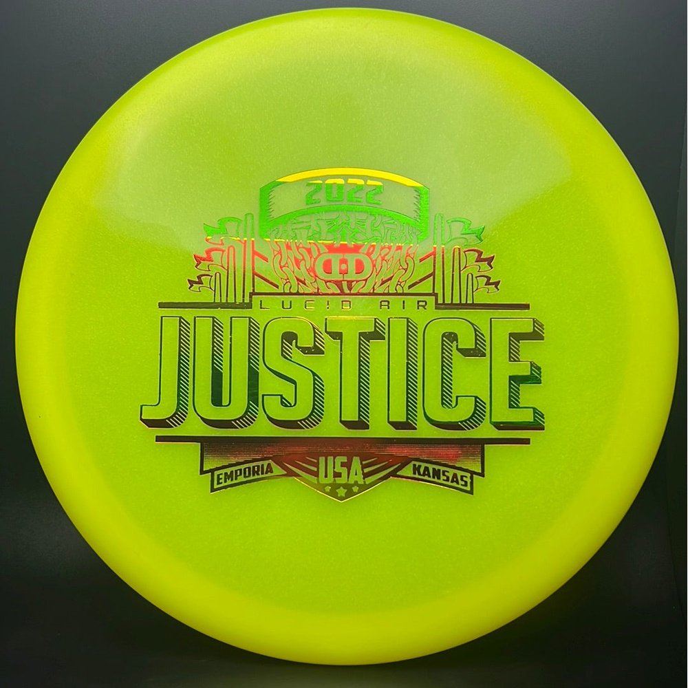 Strong winds will make the most experienced player look like a novice. They have forced us back into the laboratory to solve the midrange question. Our tests have led us here. The Justice is served. The Justice by Dynamic Discs is going to become your new utility disc.  It will not turn over. Throw the Justice one time and you will not need to reach for anything else for a short distance, over-stable answer. No longer will you throw a good shot into a headwind only to see your disc flip over. Let the Justice get you what you deserve.