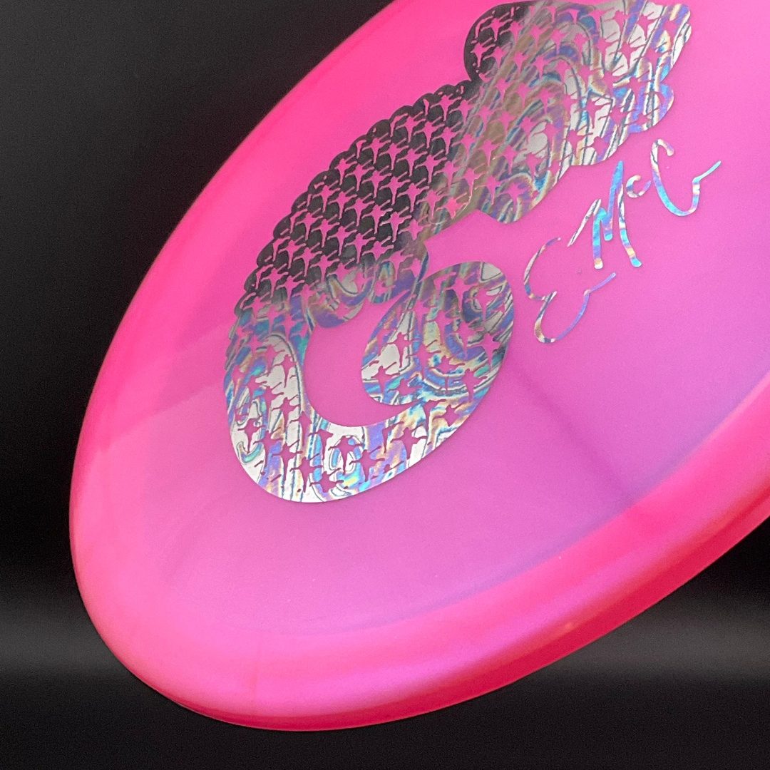 The EMac Truth is a overstable mid range disc designed to offer a more stable flight than the regular Truth mid range driver. This version of the disc is Eric McCabe's signature disc, and was designed to his specifications. This disc will hold any line you give it, and is often used as a very effective upshot driver. Offering a predictable fade but a long flight with its high glide, this disc holds true every time you throw it.