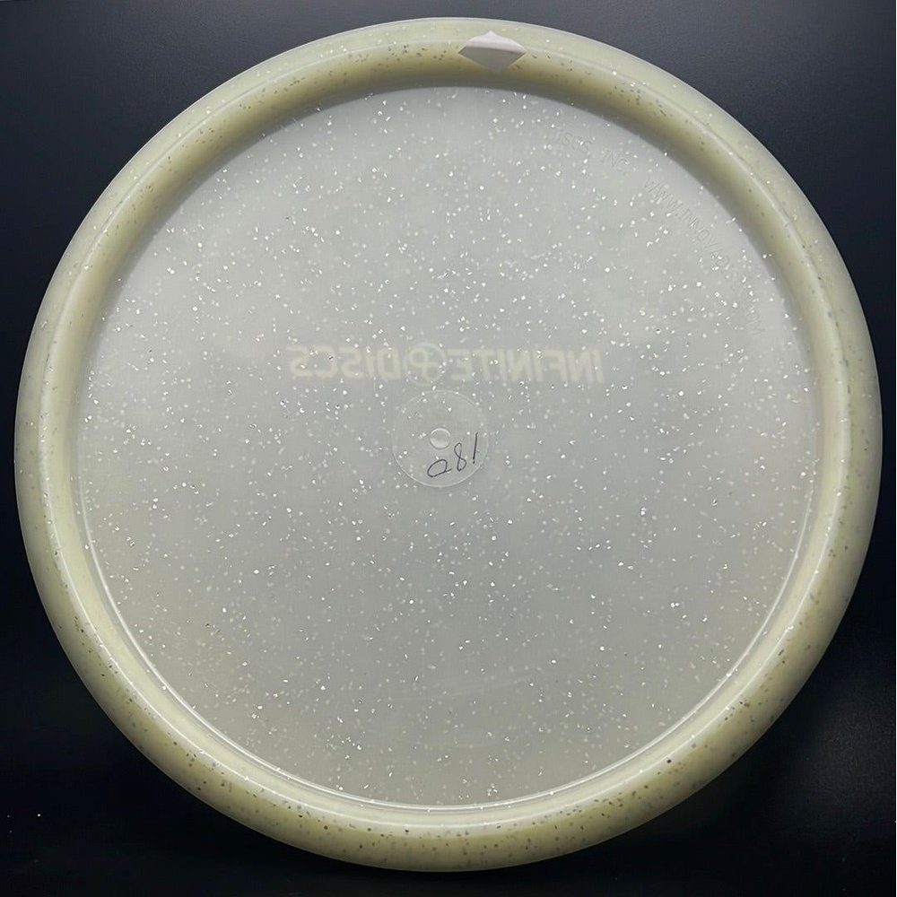 The Metal Flake Glow C-Blend plastic is a mixture of Glow C-Blend (with or without color) and metal flakes. It has been said that the Metal Flake Glow C-blend plastic contributes to a more stable flight.