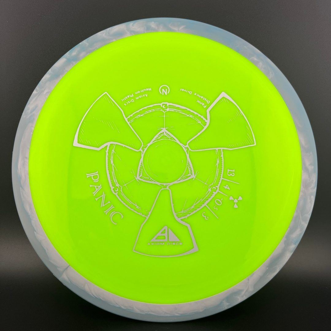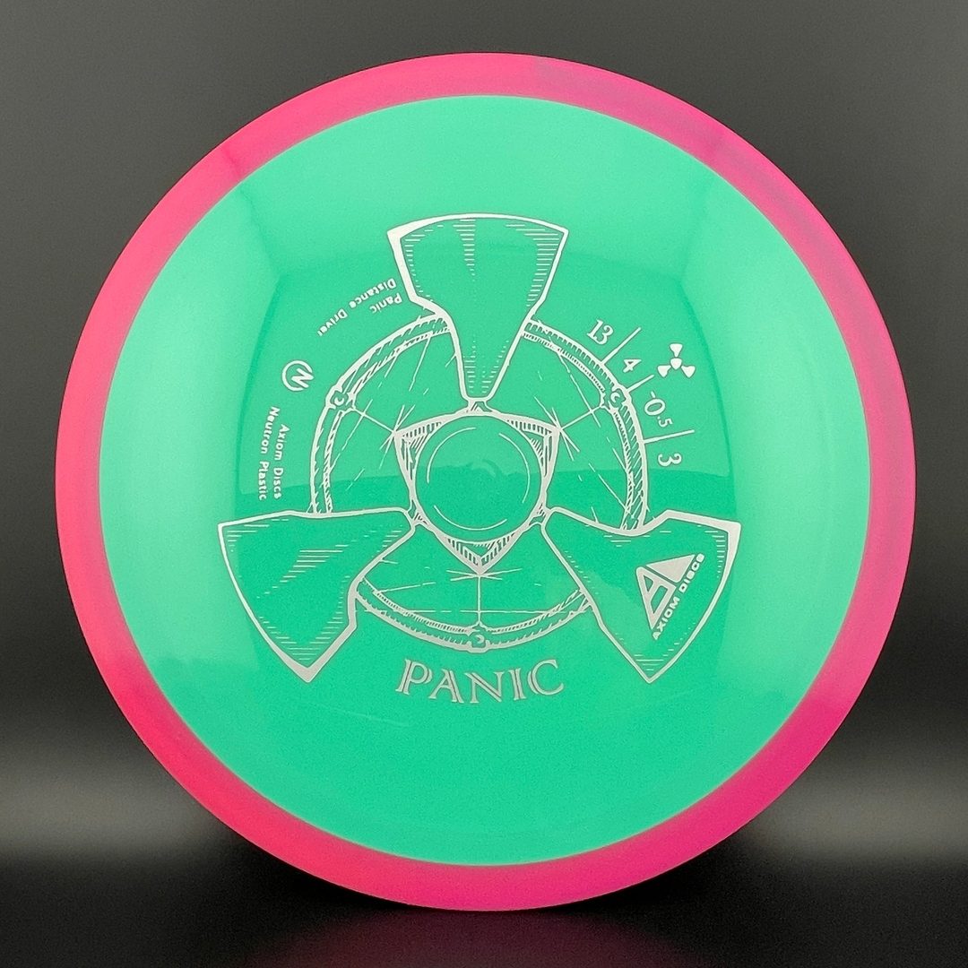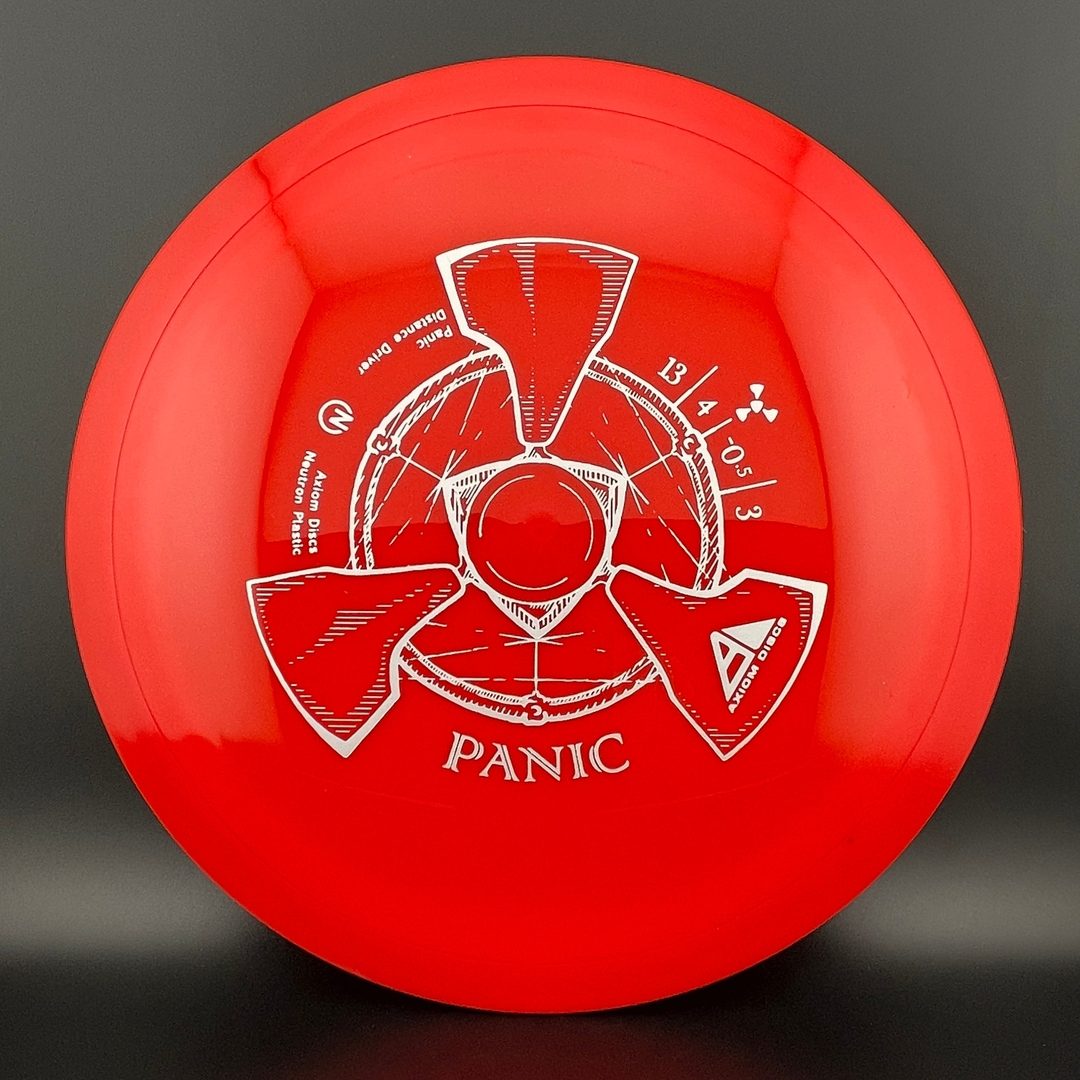 The Panic is thoroughly overstable, with plenty of beef to handle headwinds and torqued-up sidearms. Its overstability holds the Panic on any kind of hyzer line and allows steep anhyzer flex shots. For high-power throwers, the Panic will be a useful utility driver, while newer and average throwers will get an extremely overstable flight. The Panic is best described as a seasoned MVP Nitro.