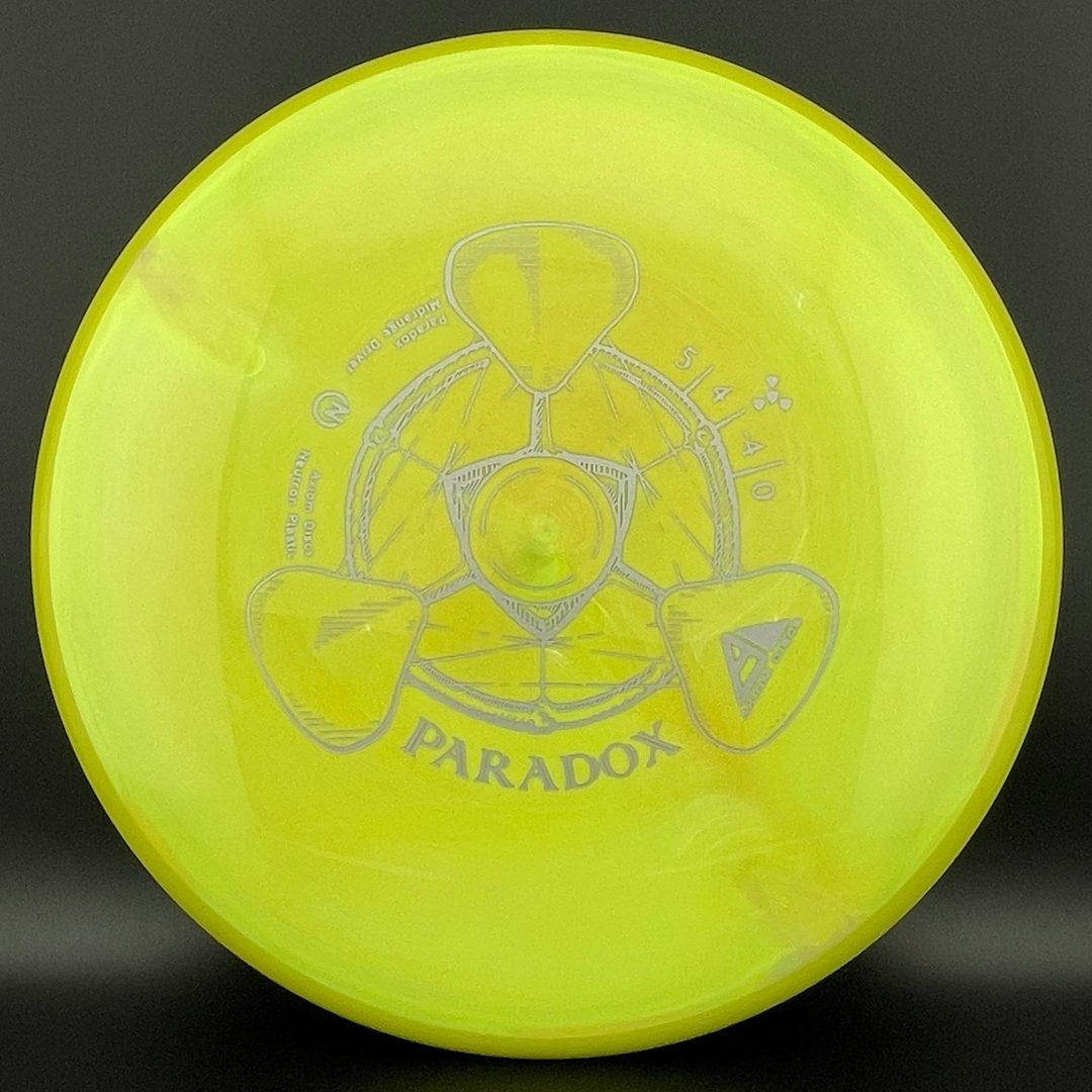 The Paradox is an understable disc that wants to turn. This is among some of the most understable midranges on the market and a disc that can fly on some very unique lines. For the advanced player, the Paradox will make a great disc for utility shots like rollers, flip-ups, or massive anhyzers. For the beginner, this makes for a great first disc that flies straight, hyzer-flips, or acts as a teaching disc.
