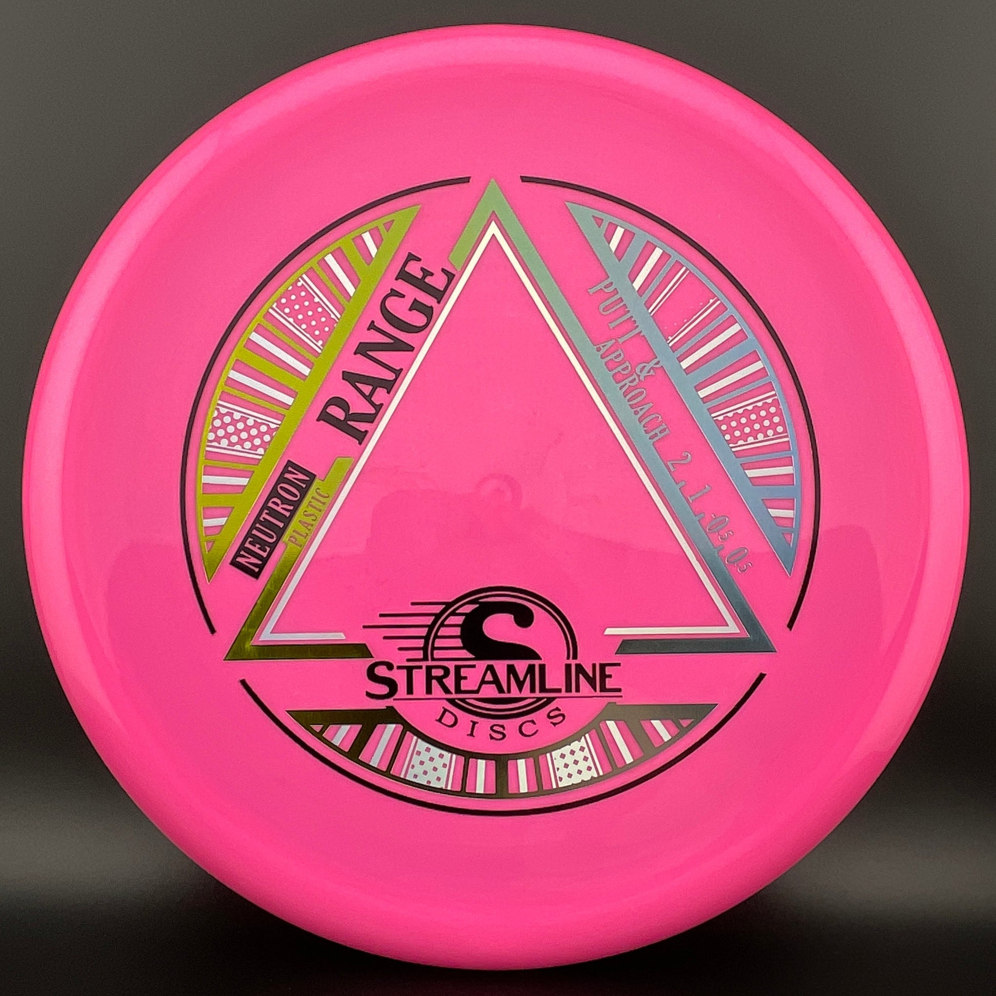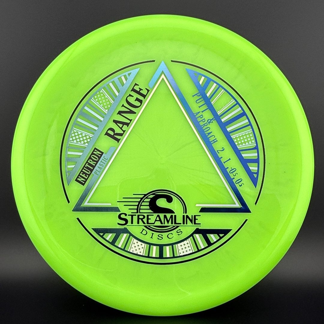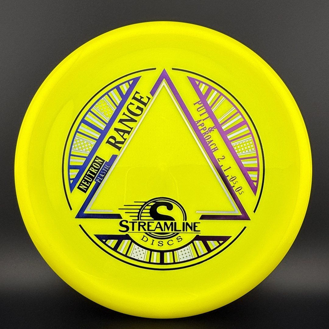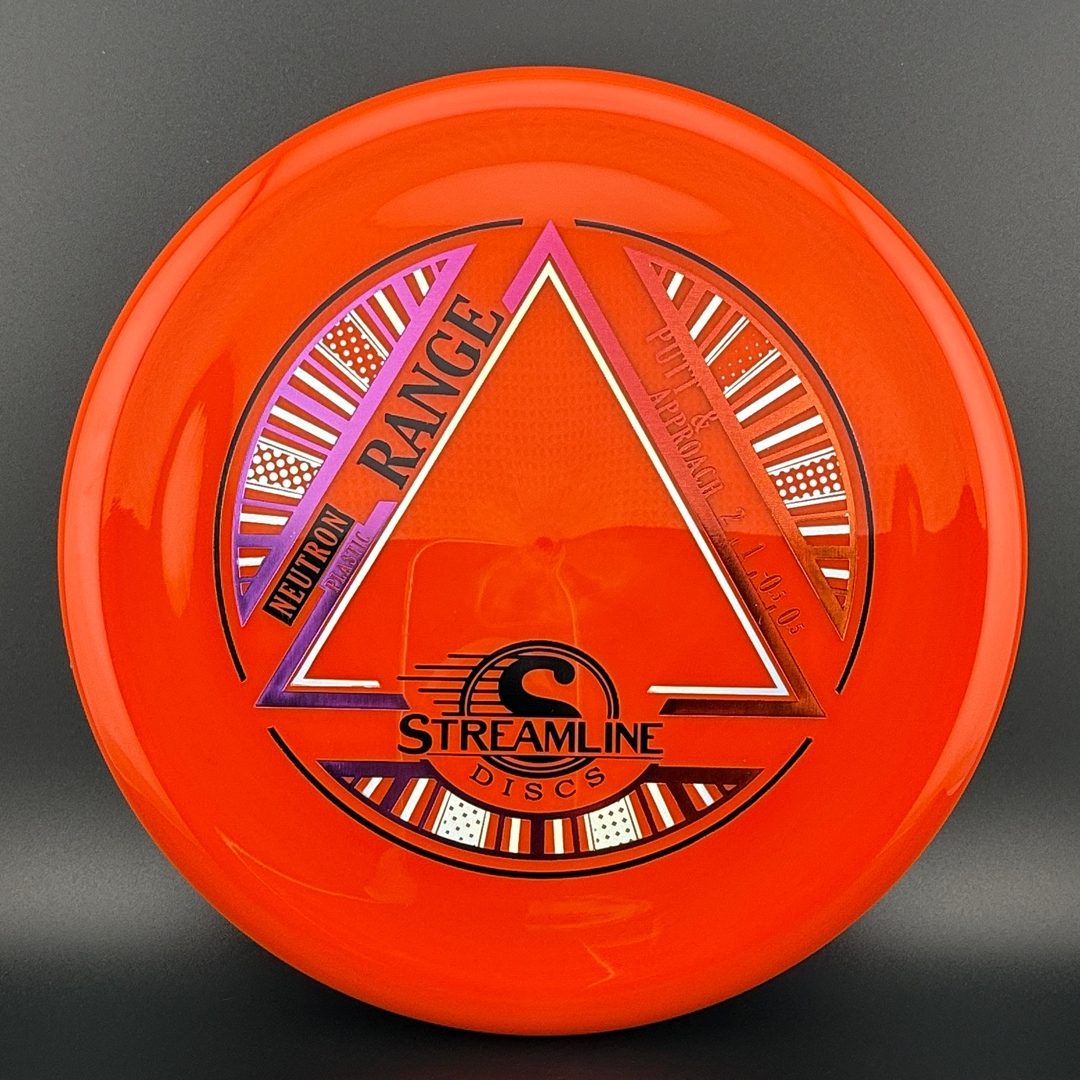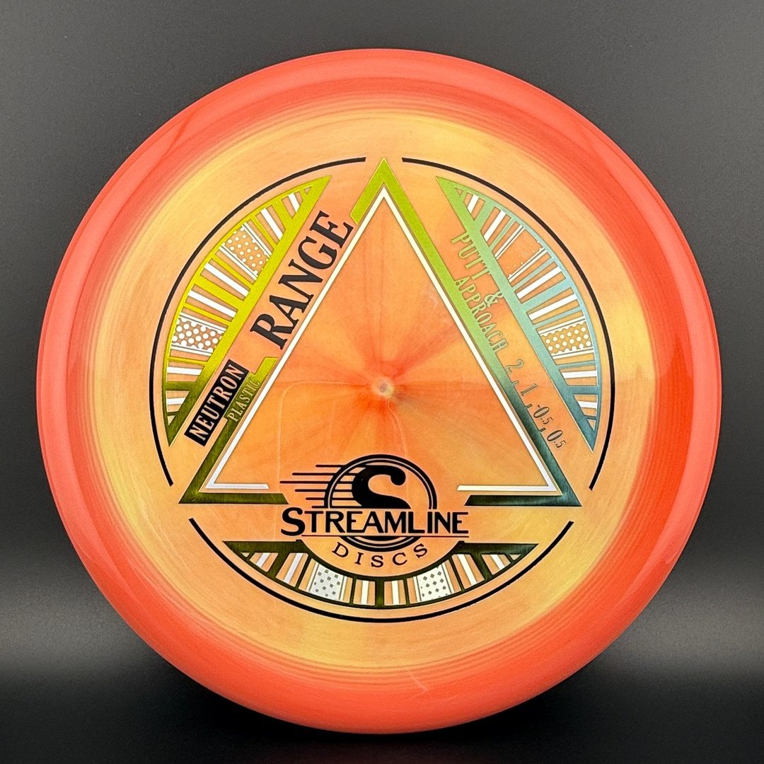 “The Range has officially joined our stock catalog! Releasing with flight numbers of 2 | 1 | -0.5 | 0.5, the Range makes its stock debut in Neutron plastic - ensuring a reliable, long-lasting approach disc for any time of the year. Designed with torque resistance and low glide in mind, the Range is a straight-flyer with subtle but reliable fade. Pairing that straight flight with dramatically reduced glide - thanks to its unique shape - the Range is an extremely reliable approach disc for when ranging distance is at a premium.