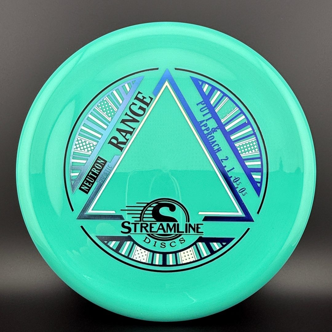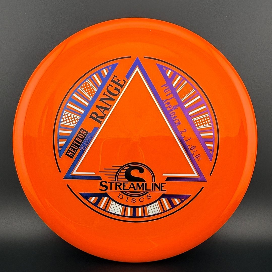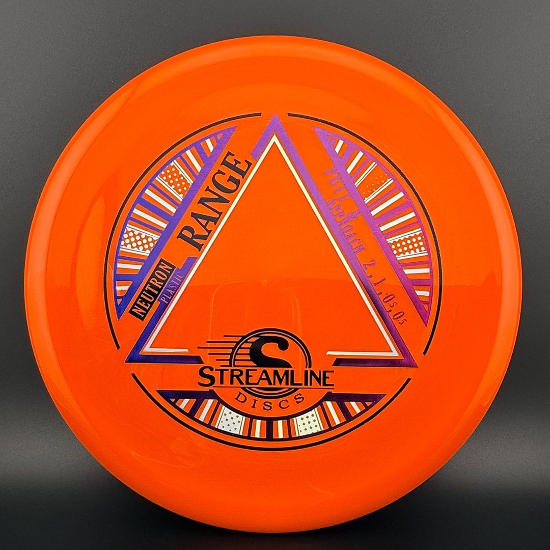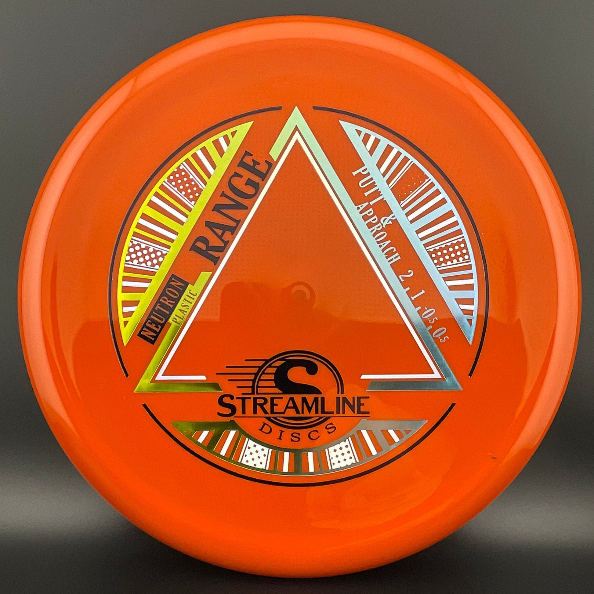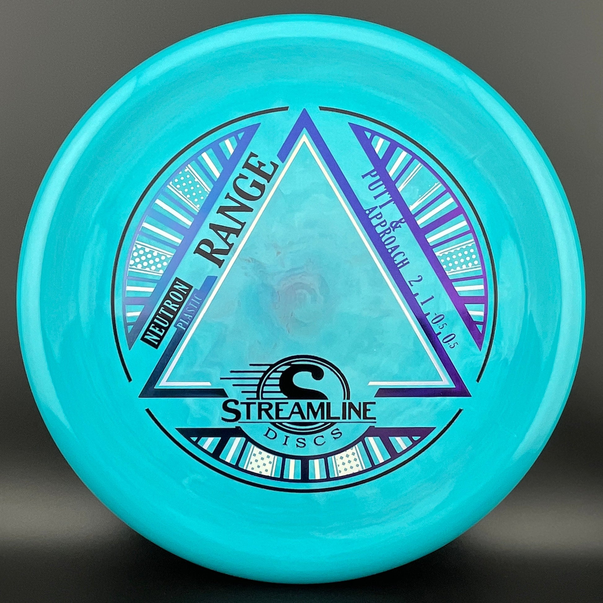 “The Range has officially joined our stock catalog! Releasing with flight numbers of 2 | 1 | -0.5 | 0.5, the Range makes its stock debut in Neutron plastic - ensuring a reliable, long-lasting approach disc for any time of the year. Designed with torque resistance and low glide in mind, the Range is a straight-flyer with subtle but reliable fade. Pairing that straight flight with dramatically reduced glide - thanks to its unique shape - the Range is an extremely reliable approach disc for when ranging distance is at a premium.