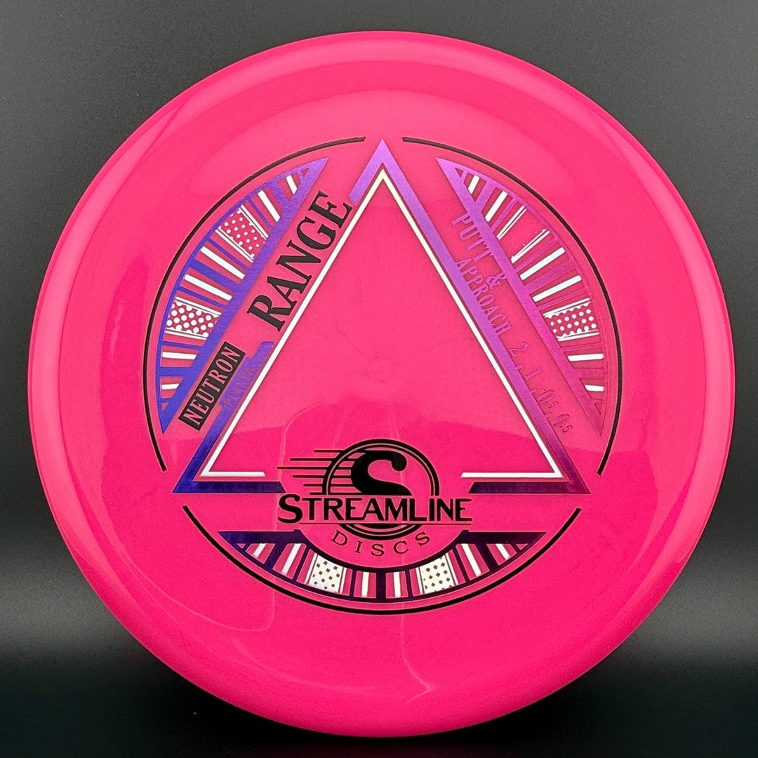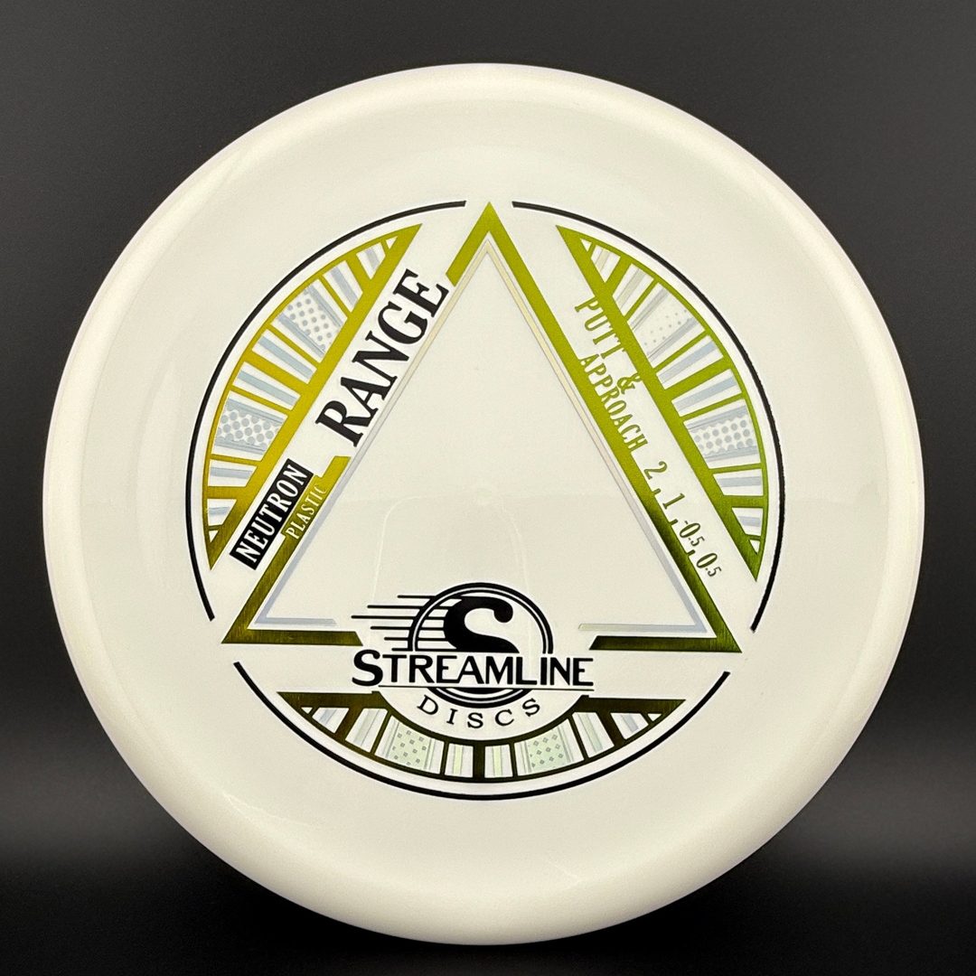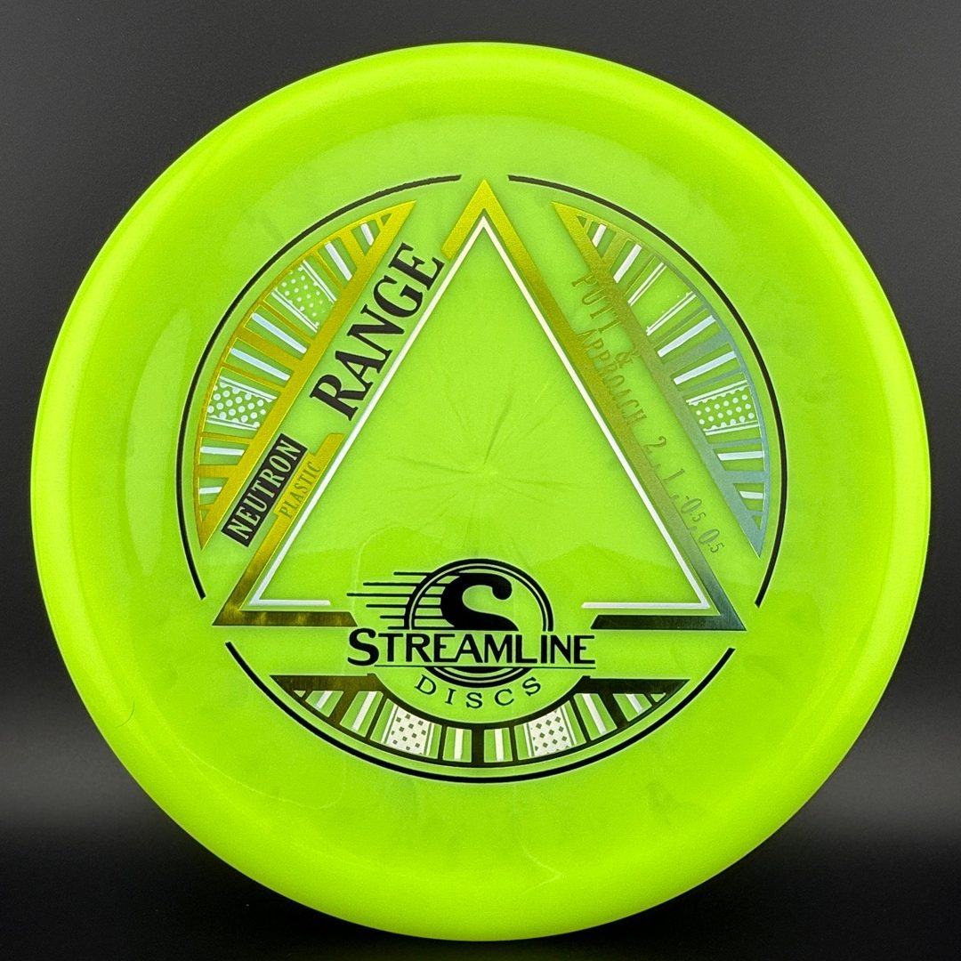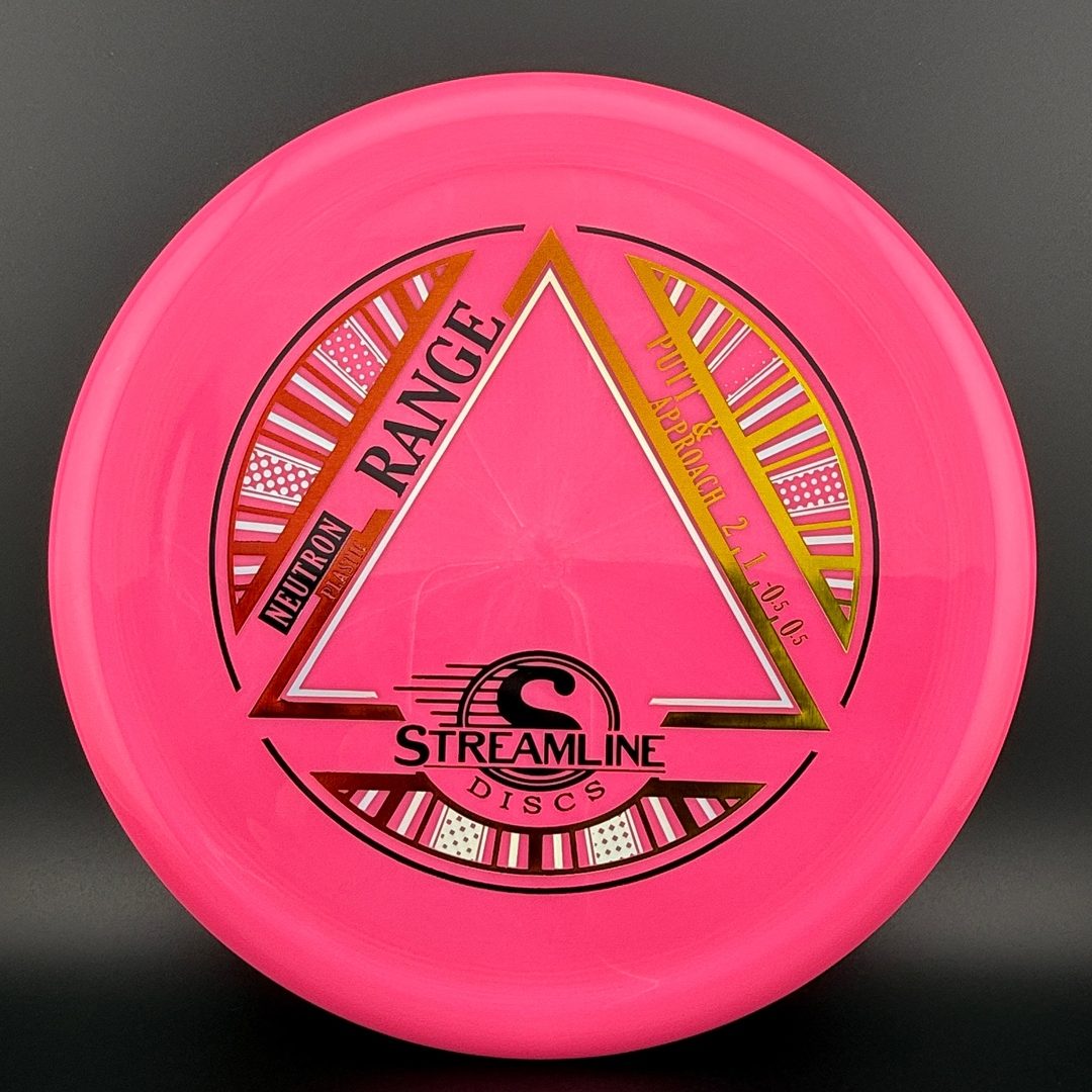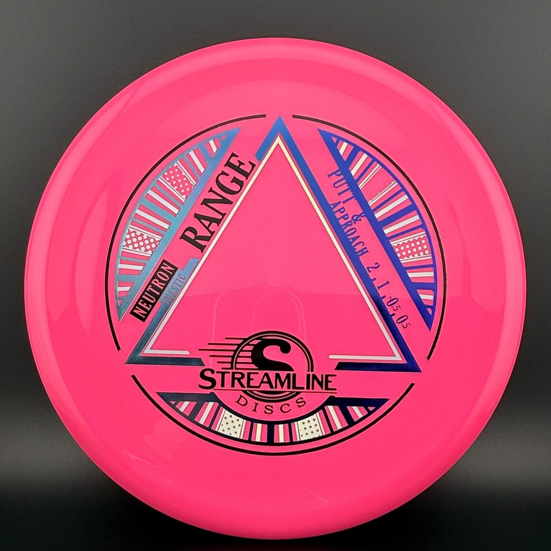 “The Range has officially joined our stock catalog! Releasing with flight numbers of 2 | 1 | -0.5 | 0.5, the Range makes its stock debut in Neutron plastic - ensuring a reliable, long-lasting approach disc for any time of the year. Designed with torque resistance and low glide in mind, the Range is a straight-flyer with subtle but reliable fade. Pairing that straight flight with dramatically reduced glide - thanks to its unique shape - the Range is an extremely reliable approach disc for when ranging distance is at a premium.