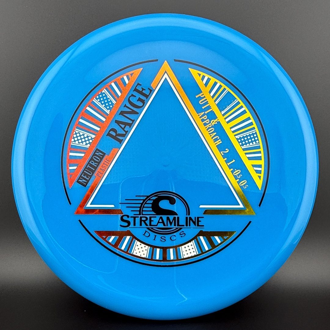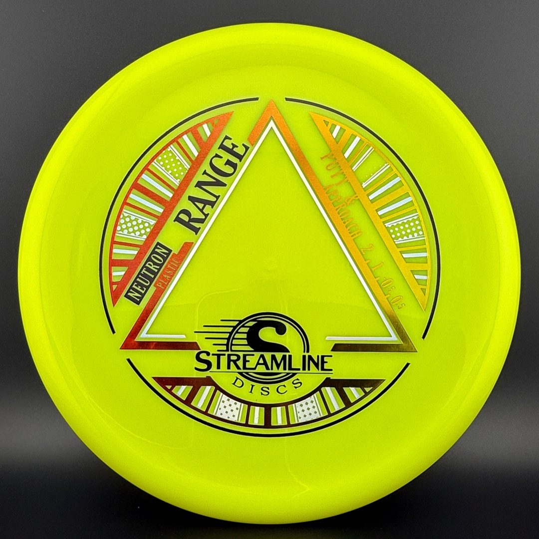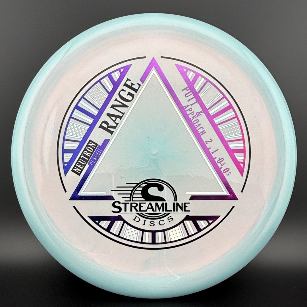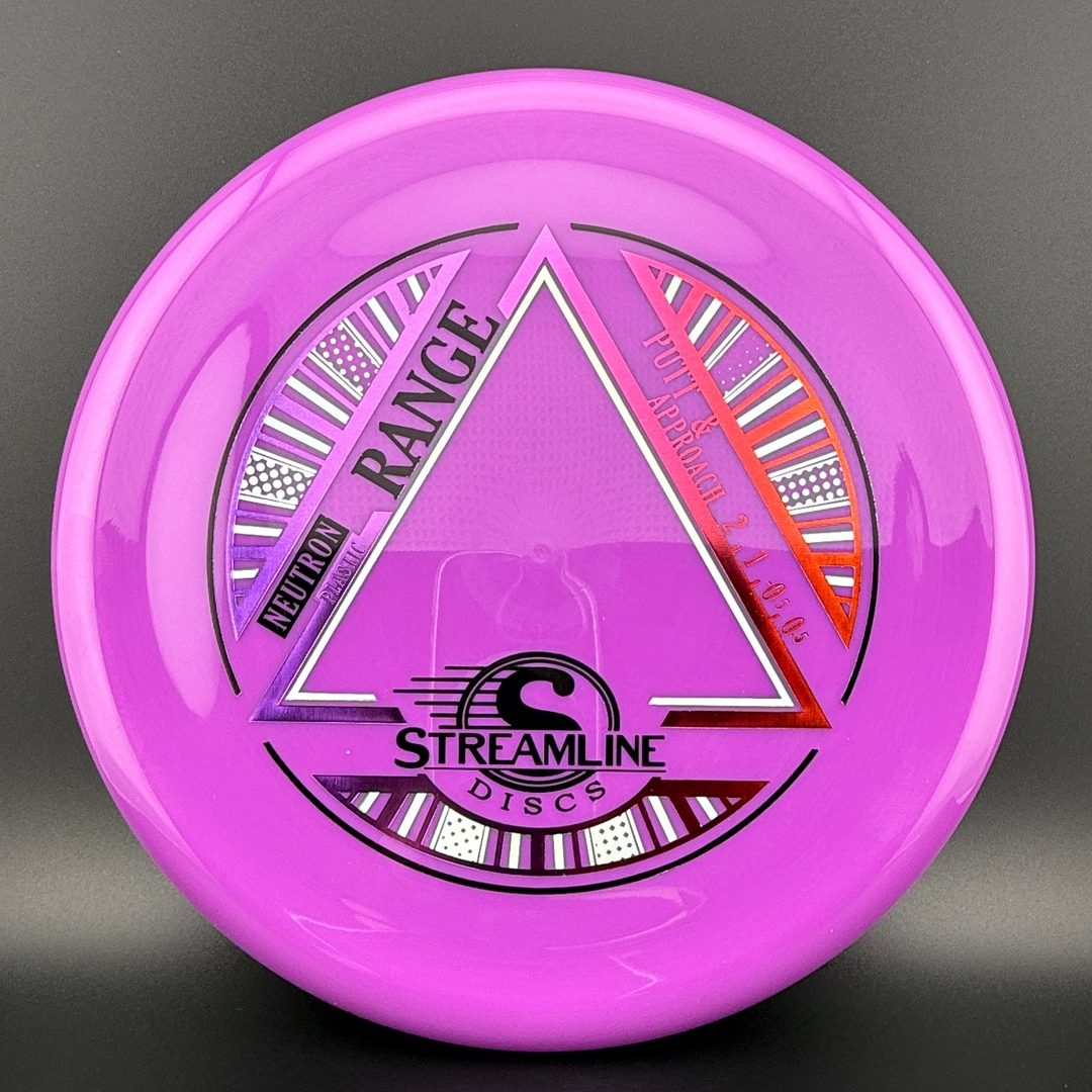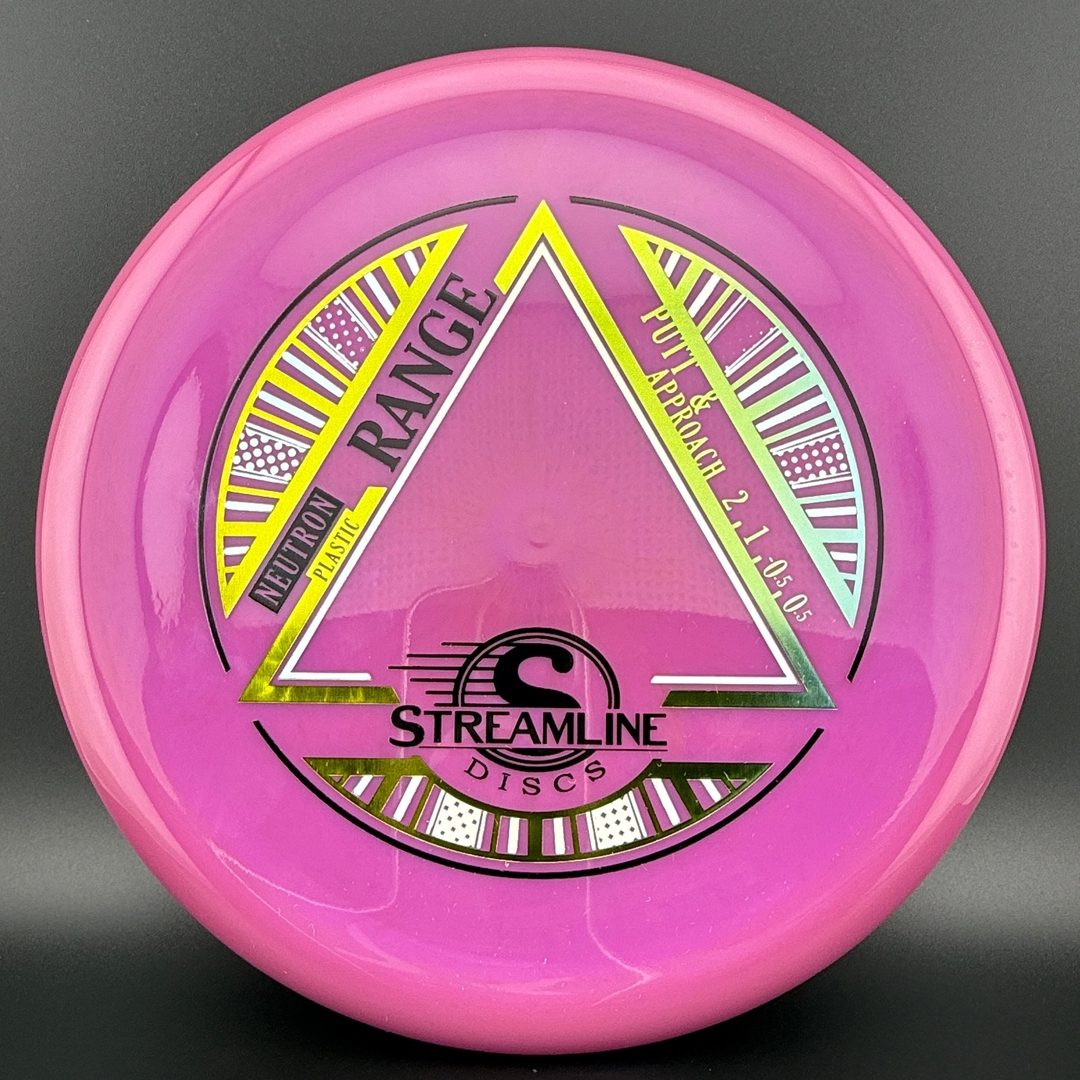 “The Range has officially joined our stock catalog! Releasing with flight numbers of 2 | 1 | -0.5 | 0.5, the Range makes its stock debut in Neutron plastic - ensuring a reliable, long-lasting approach disc for any time of the year. Designed with torque resistance and low glide in mind, the Range is a straight-flyer with subtle but reliable fade. Pairing that straight flight with dramatically reduced glide - thanks to its unique shape - the Range is an extremely reliable approach disc for when ranging distance is at a premium.