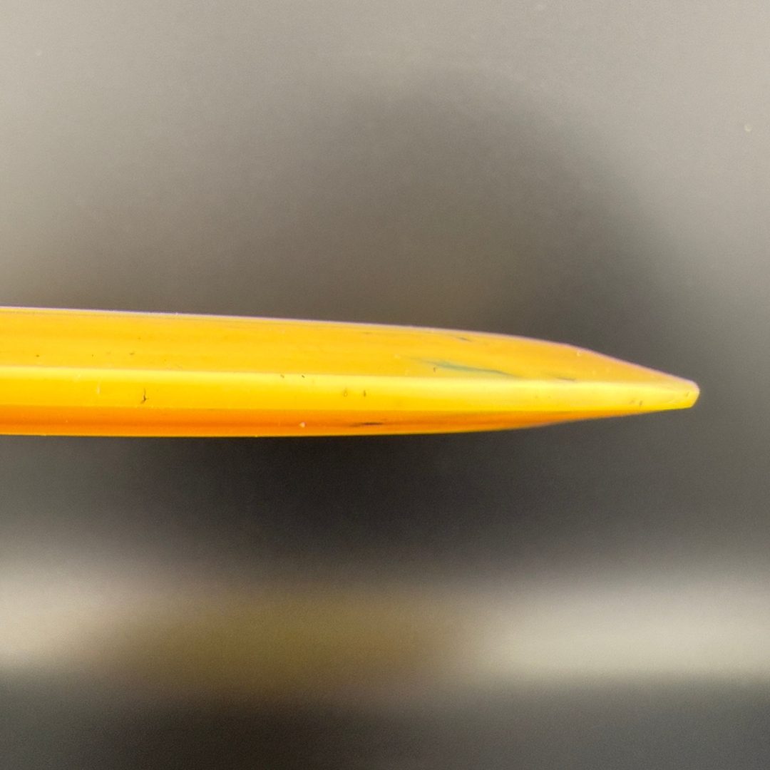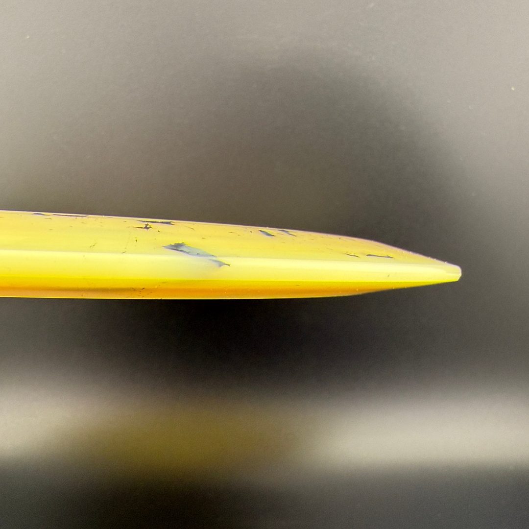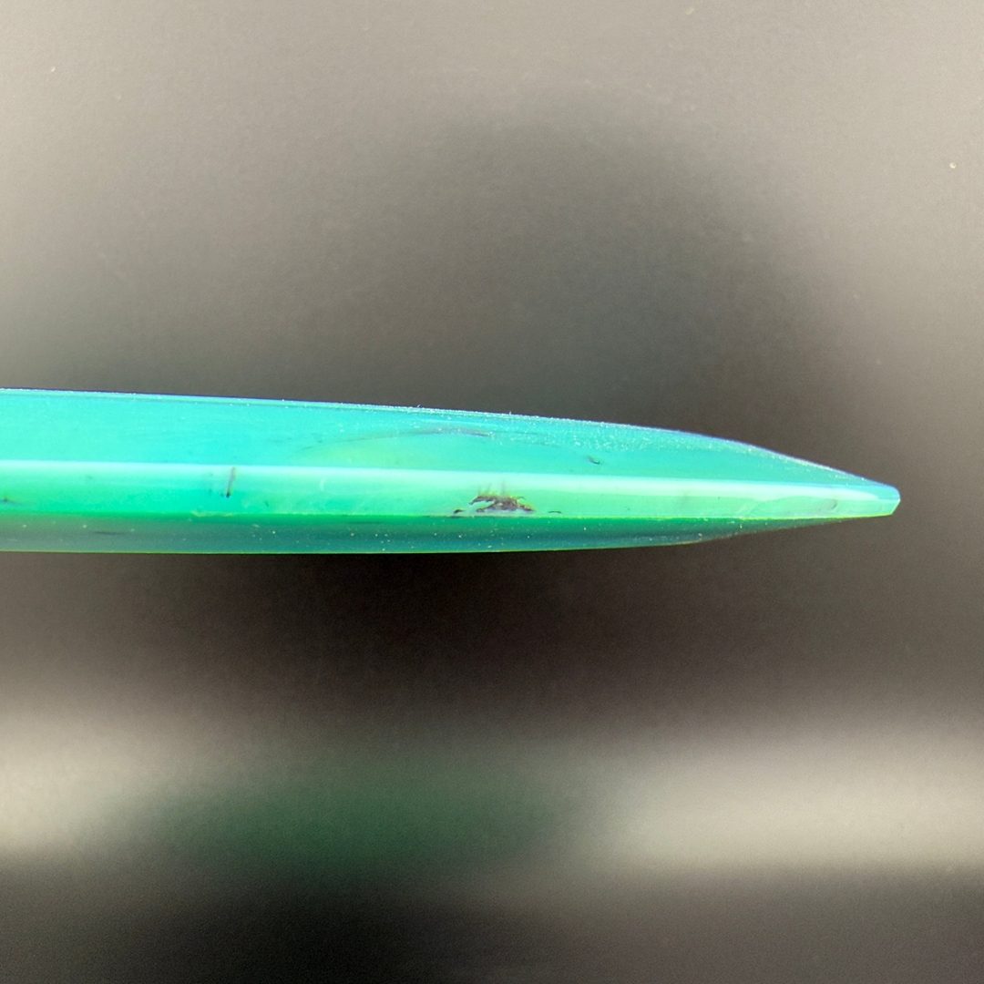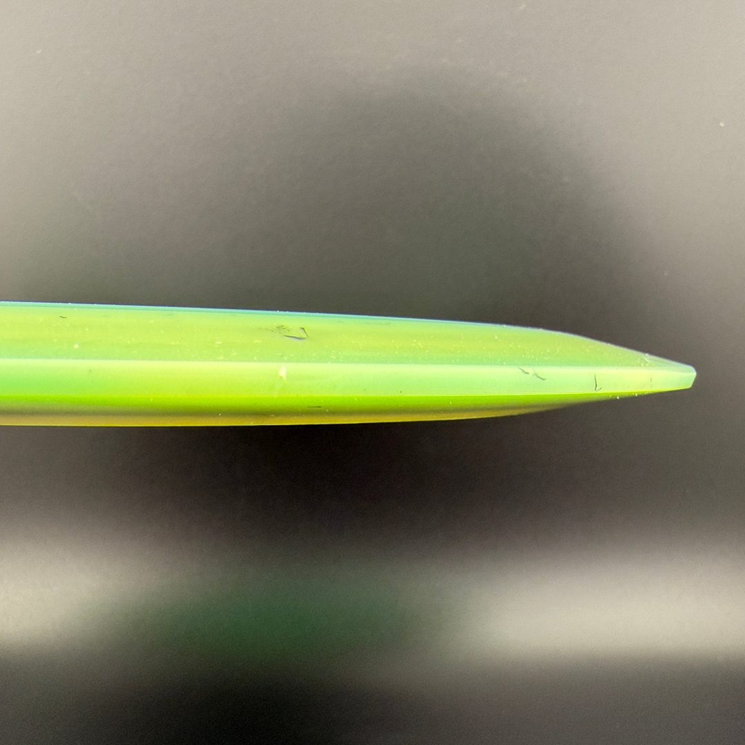 Toxic Waste plastic is a blend used in the Catastrophic Line by Doomsday Discs. It is a durable plastic with nice flexibility and grip. It can vary from being semi-transparent to completely opaque and is characterized by toxic splotches of black and other colors mixed into the blend.