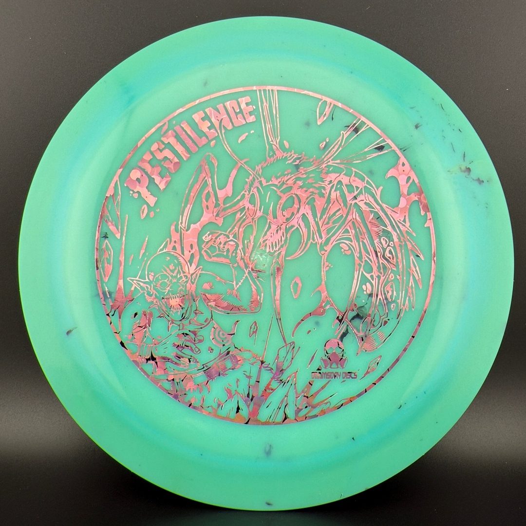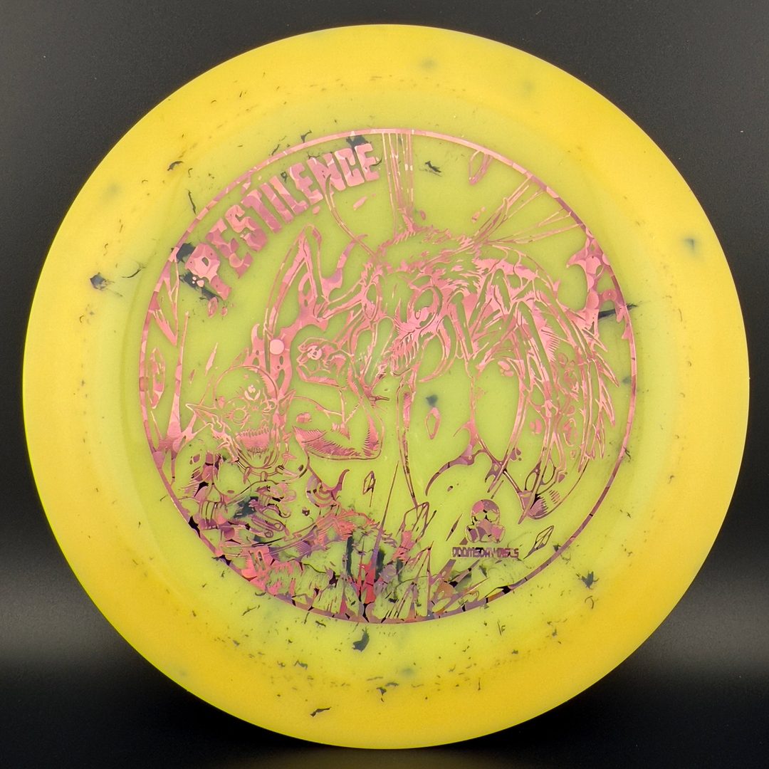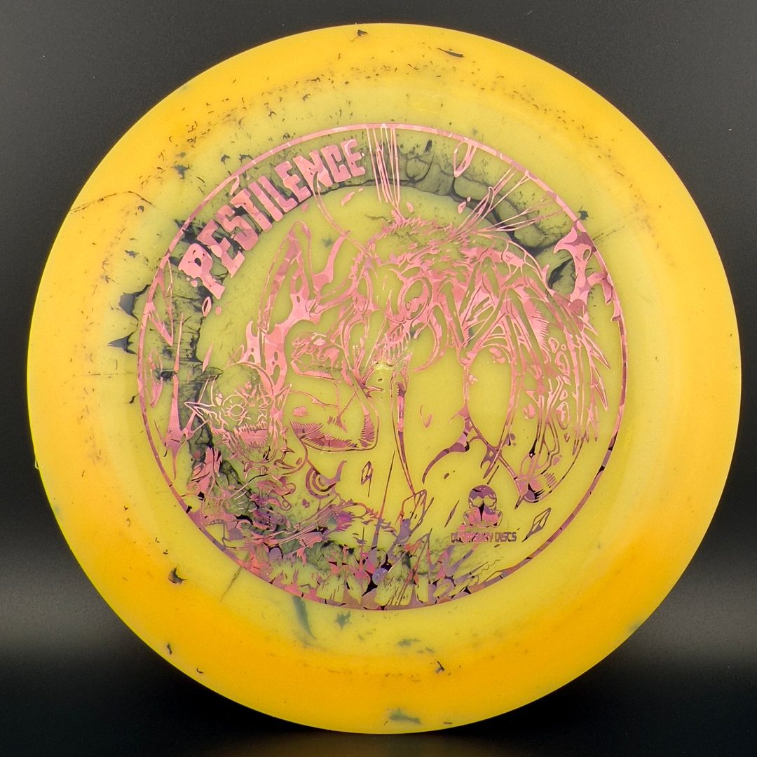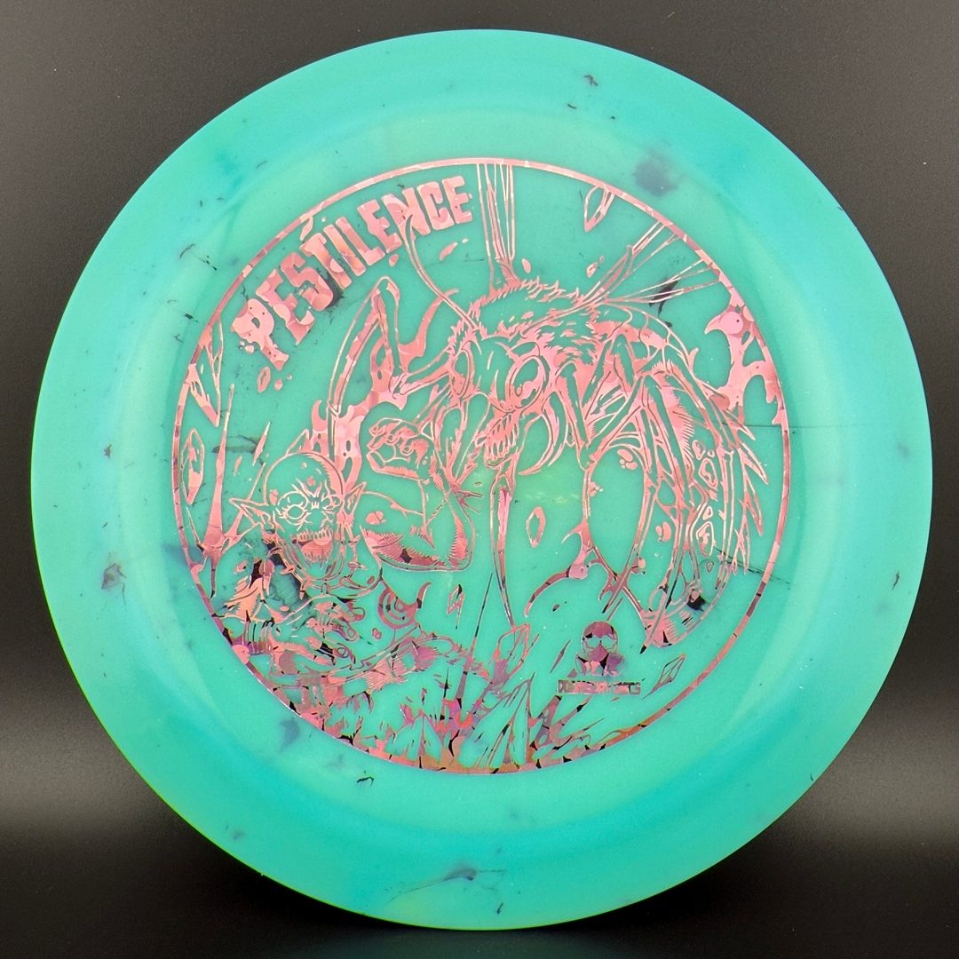 The Pestilence, by Doomsday Discs, is part of the Catastrophic Line of discs. It is a wide-rim distance driver that is understable enough to be handled by new players. For experienced players, it is an excellent tool for hyzer-flip and long s-curve shots. Reach your maximum potential on long throws without needing maximum arm speed or power. After the world comes crumbling down, you'll be able to use the Pestilence well into the dystopian future.