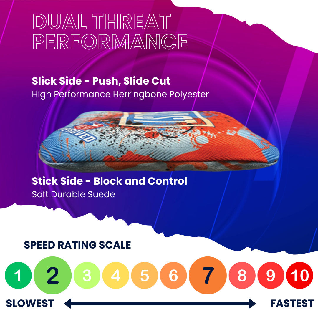 Elevate your cornhole game with our ACO Approved Pro+ Series bags. Crafted with precision and designed for durability, these bags boast a striking appearance that combines vibrant colors and intricate patterns. The Pro+ line ensures a consistent weight and size, allowing for accurate throws and fair play. Slow side allows for great block and cut shots, with a very hole friendly and fast side to collect and push that blocker bag in the hole. Whether you're a seasoned pro or a backyard enthusiast, this bag is sure to impress and improve your game!
