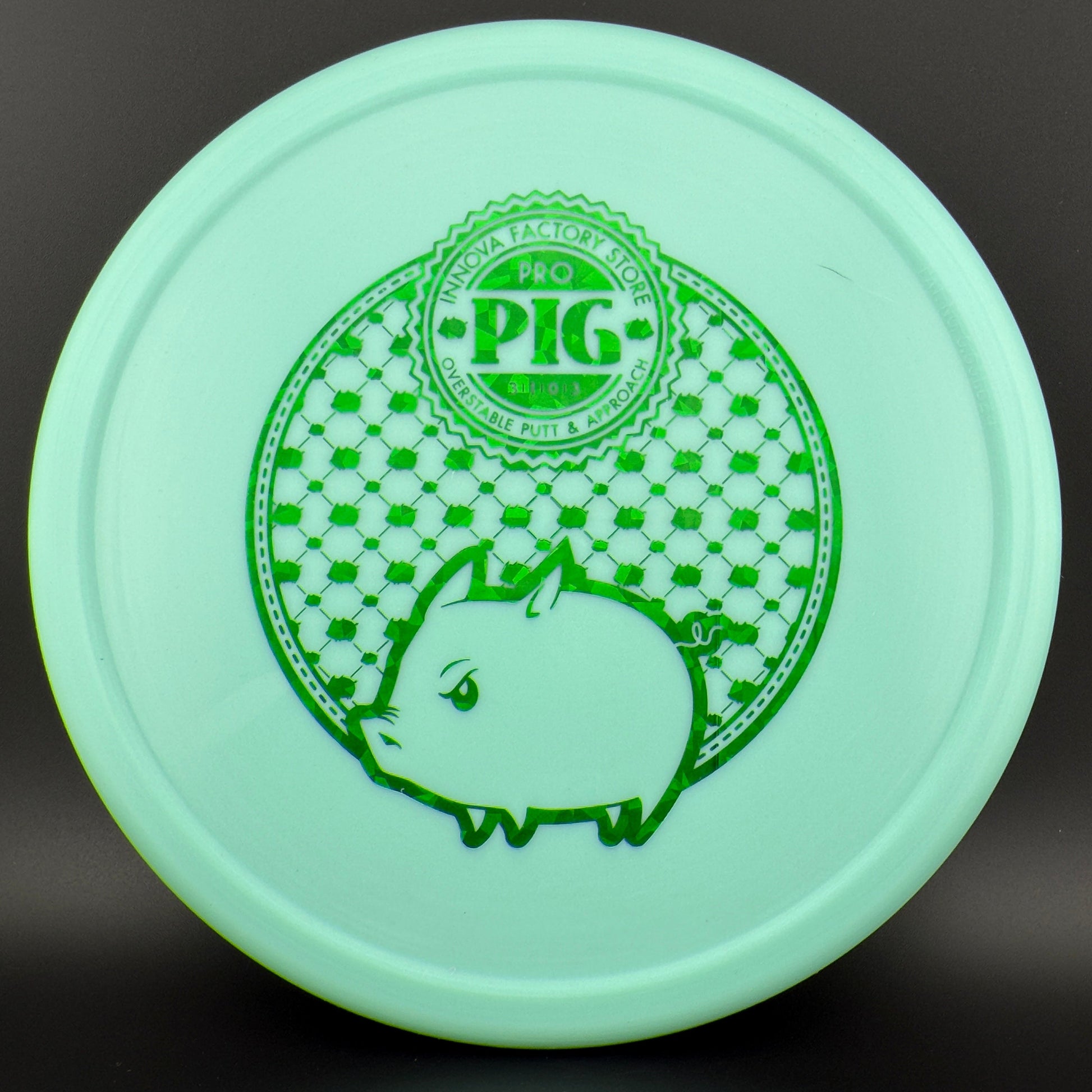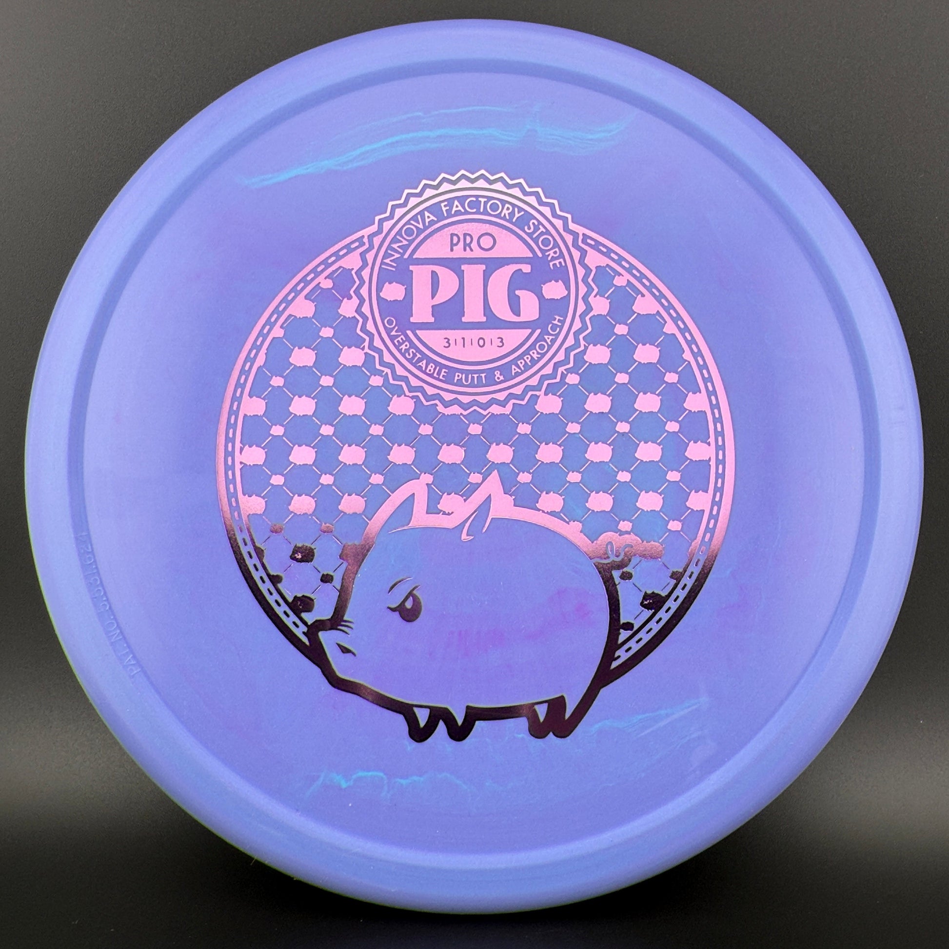 The Innova Pig is a very overstable putt & approach disc that is perfect for forehand approach shots, and predictably stable backhand shots. Innova's Soft Pro plastic is the perfect combination of grippy-ness and flexibility.