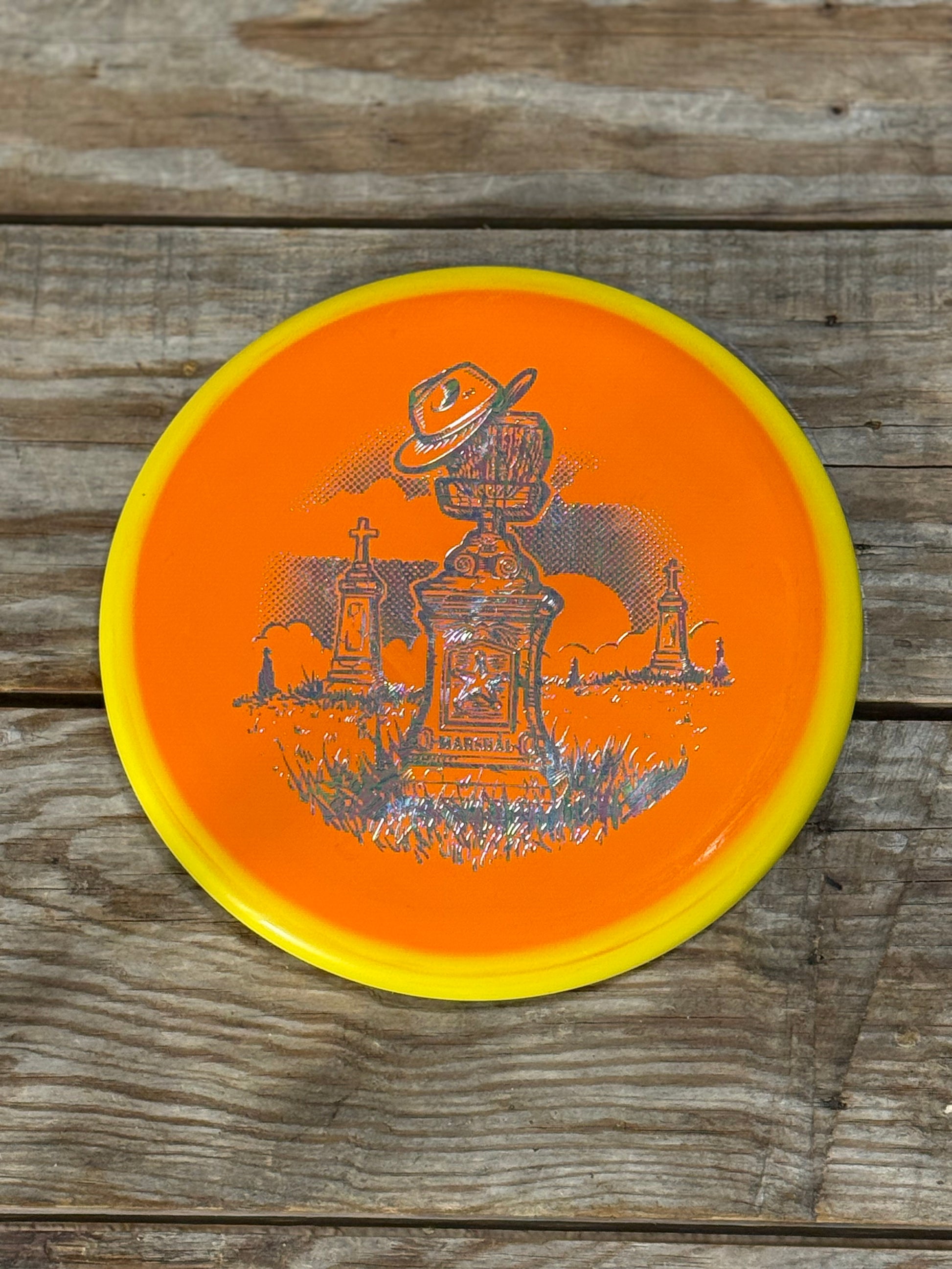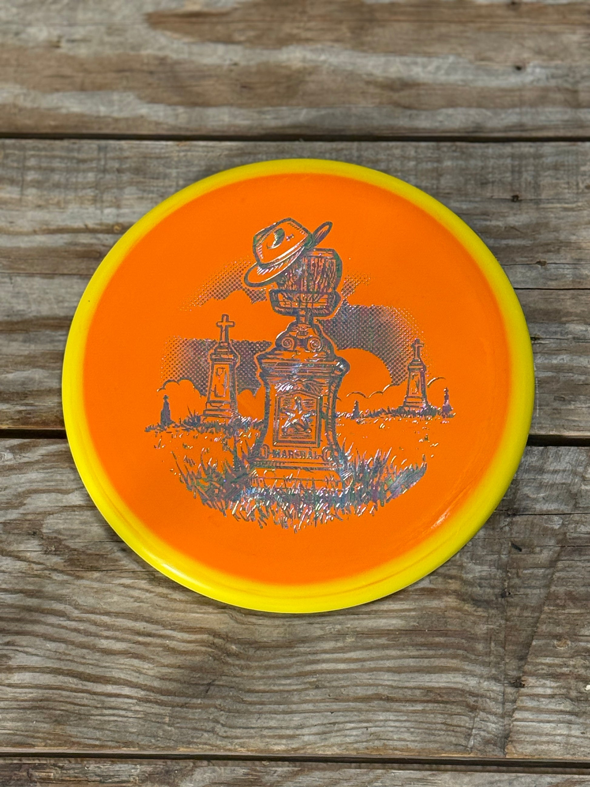 Commemorate the final chapter of a fan-favorite with the Classic Soft Orbit Marshal – Marshal’s Last Ride. Featuring a hauntingly detailed stamp of a graveyard scene, complete with a weather-worn cowboy hat resting atop the Marshal’s tombstone, this disc marks the official retirement of the Marshal mold.