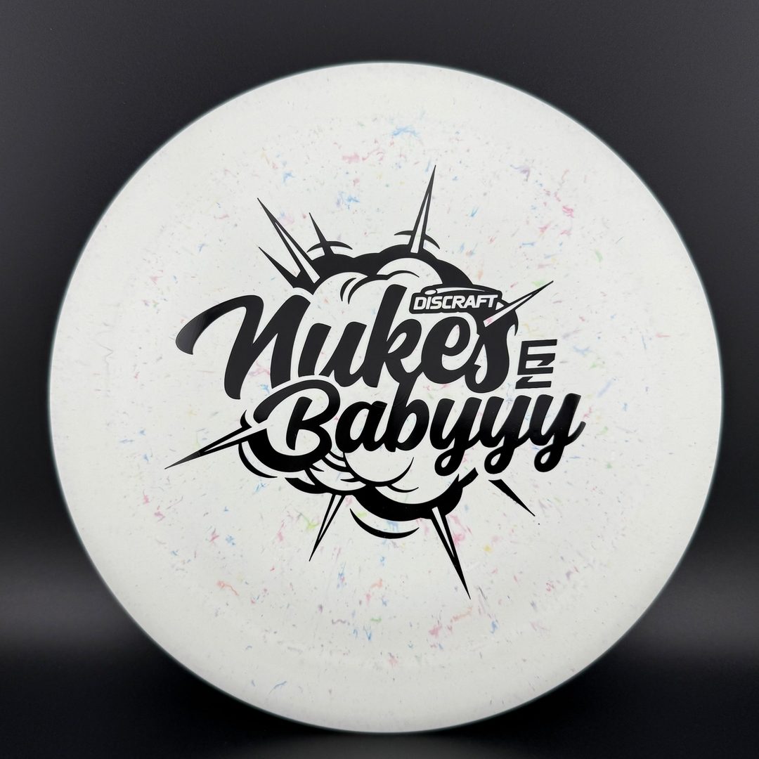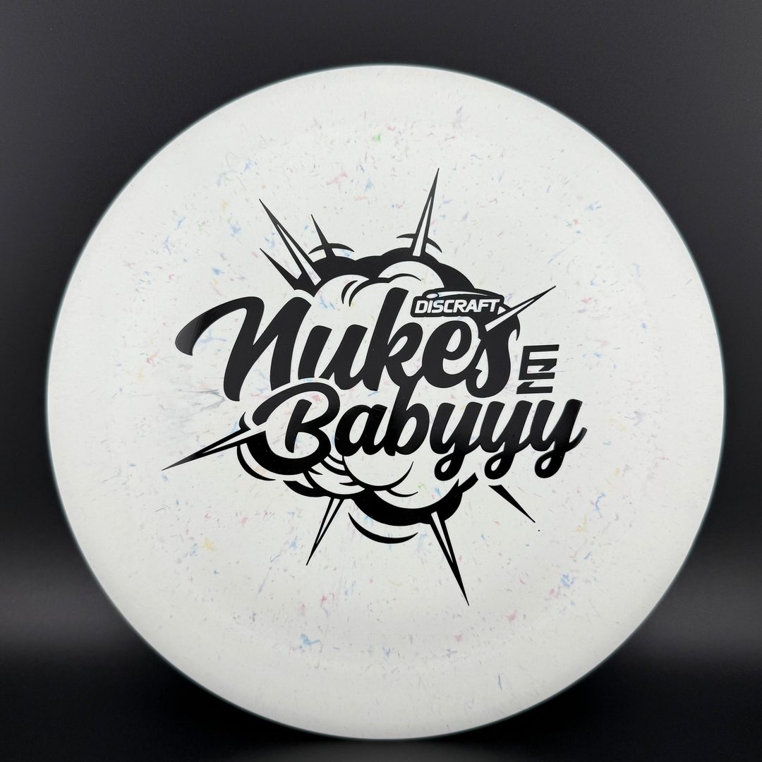 The Nuke has been dominating courses around the globe since 2009 and has become one of the most popular distance drivers in the world. This high-speed driver sports a thick, wide rim and holds its overstability even for power throwers. It is a popular choice for both forehand and backhand shots. These Nukes are pop-top bombers with low stiffness and trusted overstability. Explode the baskets at your local course with “Nukes Babyyy” like this custom stamp.