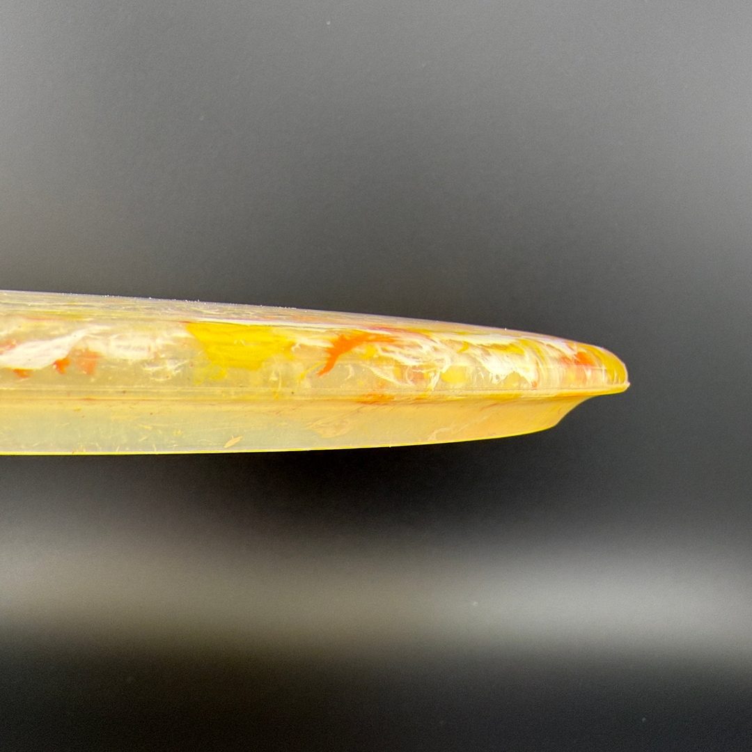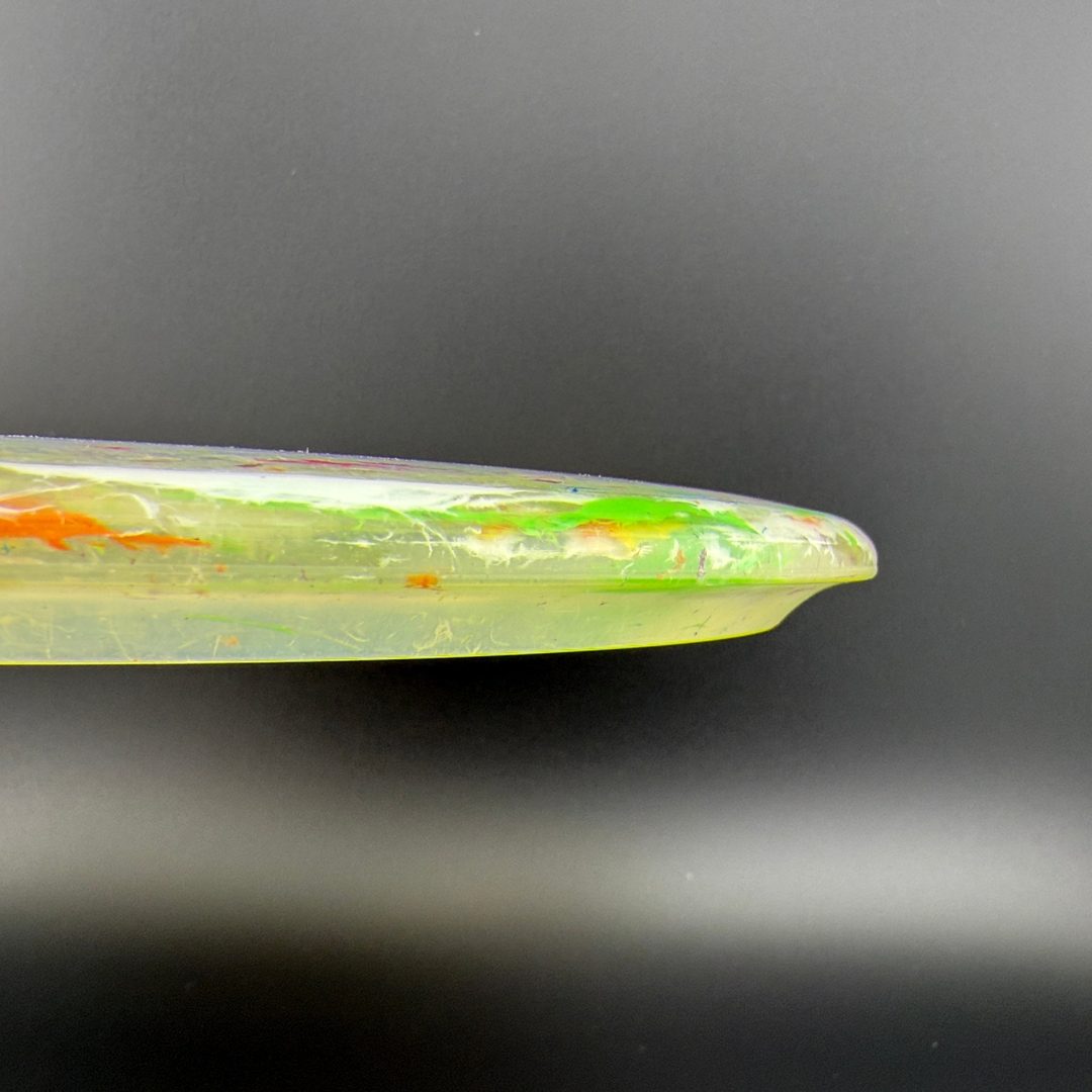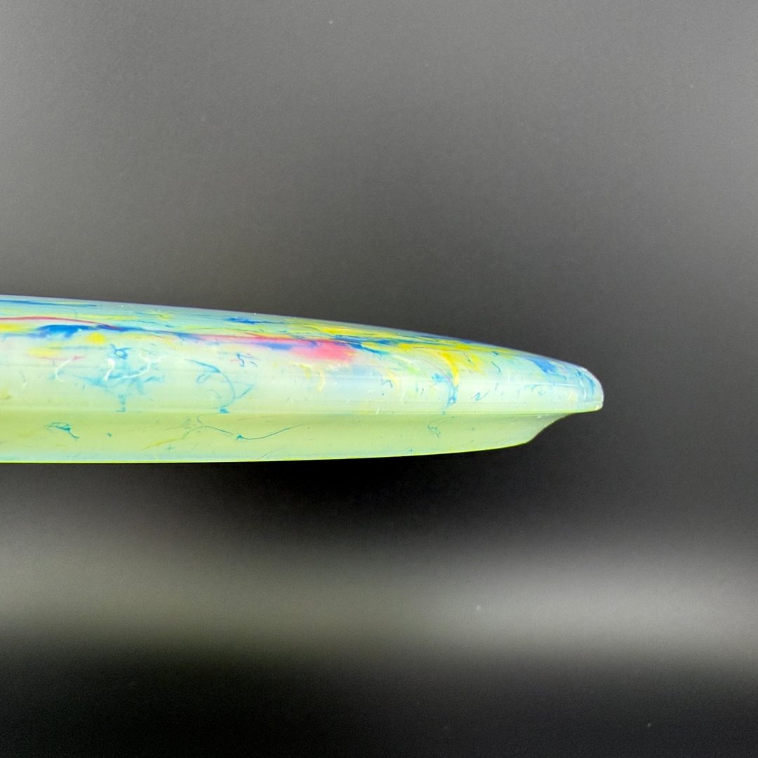 The Discraft Drone is an overstable midrange designed for precision and reliability in demanding conditions. With flight numbers of 5 | 3 | 1 | 4, the Drone delivers a strong, consistent fade and excels at holding hyzer lines, resisting turn, and performing in headwinds. Its deep rim and flat top give it a confident feel in the hand, making it ideal for both forehand and backhand approaches. Trusted for its torque resistance and predictability, the Drone is a go-to utility midrange for controlled placement and aggressive lines.