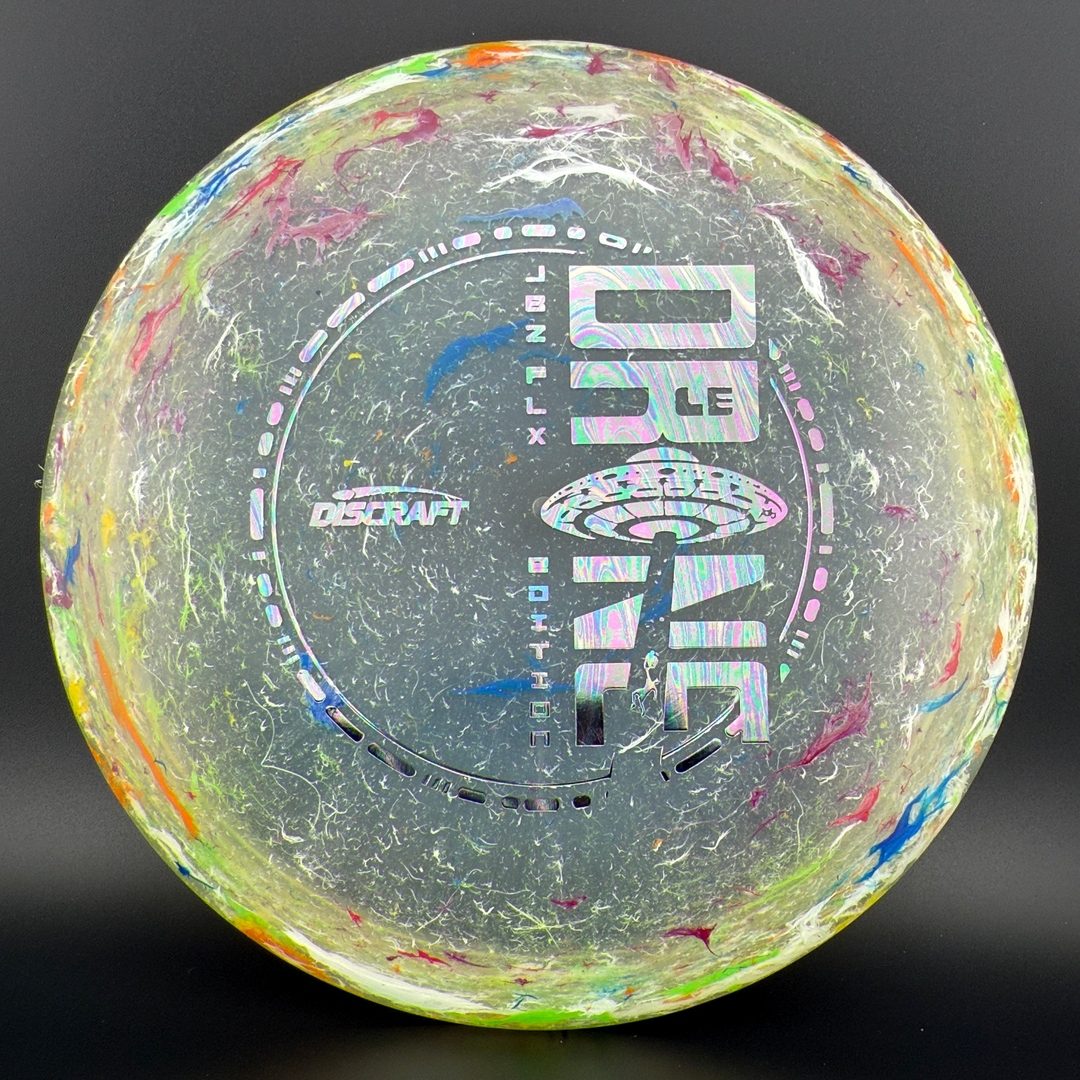 Jawbreaker Z FLX is a premium Discraft plastic blend that combines the visual appeal and grip of Jawbreaker with the flexibility and durability of Z FLX. It features a slightly tacky, marbled surface for excellent grip and a gummy, flexible feel that helps absorb ground impact and reduce skips. This blend offers consistent flight characteristics with added comfort in cold or wet conditions. Popular in limited and tour series runs, Jawbreaker Z FLX provides a unique mix of performance, control, and visual style for players who want both feel and function.