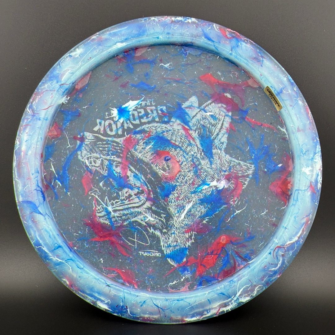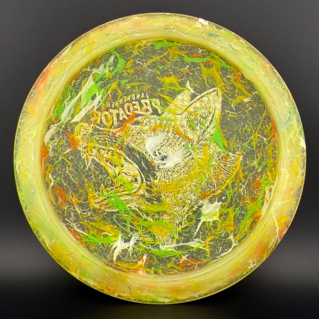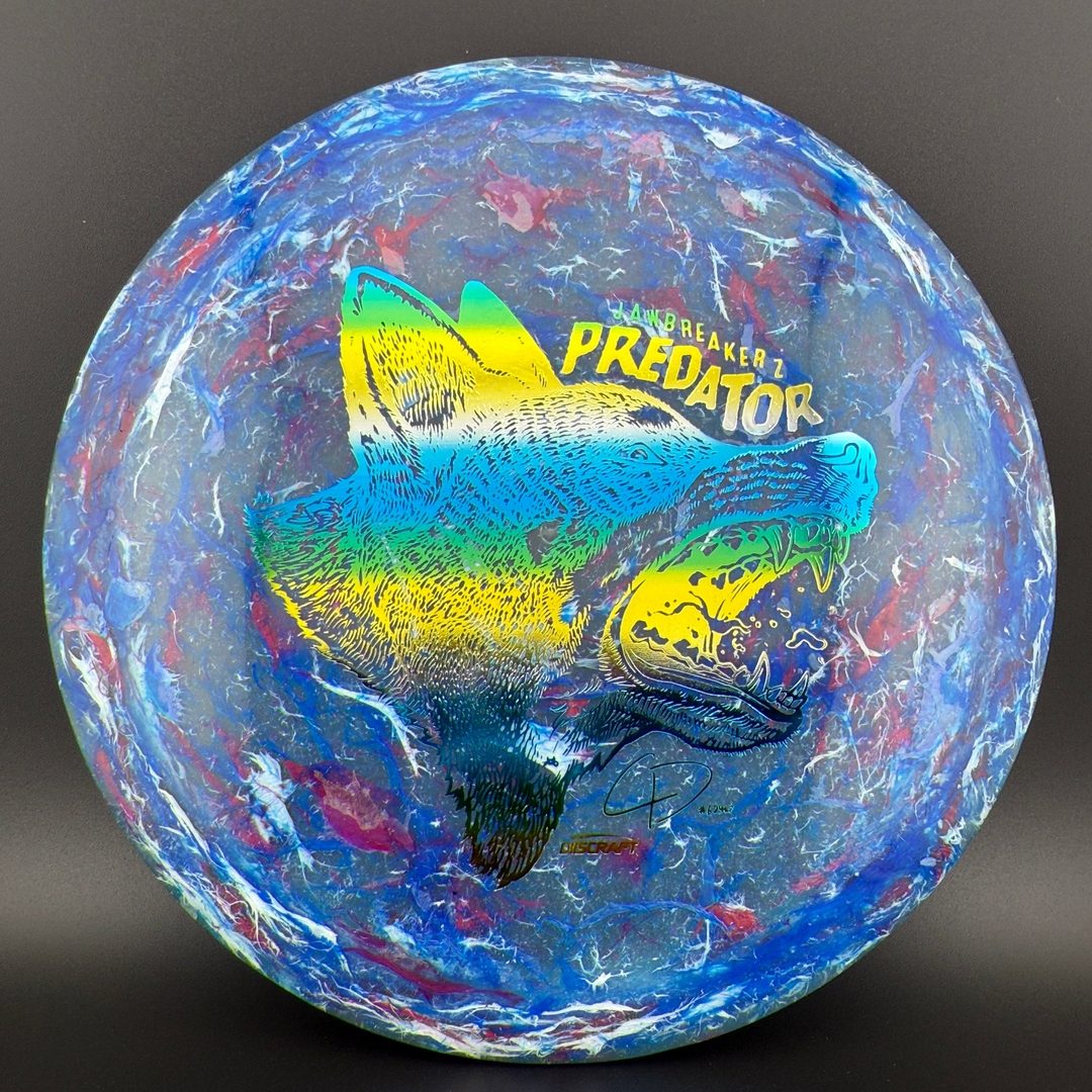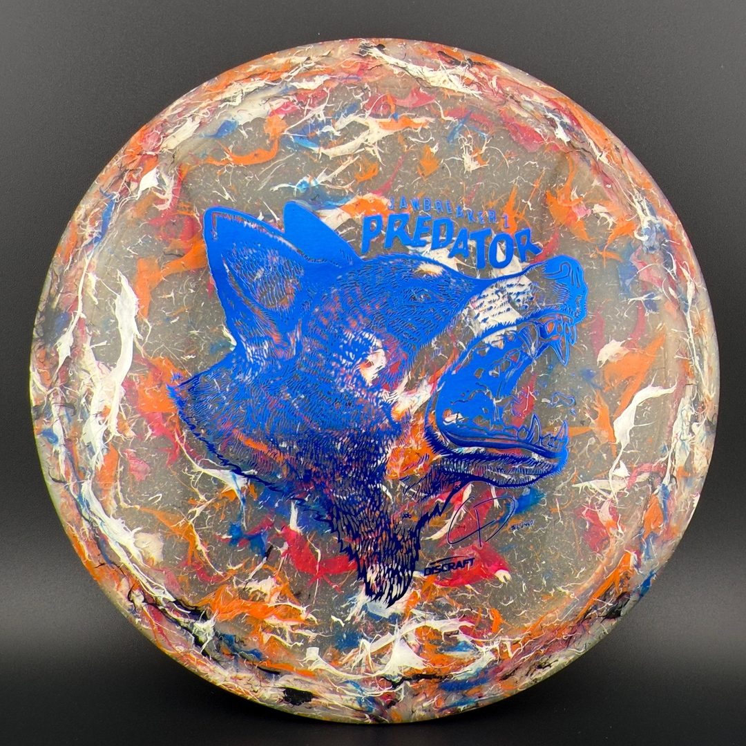 The Predator is an overstable fairway driver. Slightly more stable than a Raptor, the Predator is perfect for windy days, flex lines, and sweeping hyzers. The Predator is a classic mold in Discraft's lineup and is now available in Jawbreaker Z FlX plastic, adding tackiness to the usually slick Z plastic. These Predators feature a sweet stamp of Sam, Chris' beloved dog.