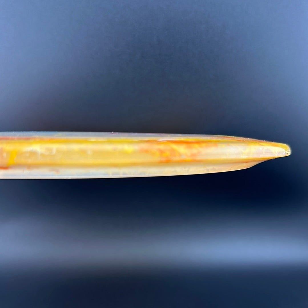 The Raptor is speed 9 disc with a flat top and overstable finish. It is designed to slice through the air in any weather conditions with a reliable flight. You'll find that the Raptor feels extremely comfortable as a forehand and backhand driver.